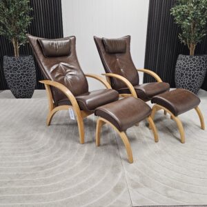2 stk. Eksklusive Brunstad Delta Adventure lenestoler med 2 krakk-Tidløs eleganse!