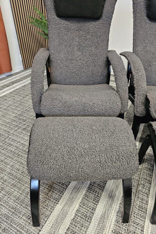 2 stk. Brunstad Delta Legend lenestoler m/krakk – Grå fåreskinn, svartbeiset treverk