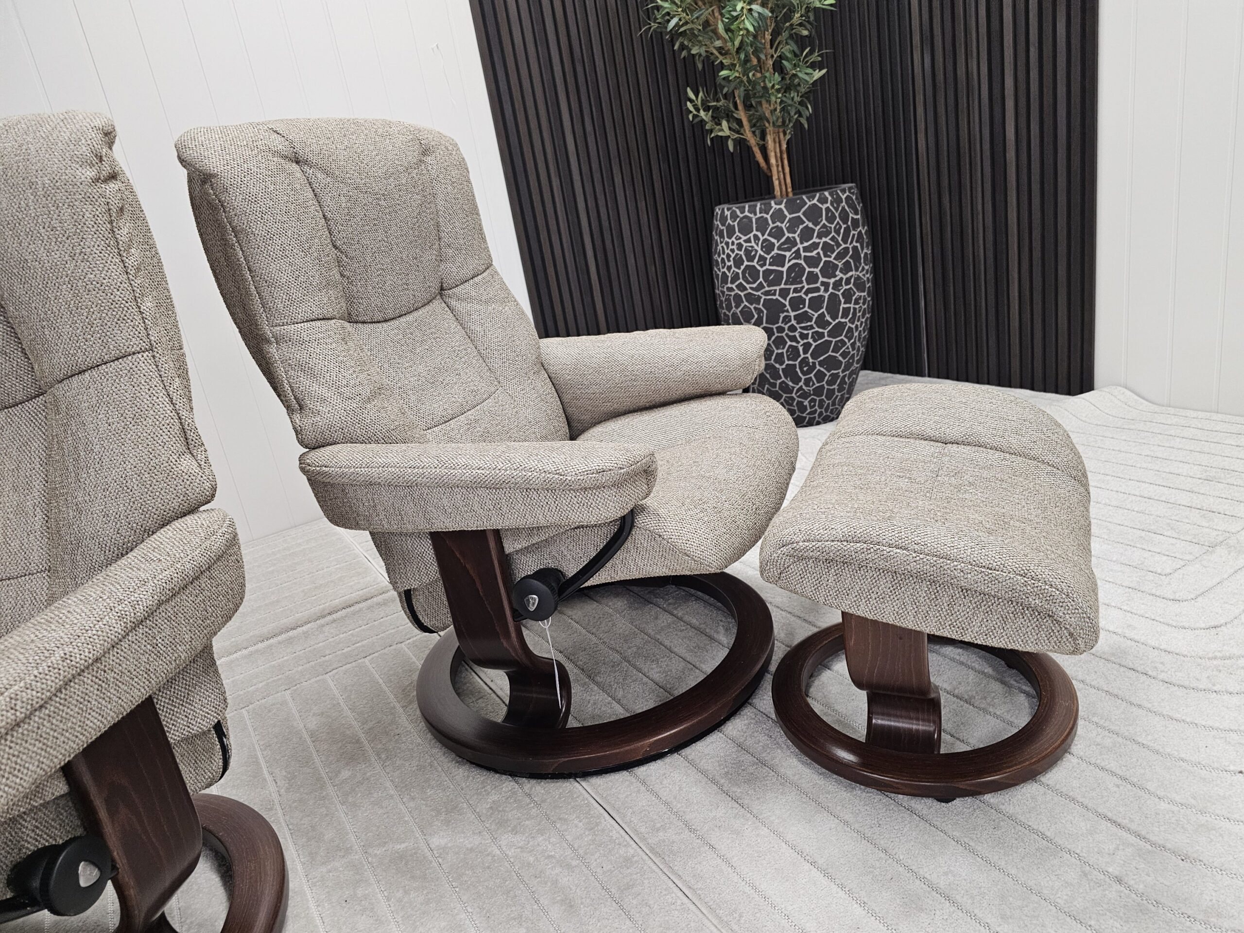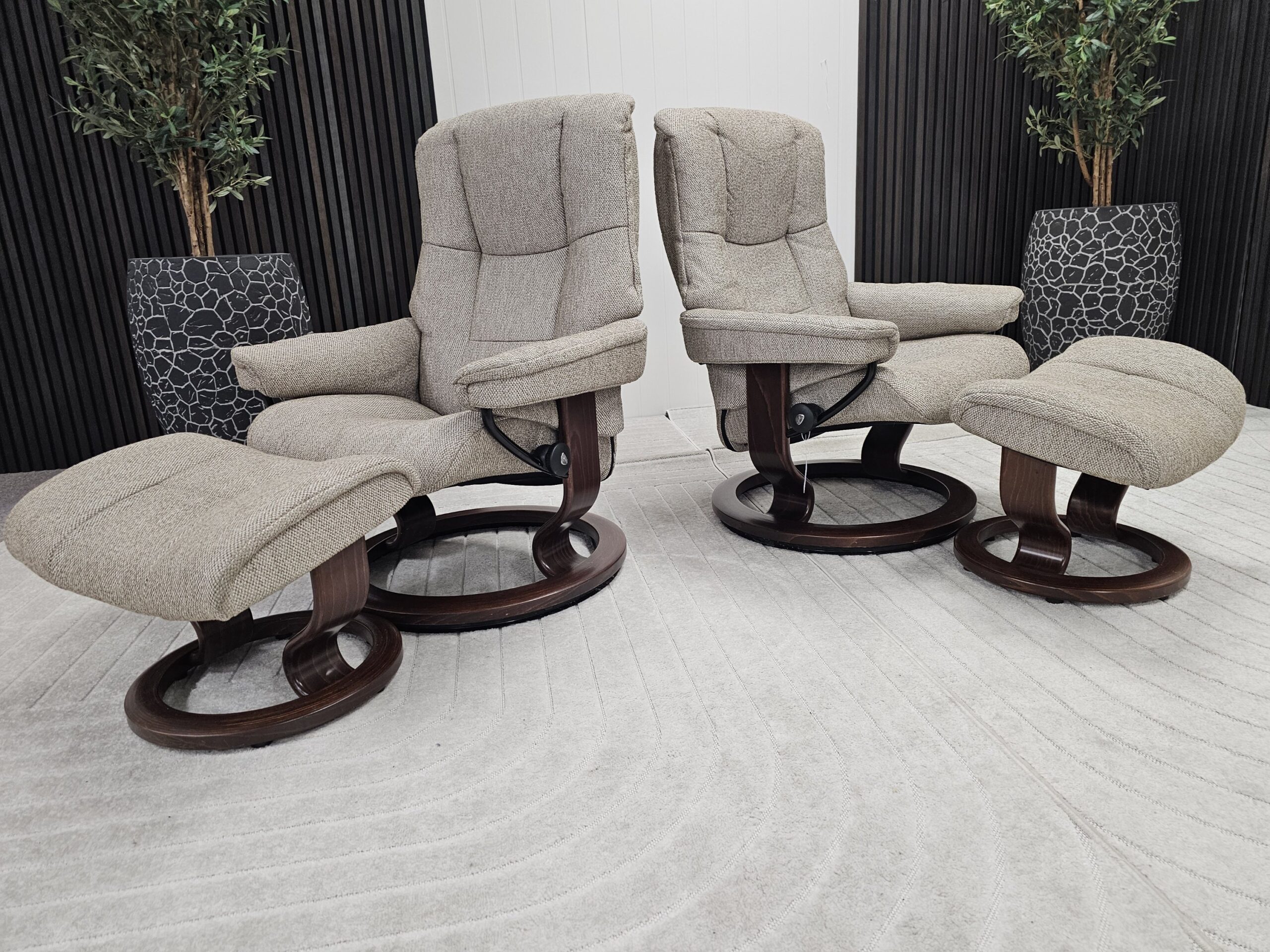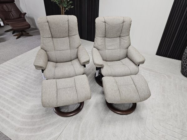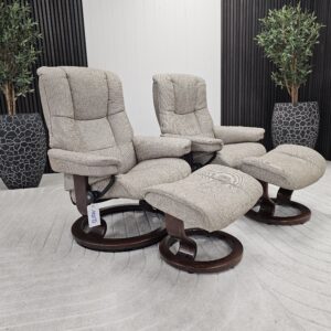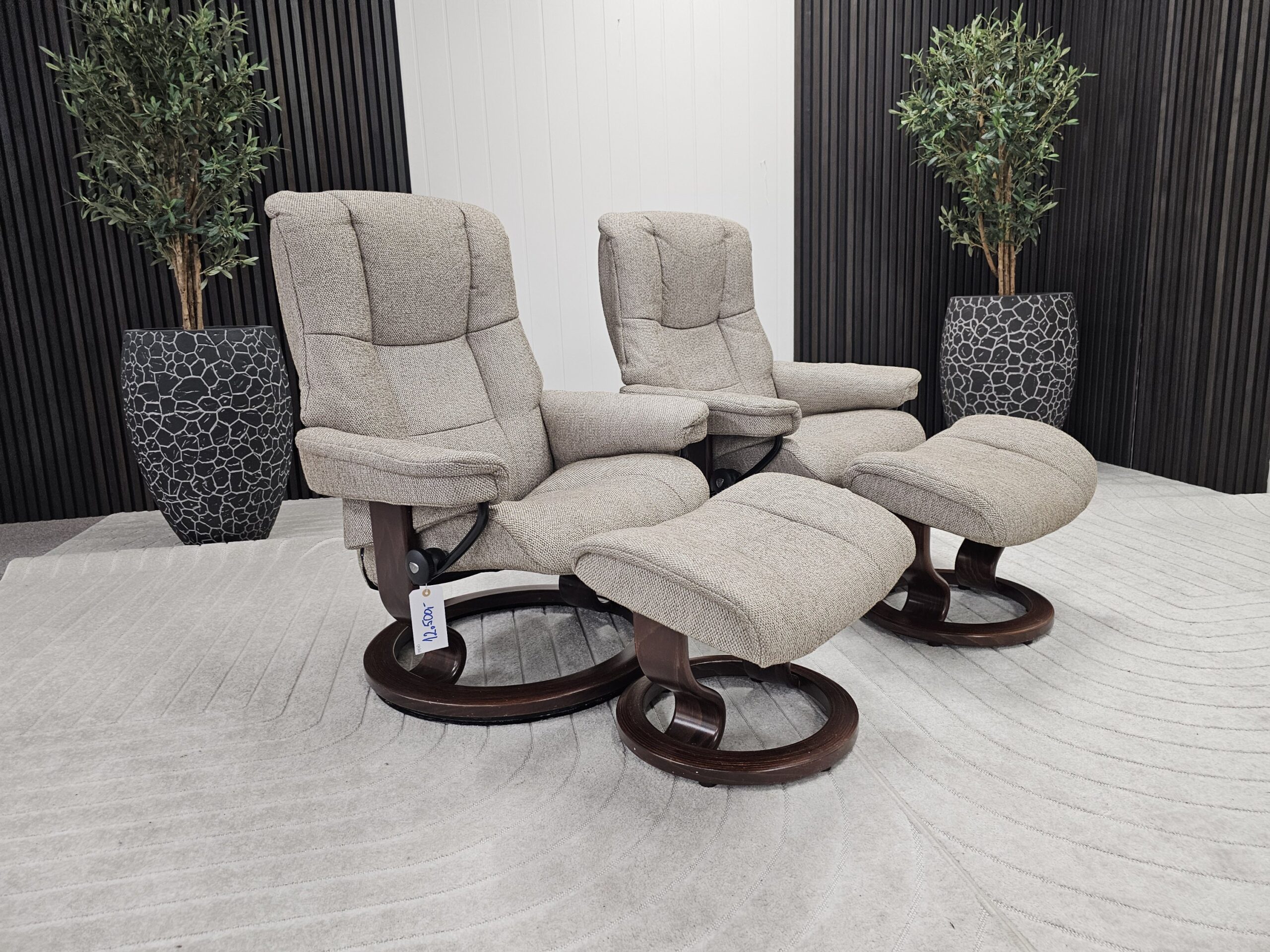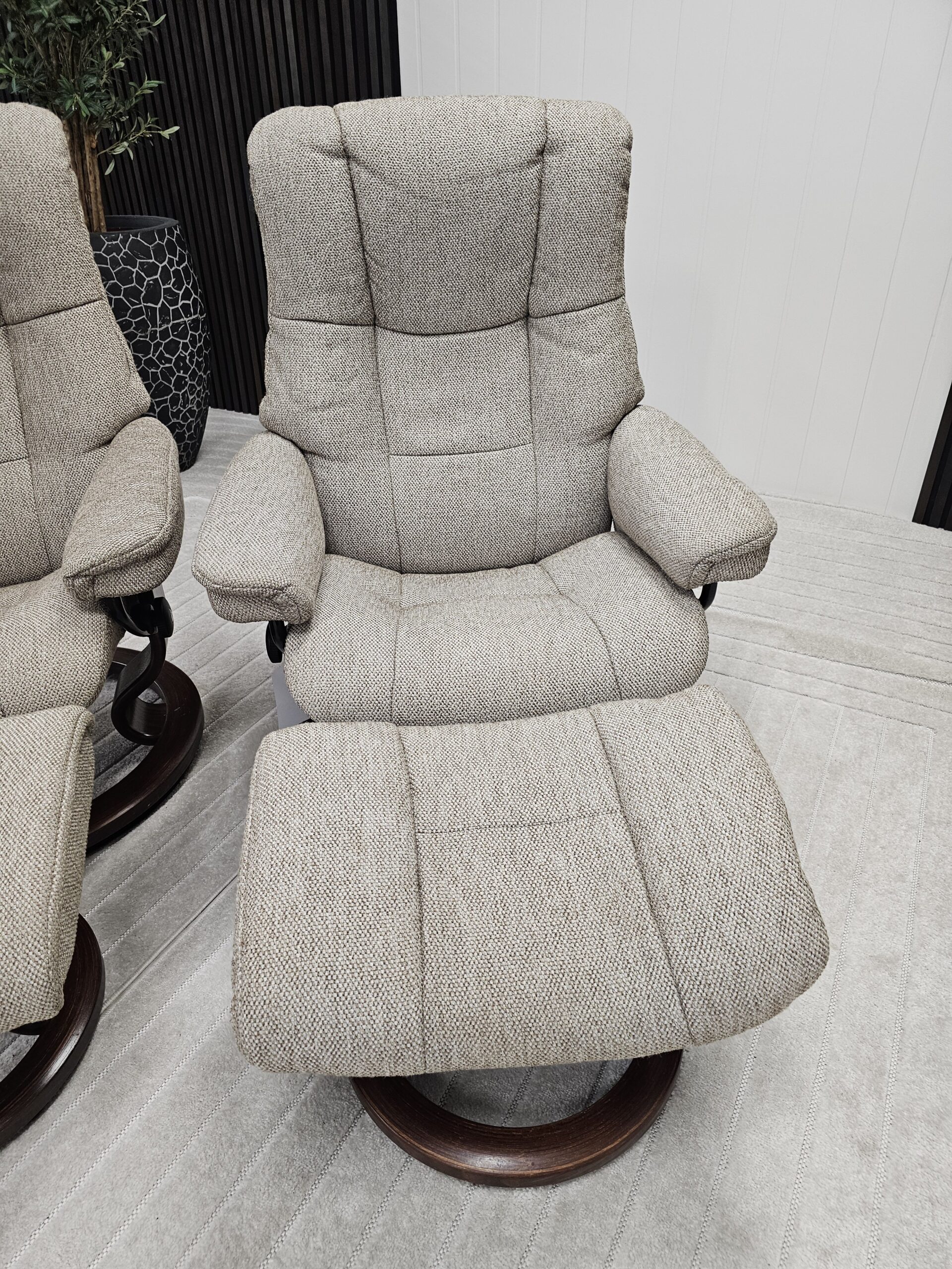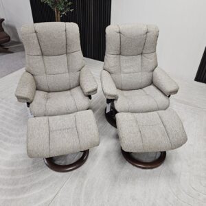 Møblerking presenterer: 2 stk. Stressless® Mayfair Medium – Clover Beige stoff, understell brun beis.