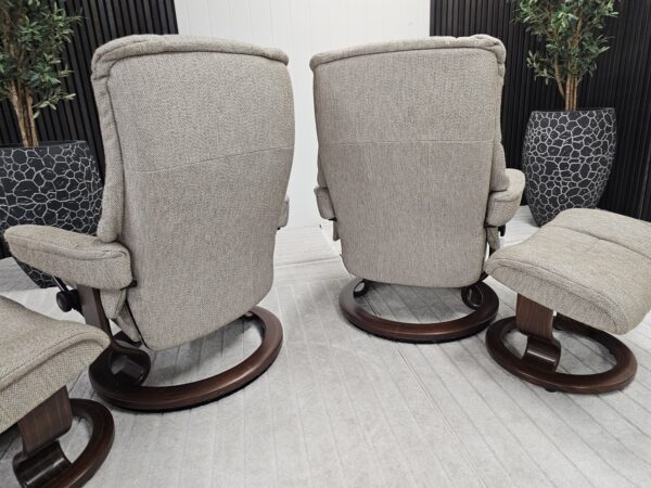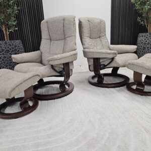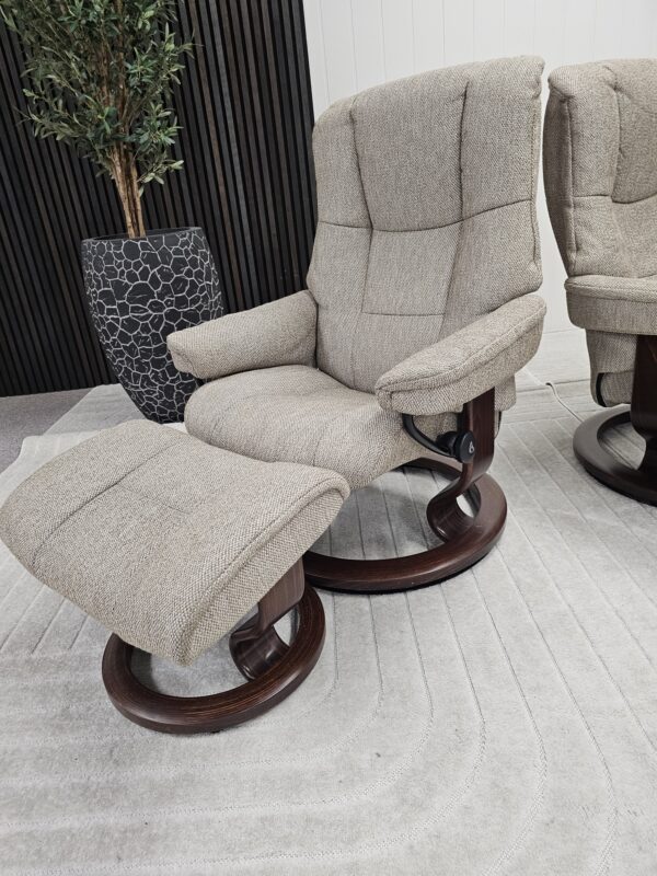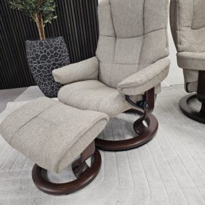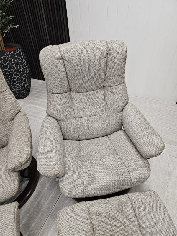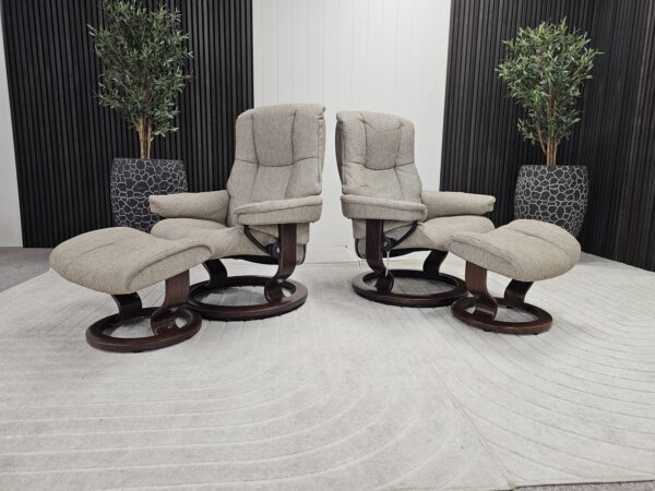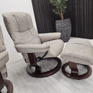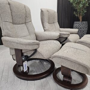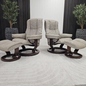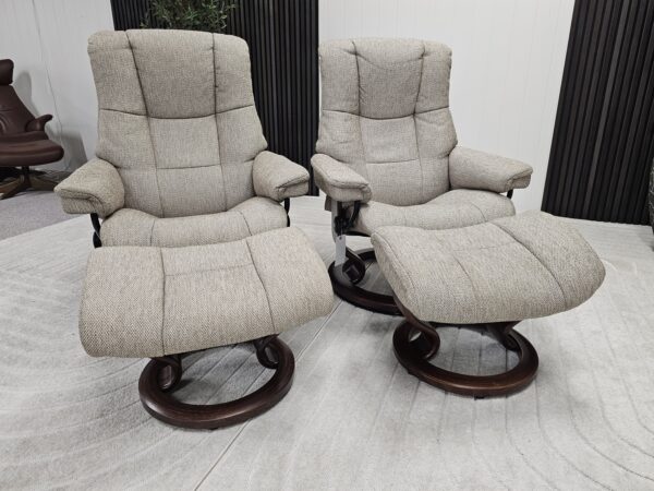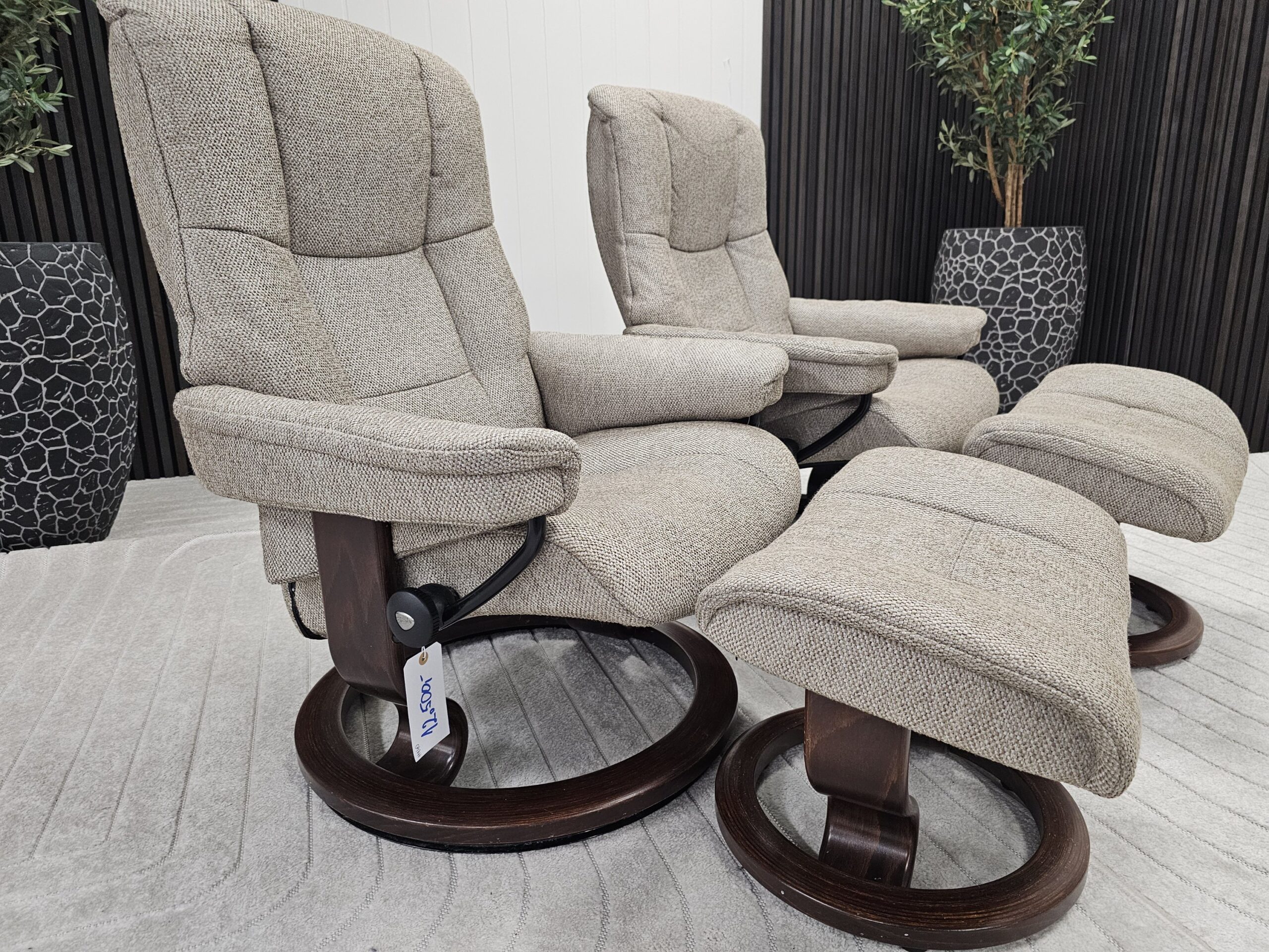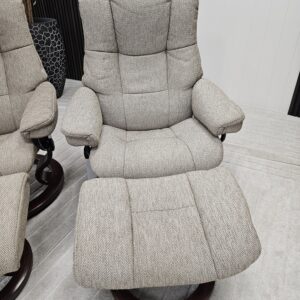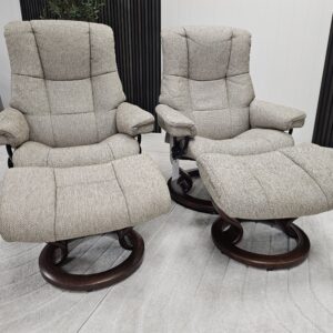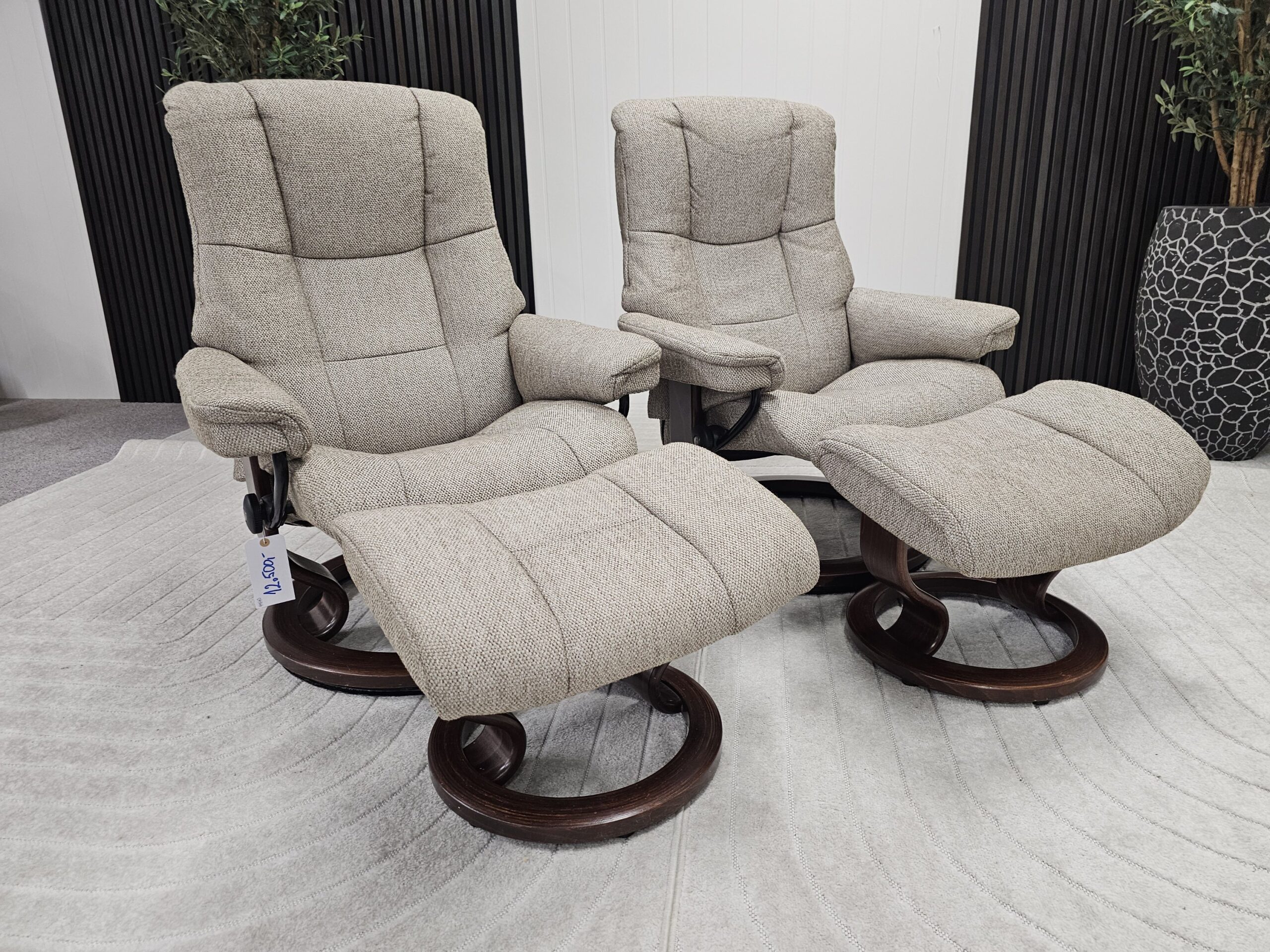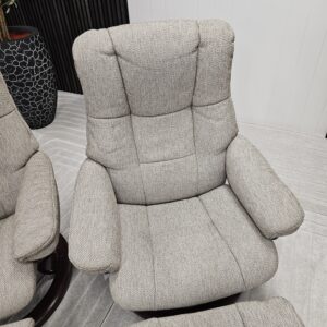 Møblerking presenterer: 2 stk. Stressless® Mayfair Medium – Clover Beige stoff, understell brun beis.