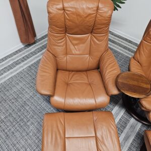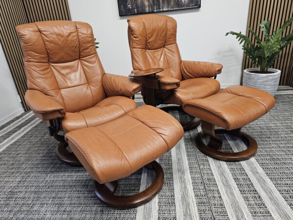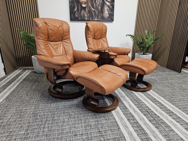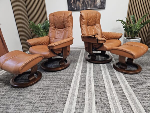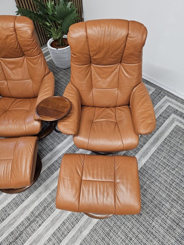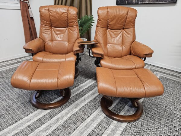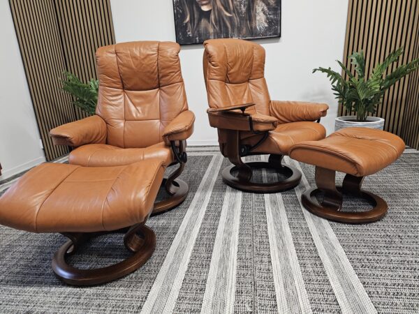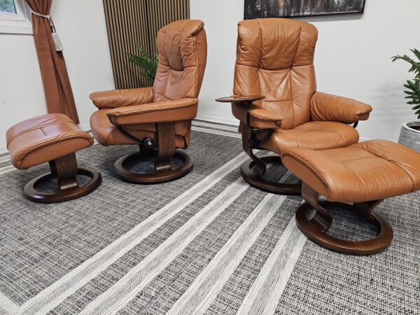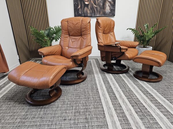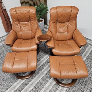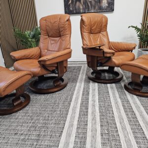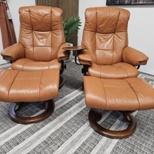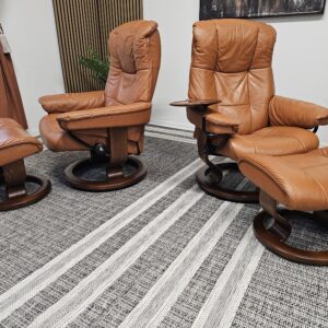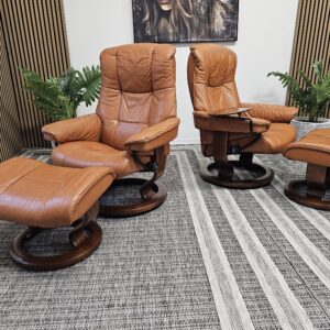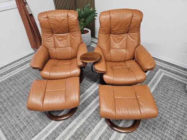 Møblerking presenterer: 2 stk. Stressless® Mayfair (Medium) – Cognac skinn, brunbeiset understell