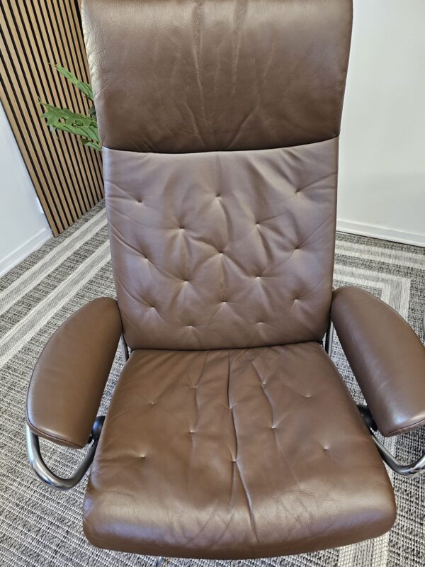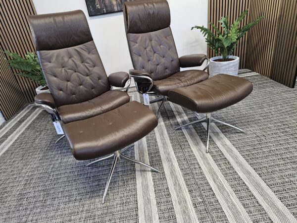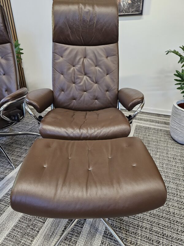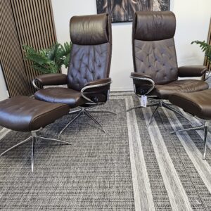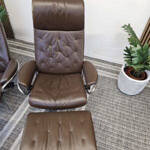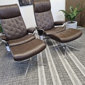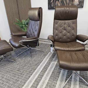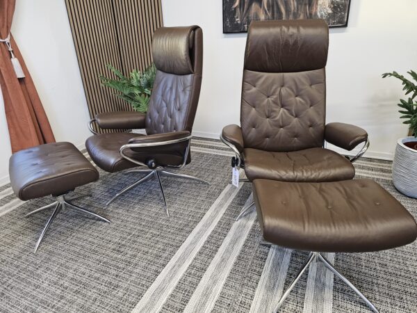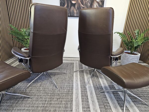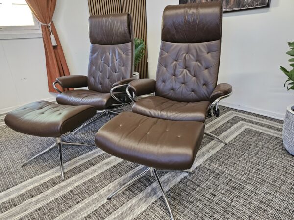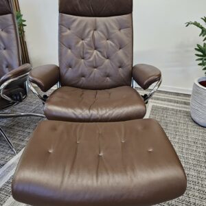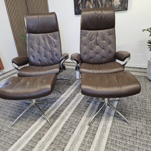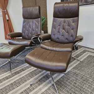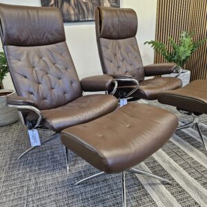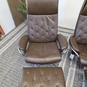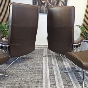 2 stk. Stressless® Metro Høyrygg med krakk – Paloma Chocolate skinn, Chrome understell