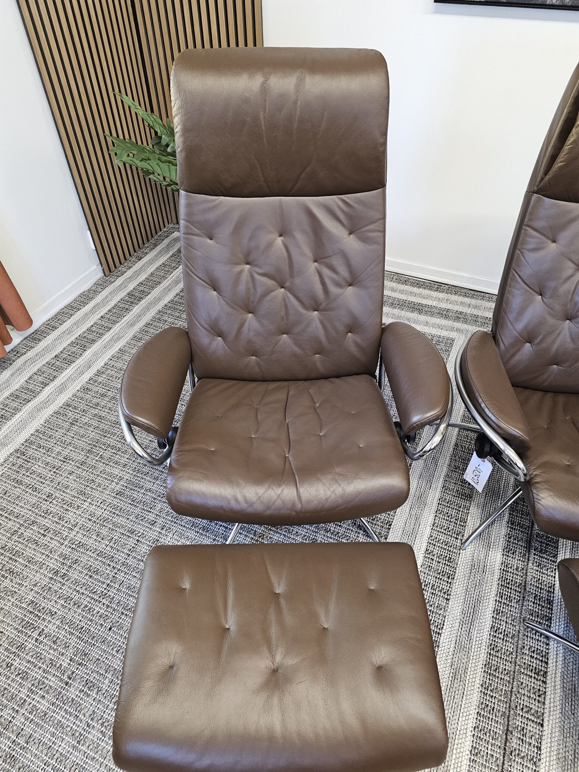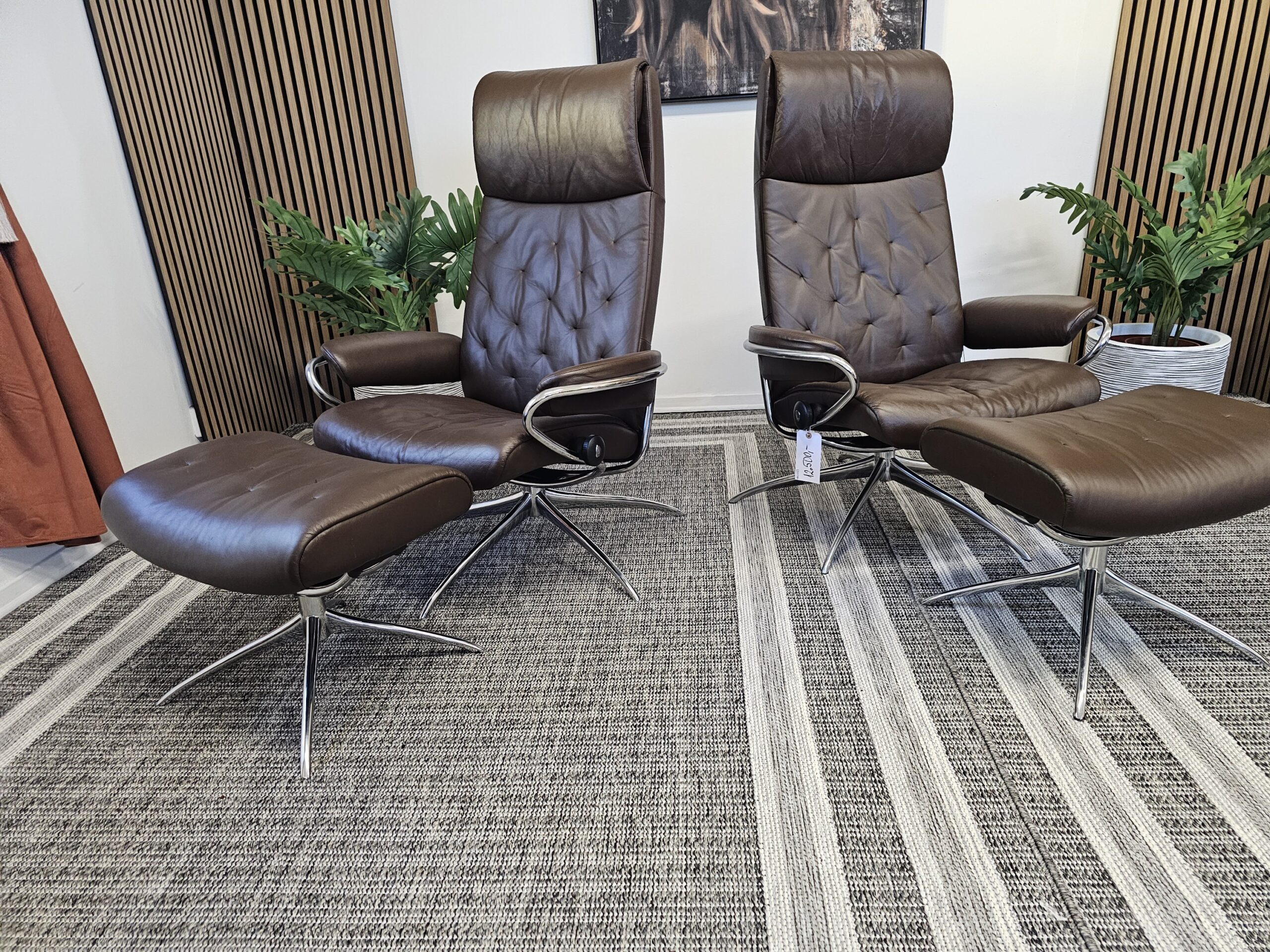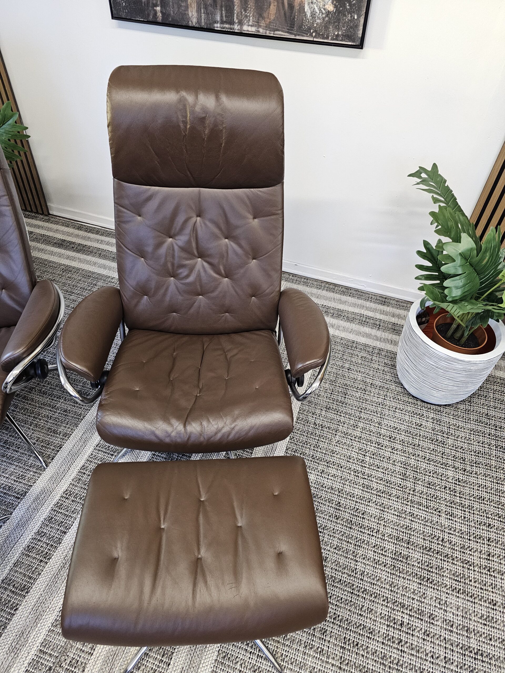2 stk. Stressless® Metro Høyrygg med krakk – Paloma Chocolate skinn, Chrome understell