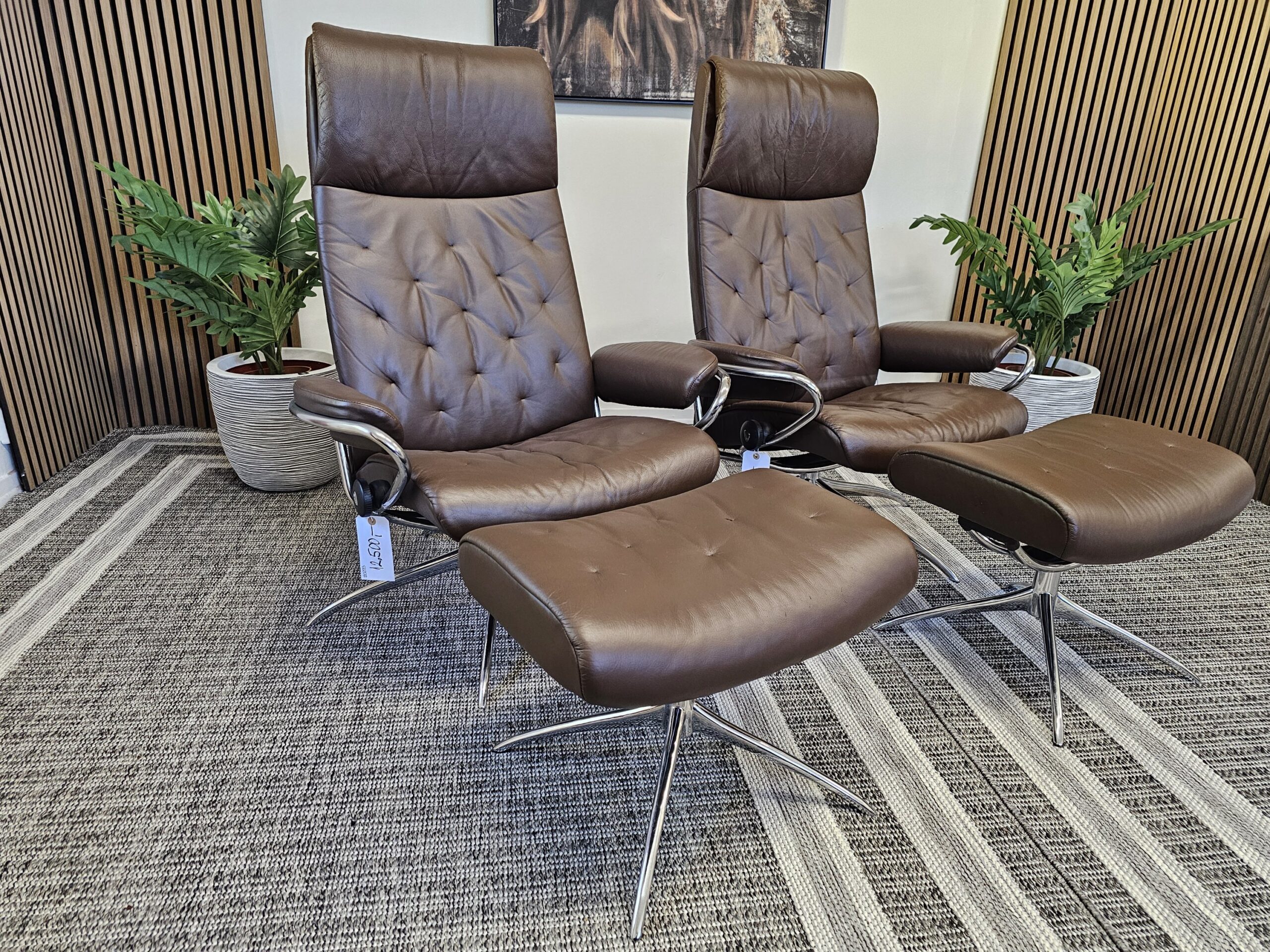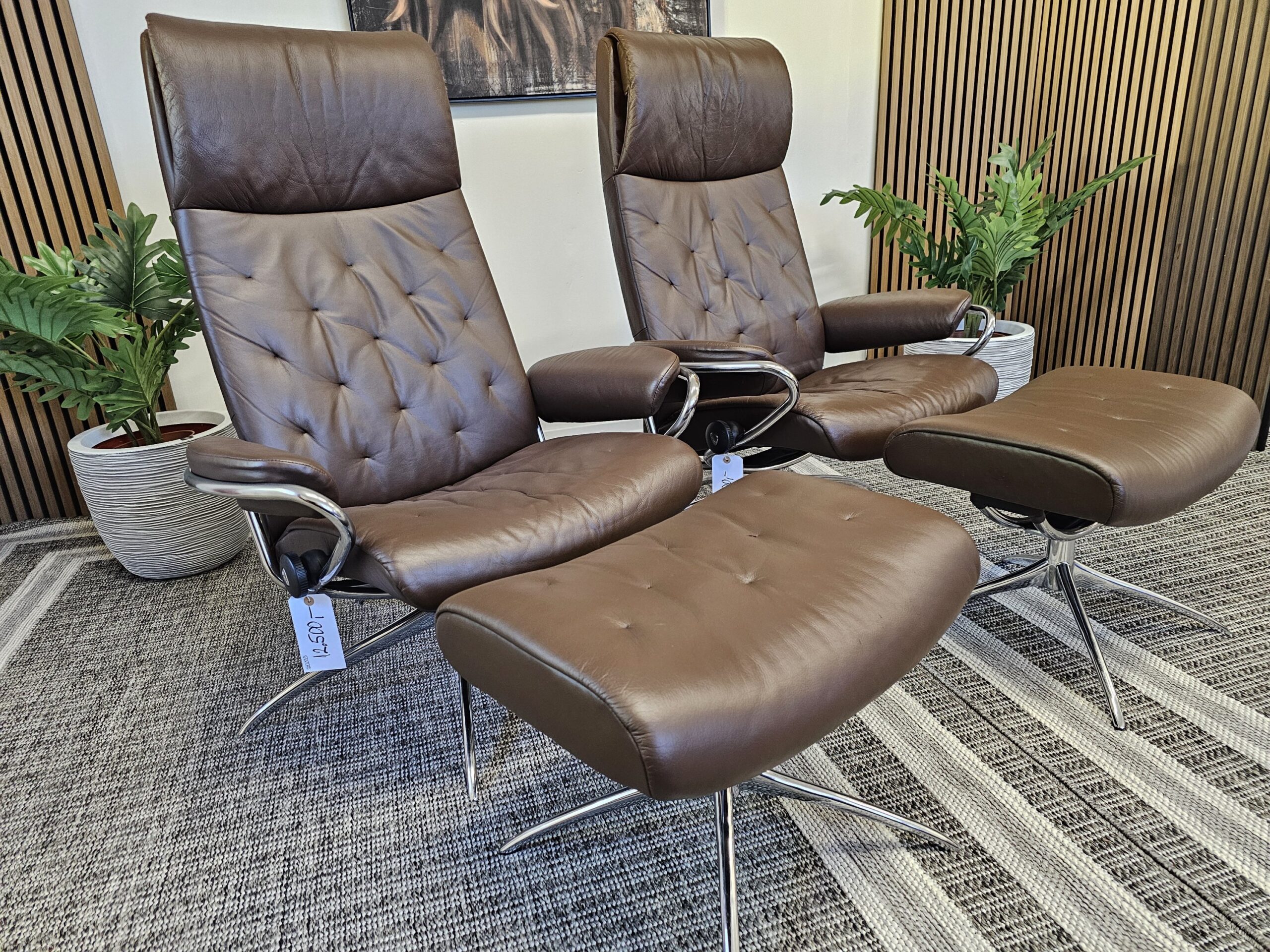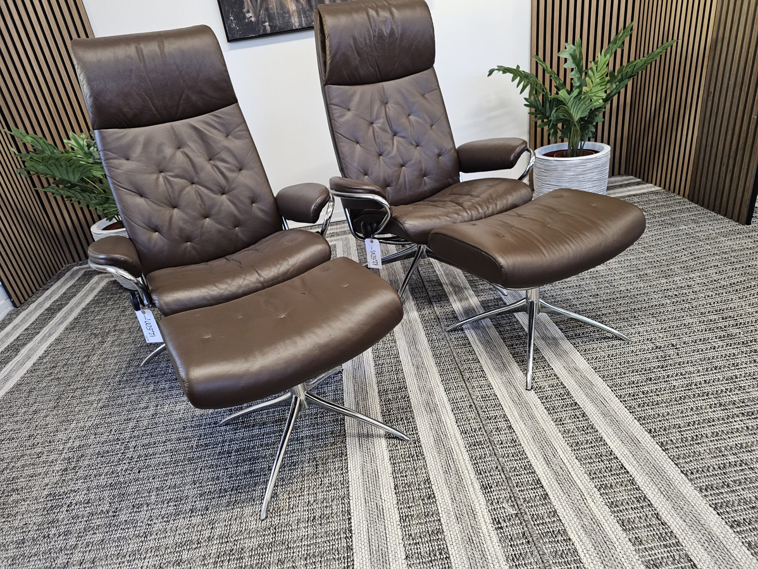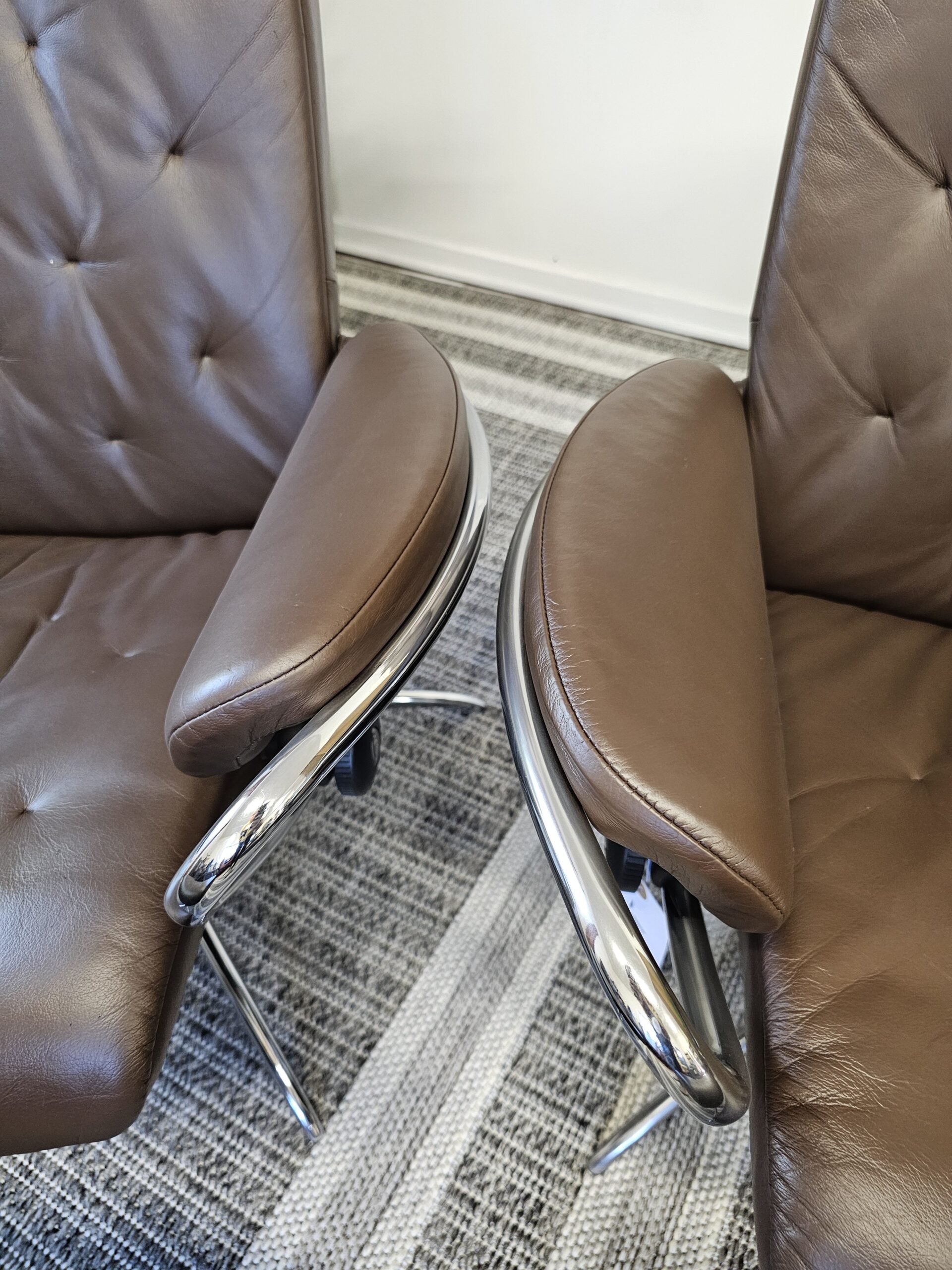 2 stk. Stressless® Metro Høyrygg med krakk – Paloma Chocolate skinn, Chrome understell