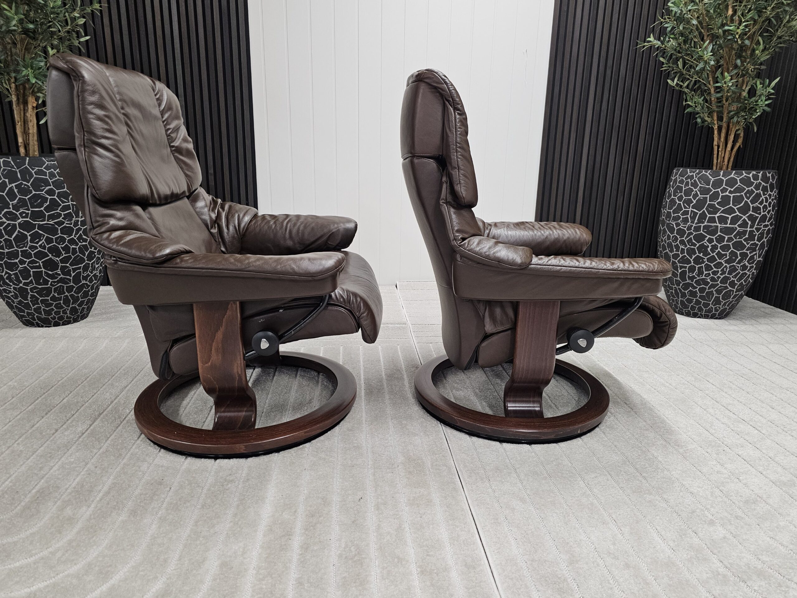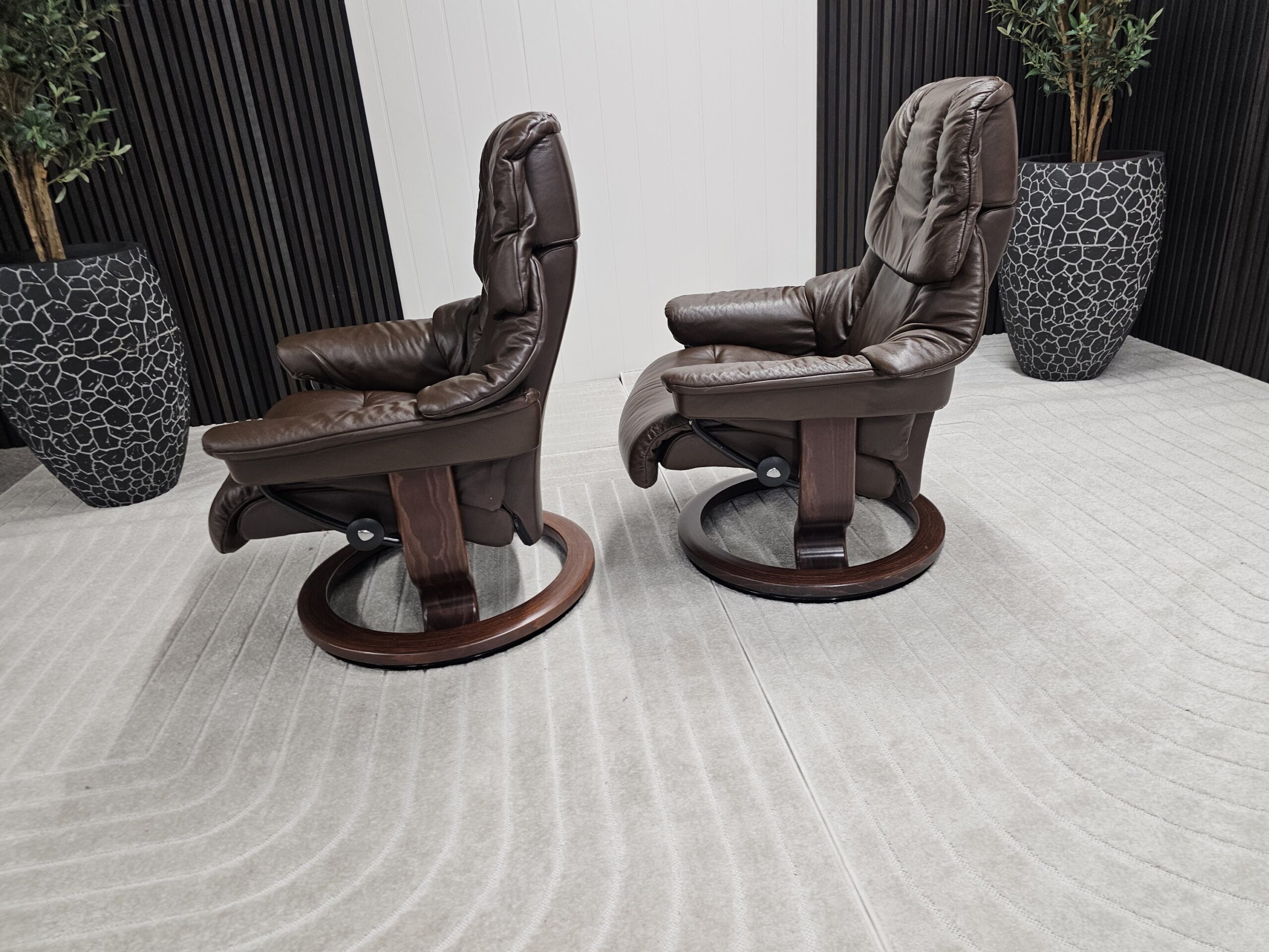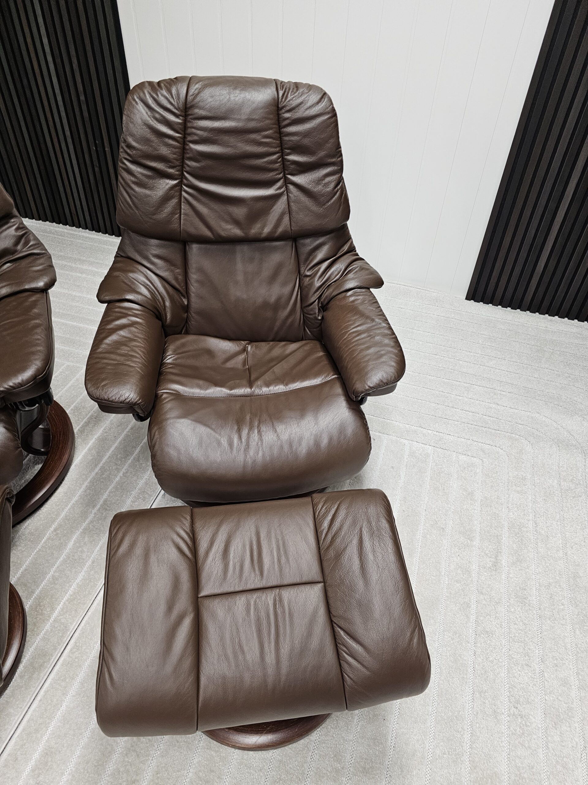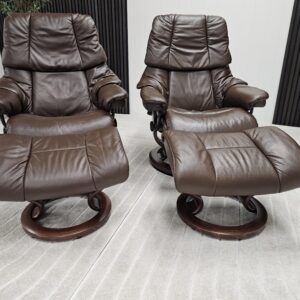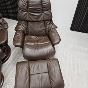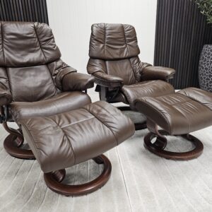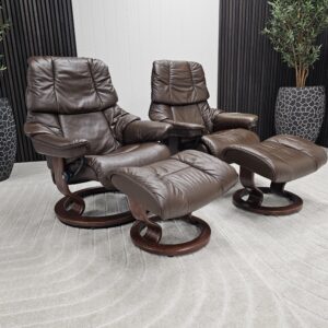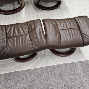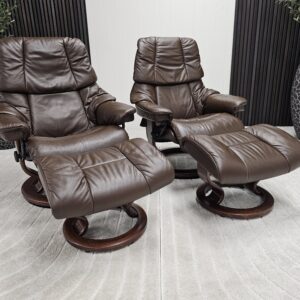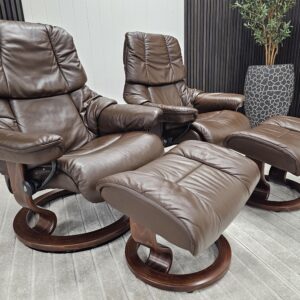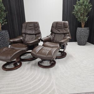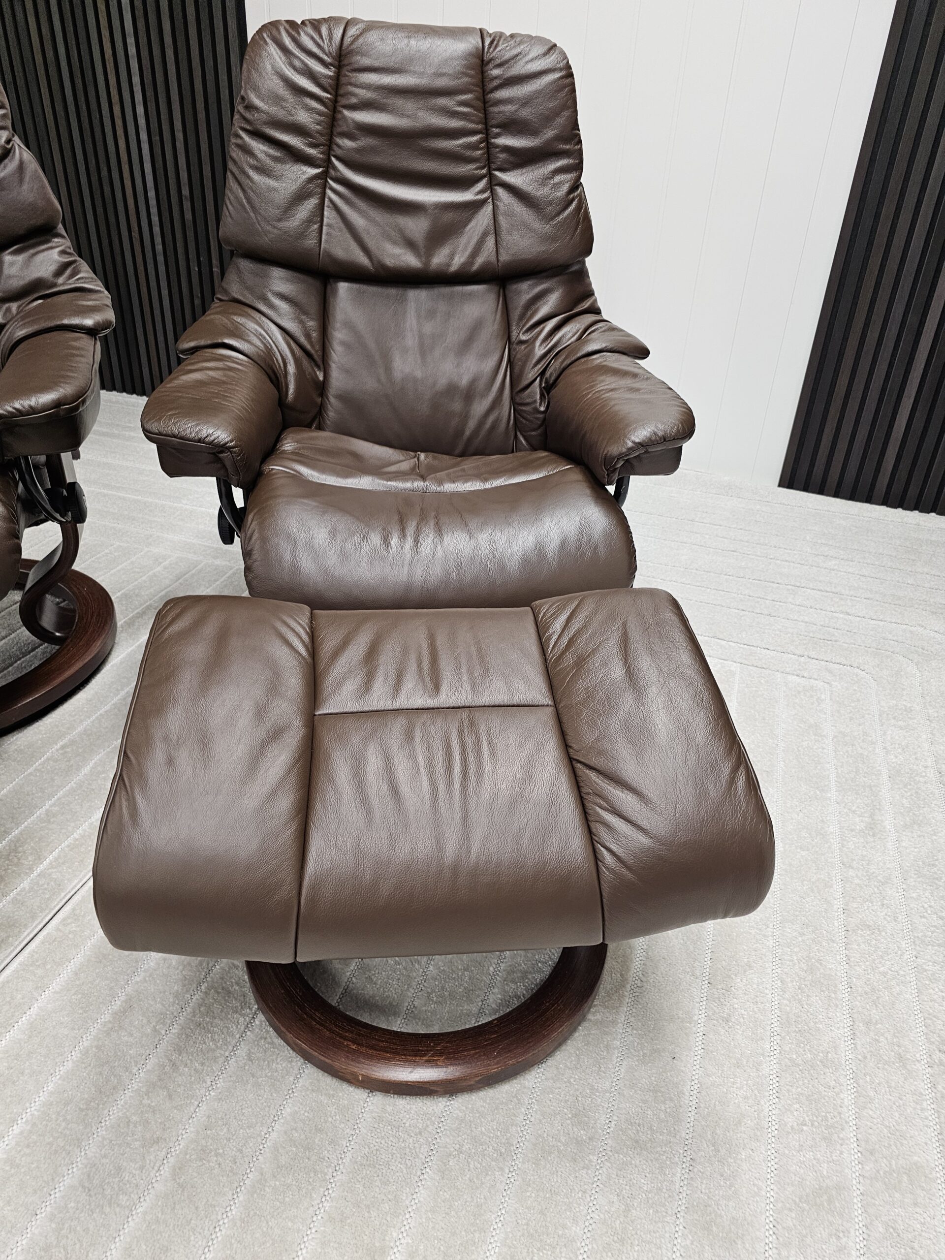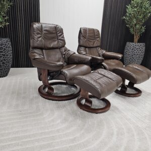 Møblerking presenterer: 2 stk. Stressless® Reno Medium og Small– Paloma Chocolate skinn, Brun beiset understell