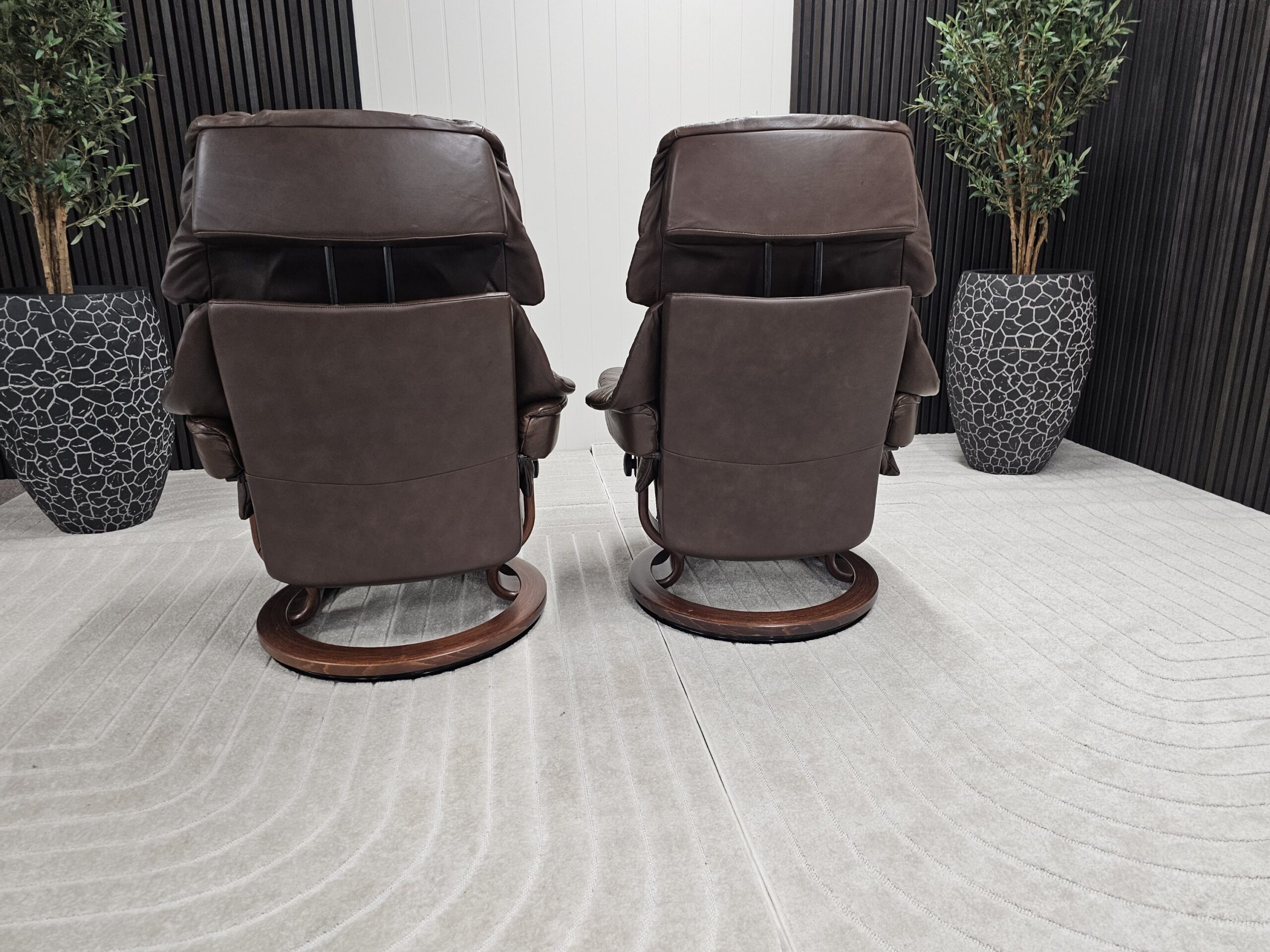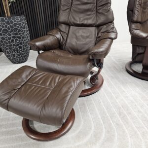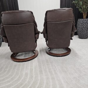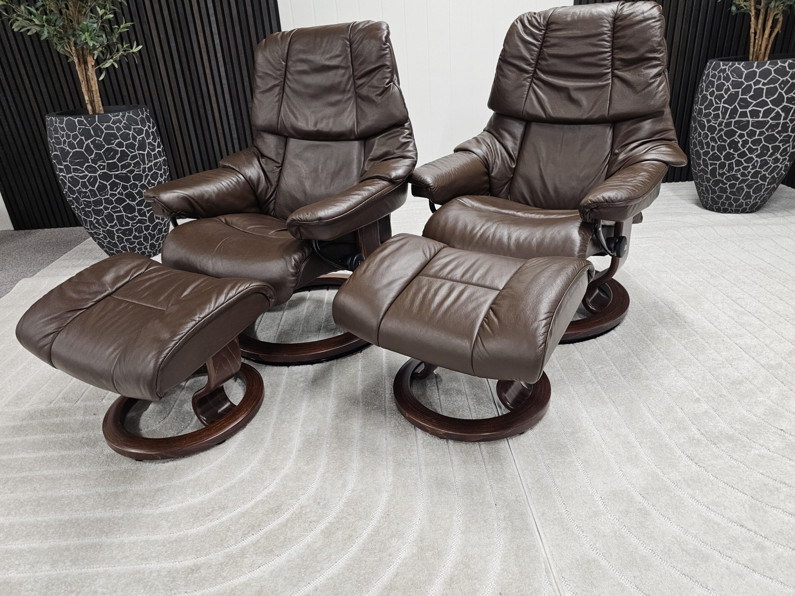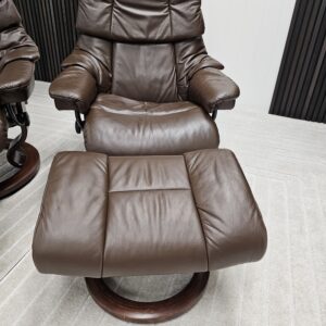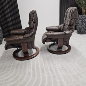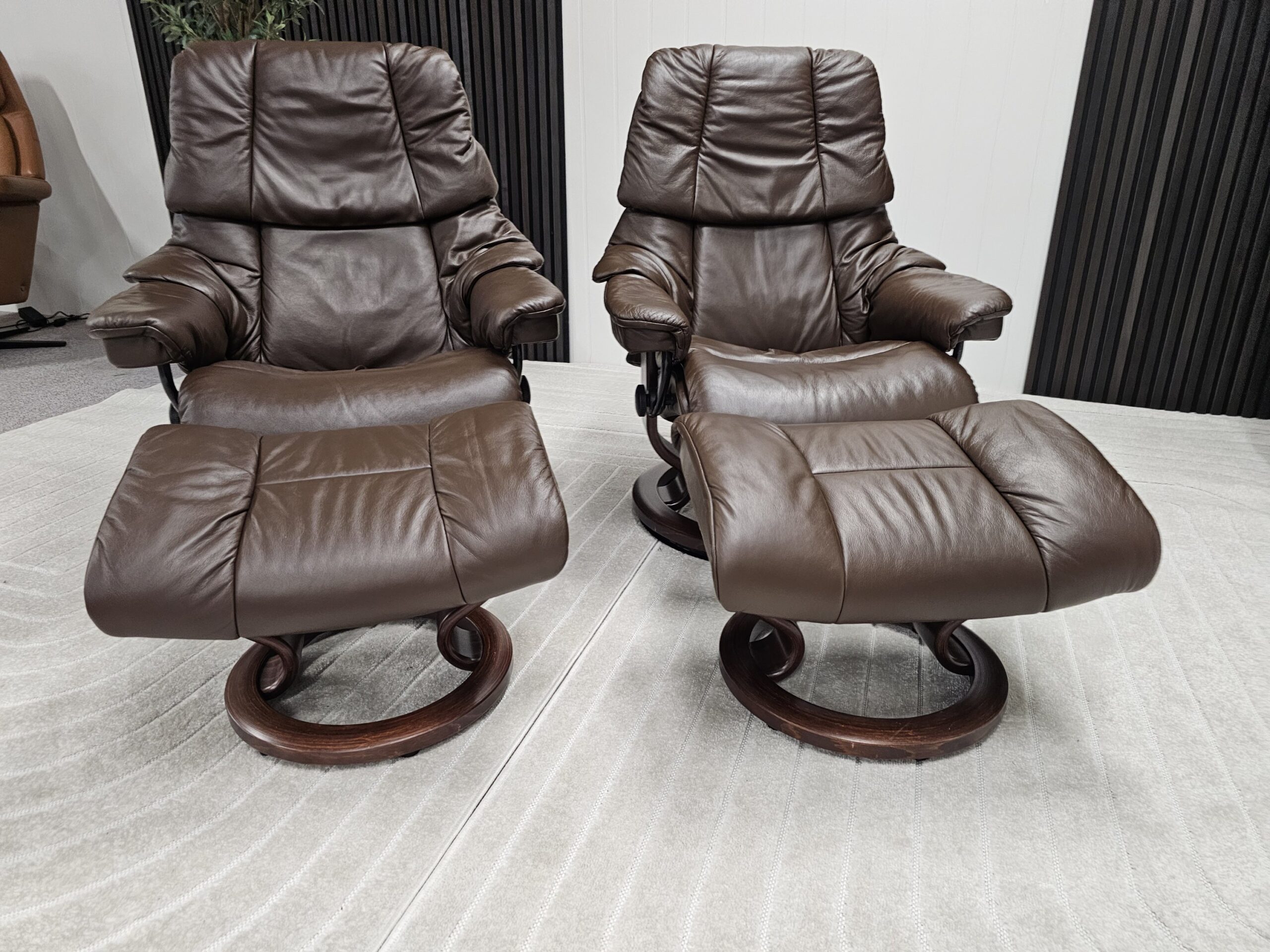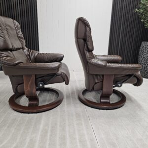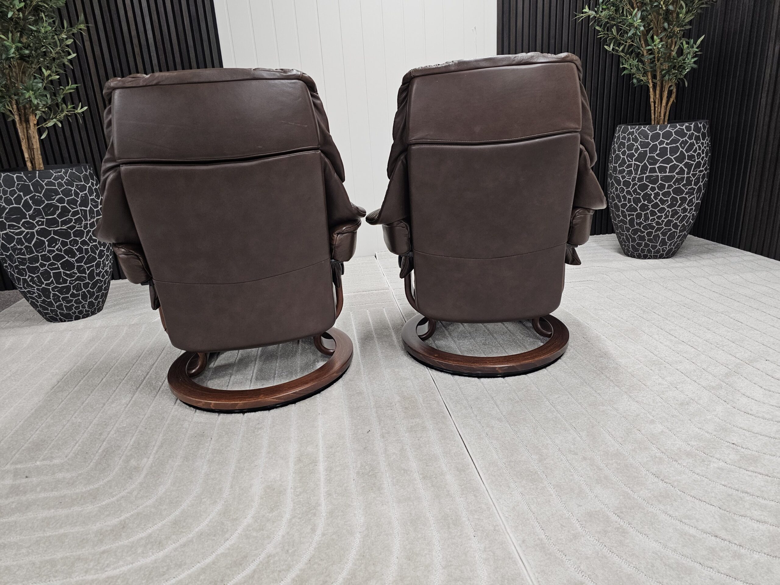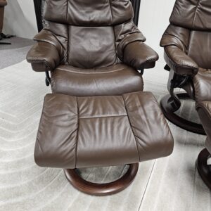 Møblerking presenterer: 2 stk. Stressless® Reno Medium og Small– Paloma Chocolate skinn, Brun beiset understell