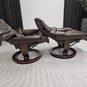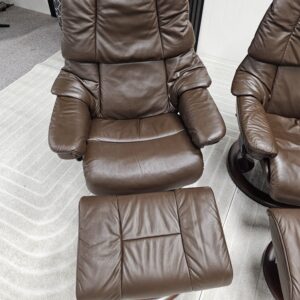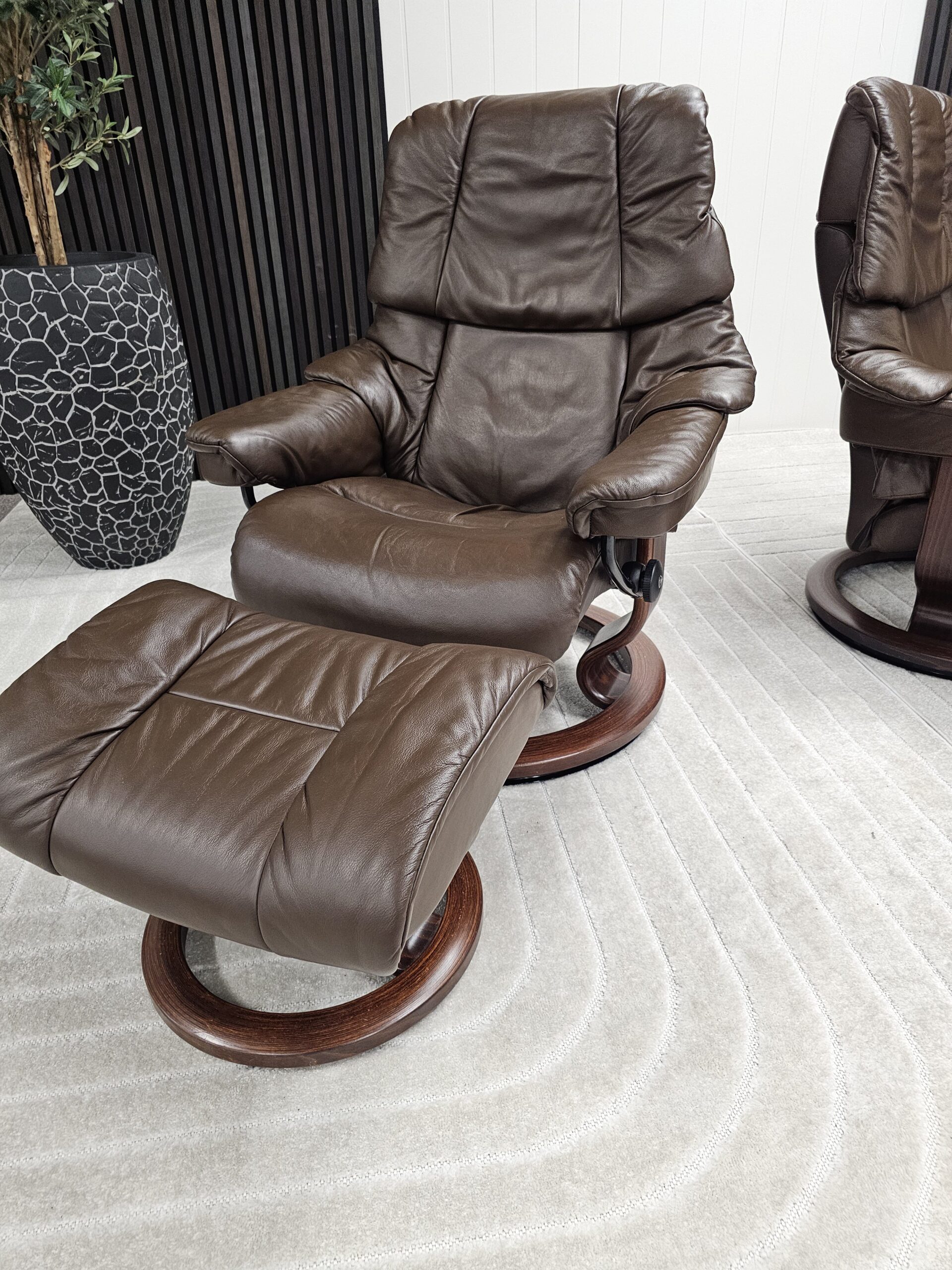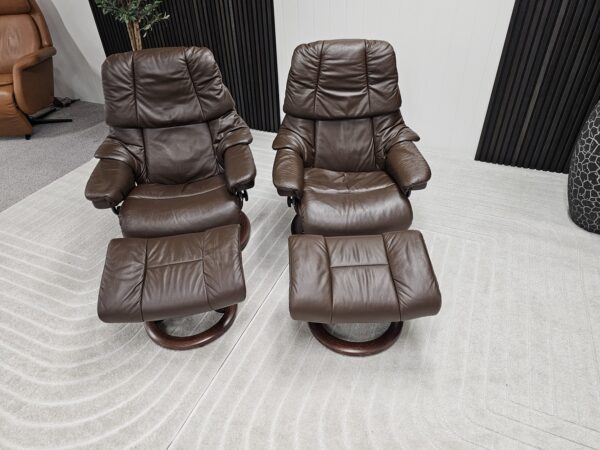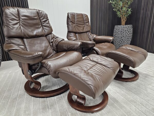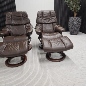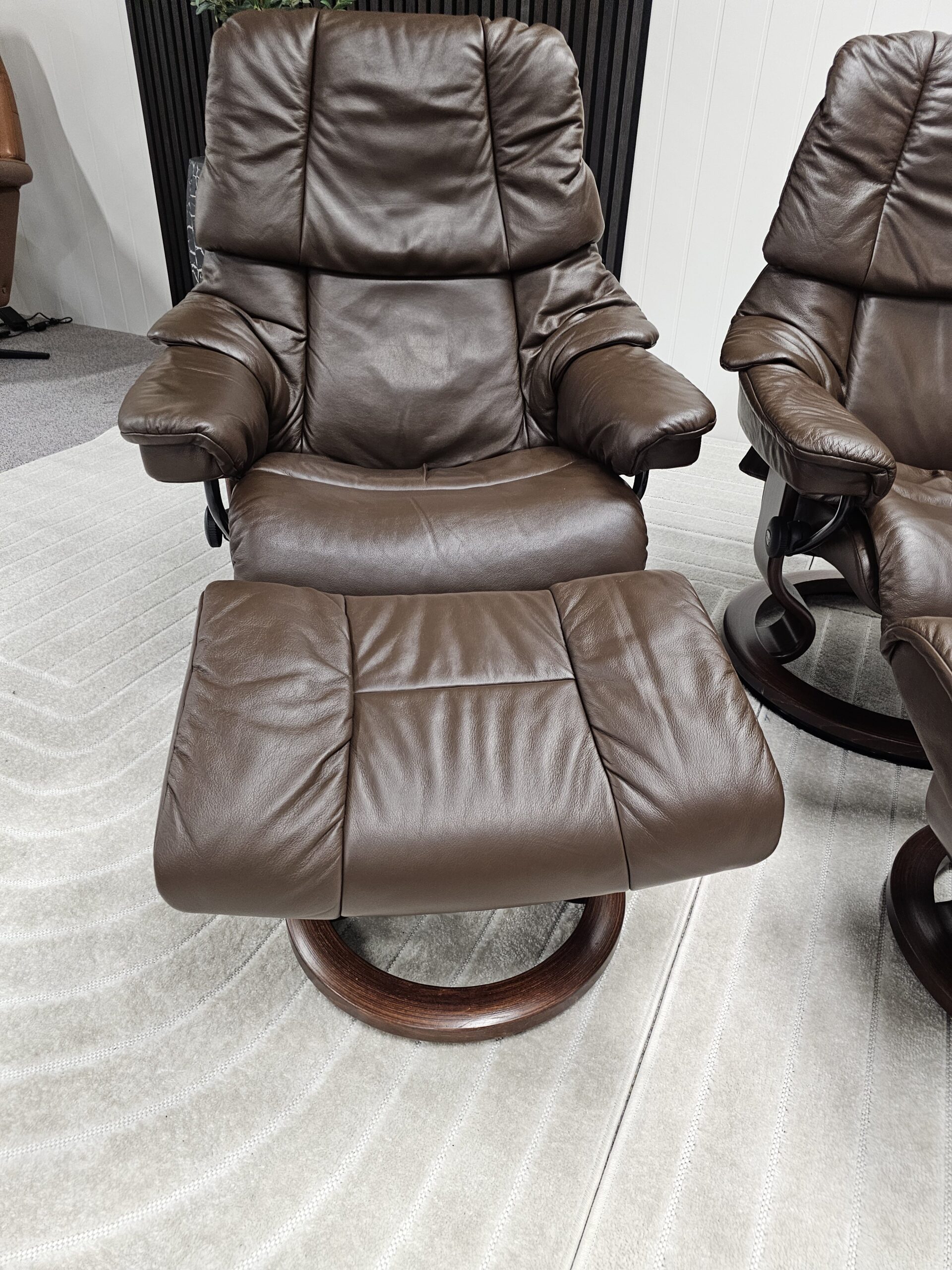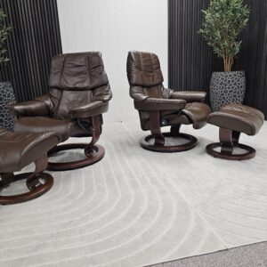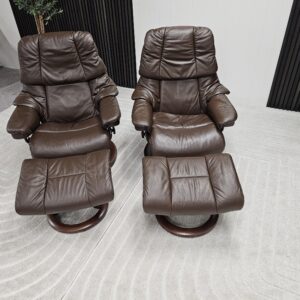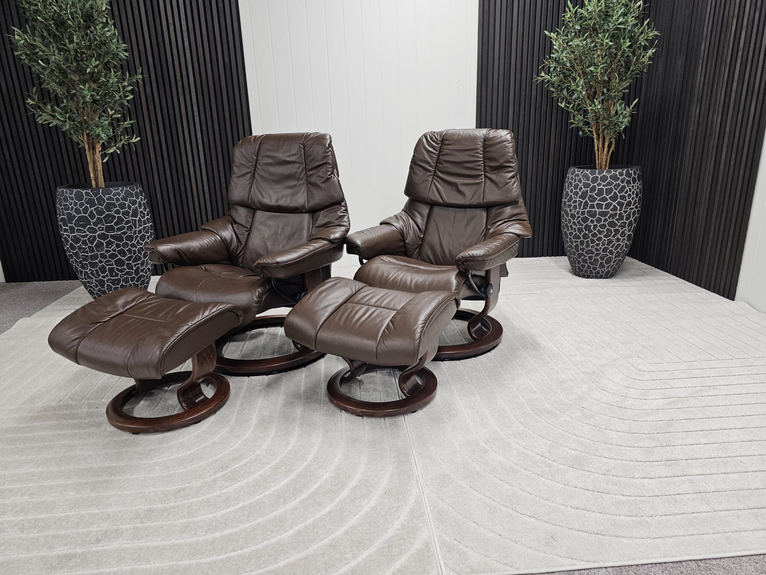 Møblerking presenterer: 2 stk. Stressless® Reno Medium og Small– Paloma Chocolate skinn, Brun beiset understell