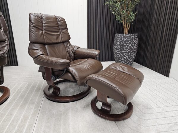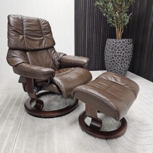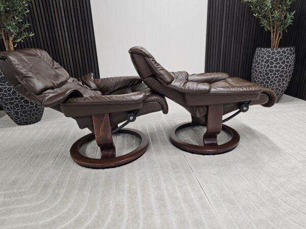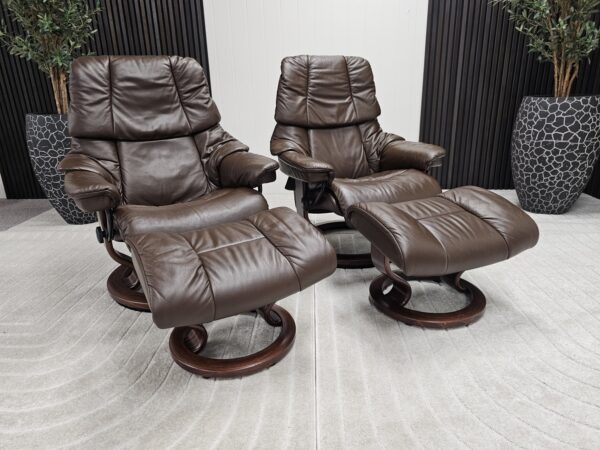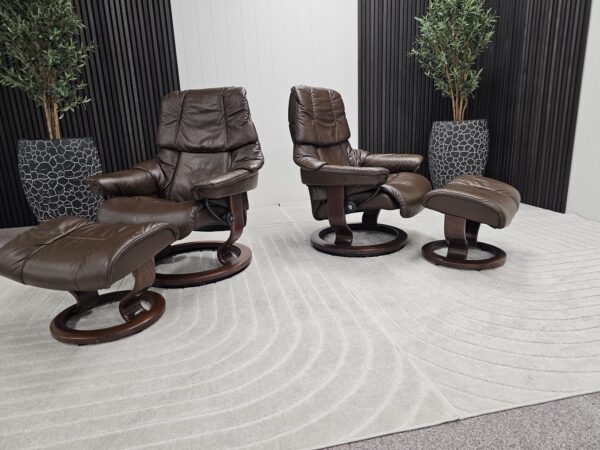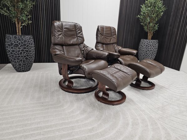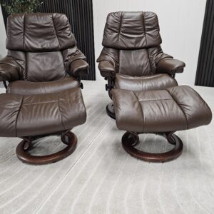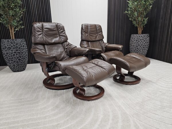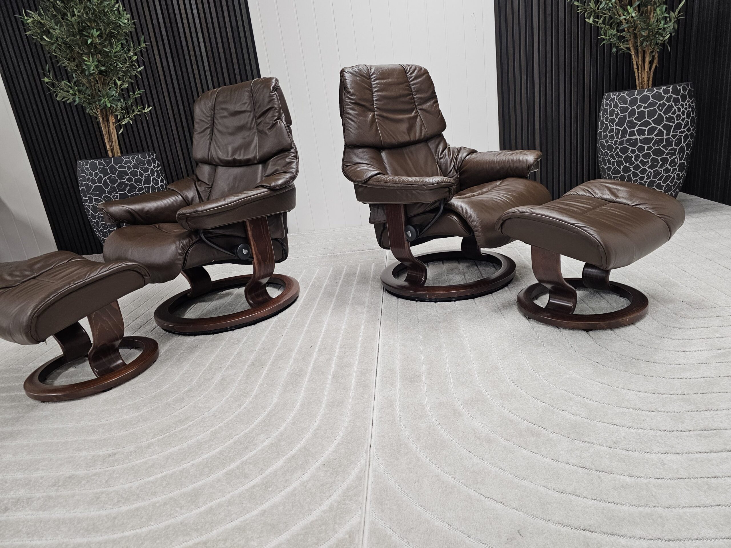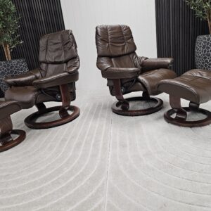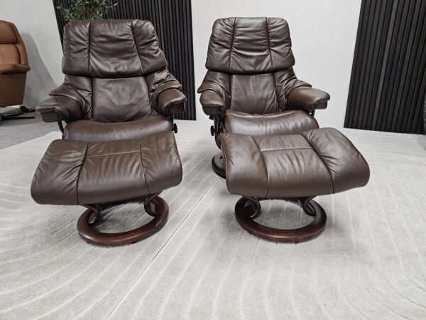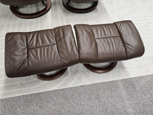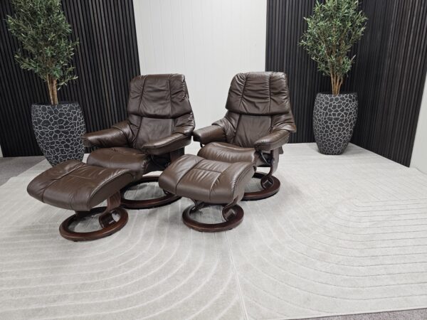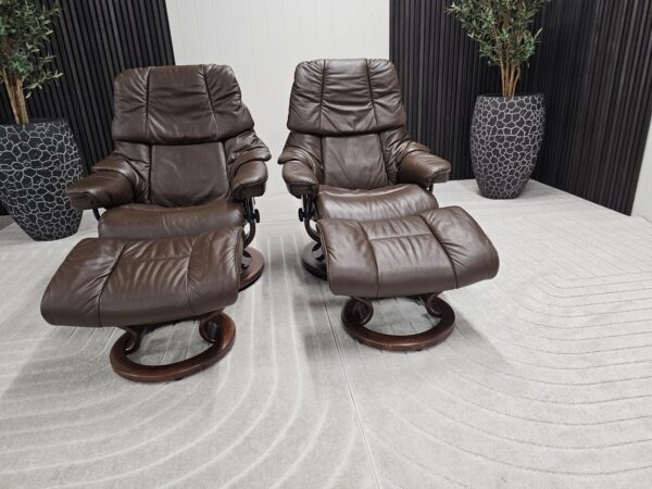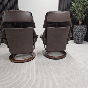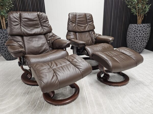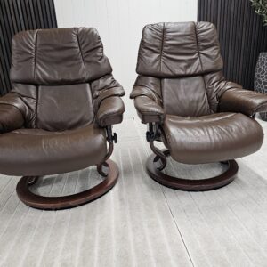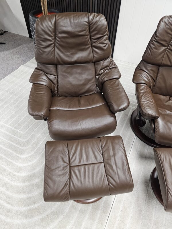 Møblerking presenterer: 2 stk. Stressless® Reno Medium og Small– Paloma Chocolate skinn, Brun beiset understell