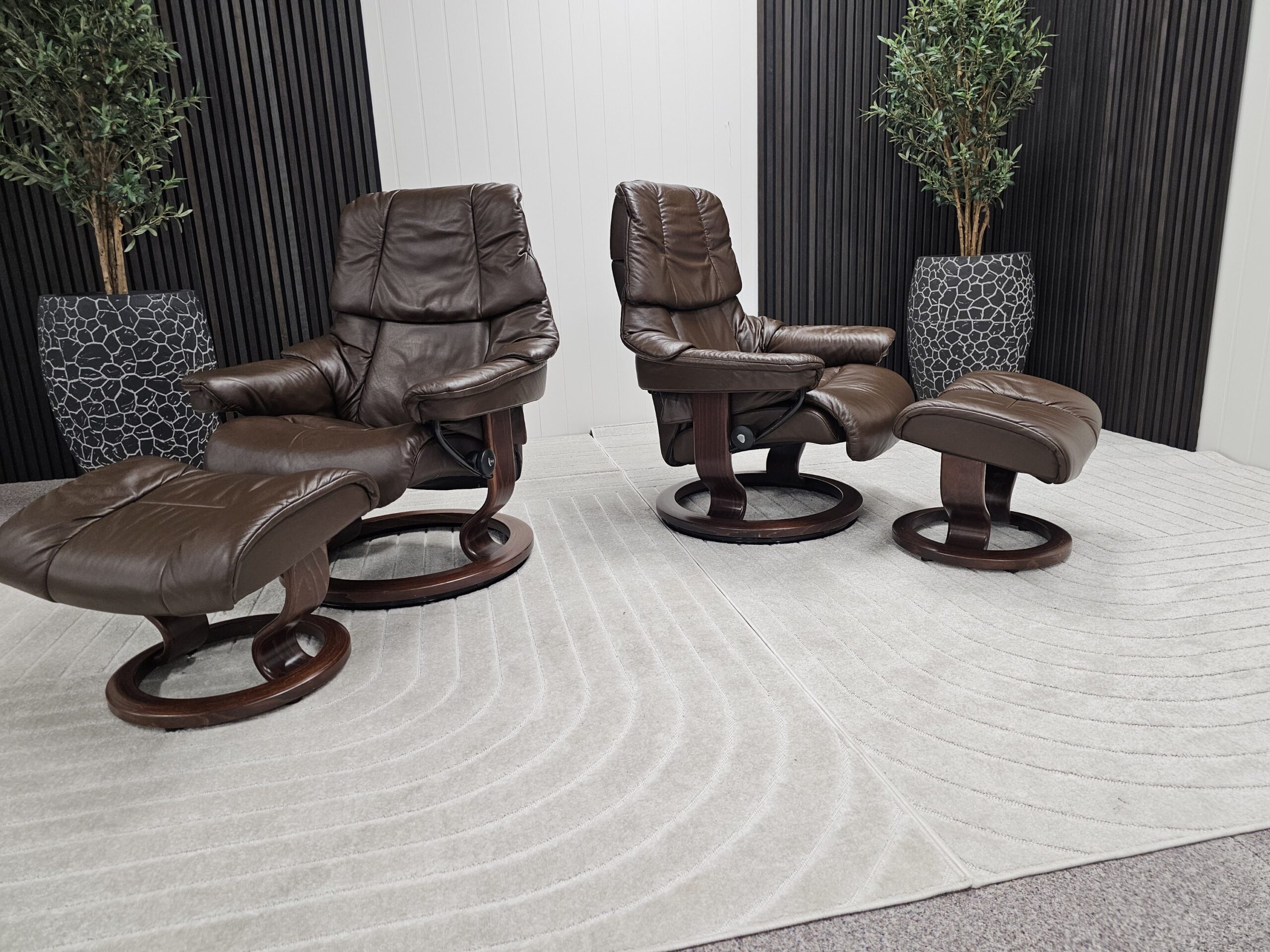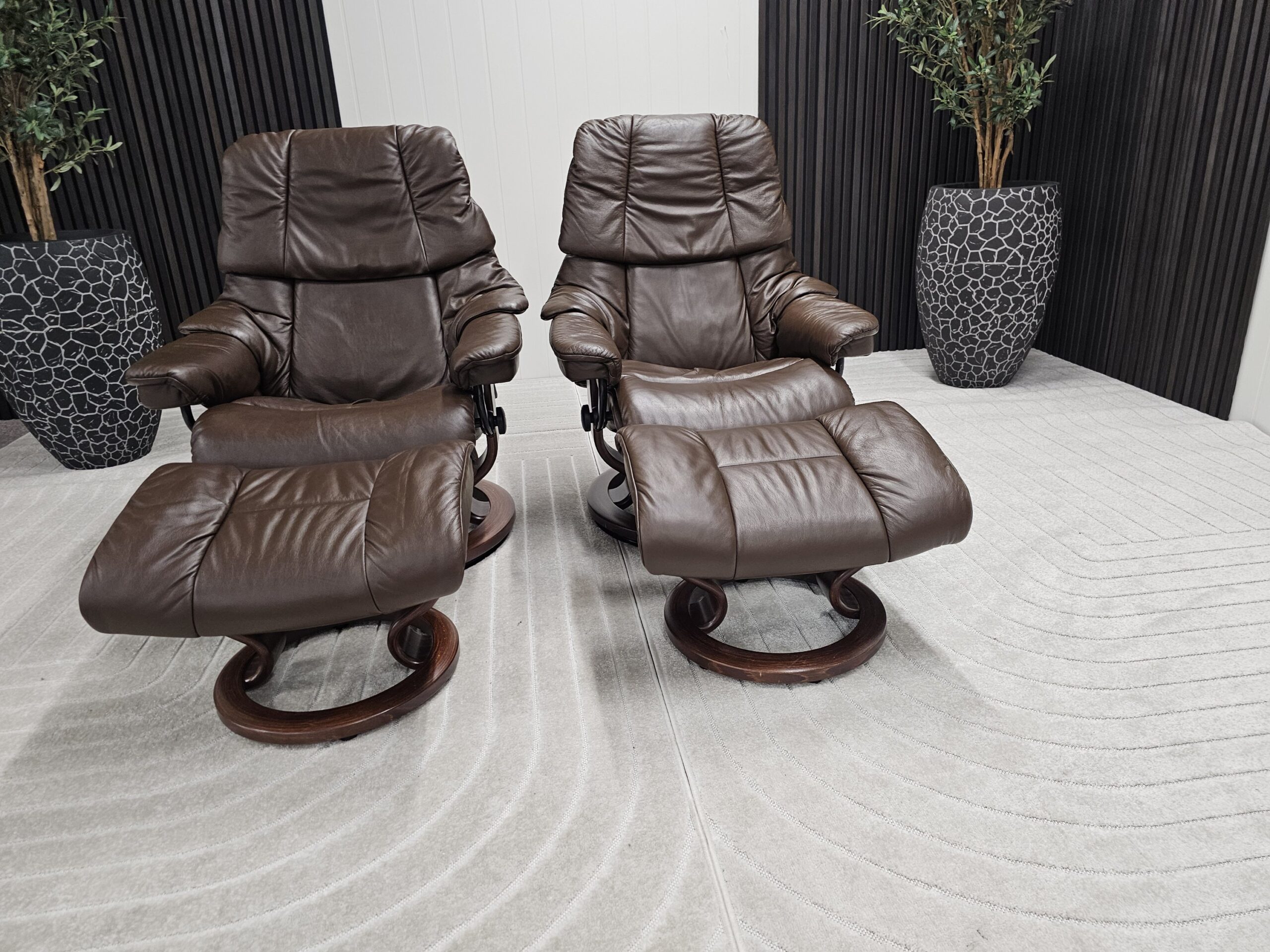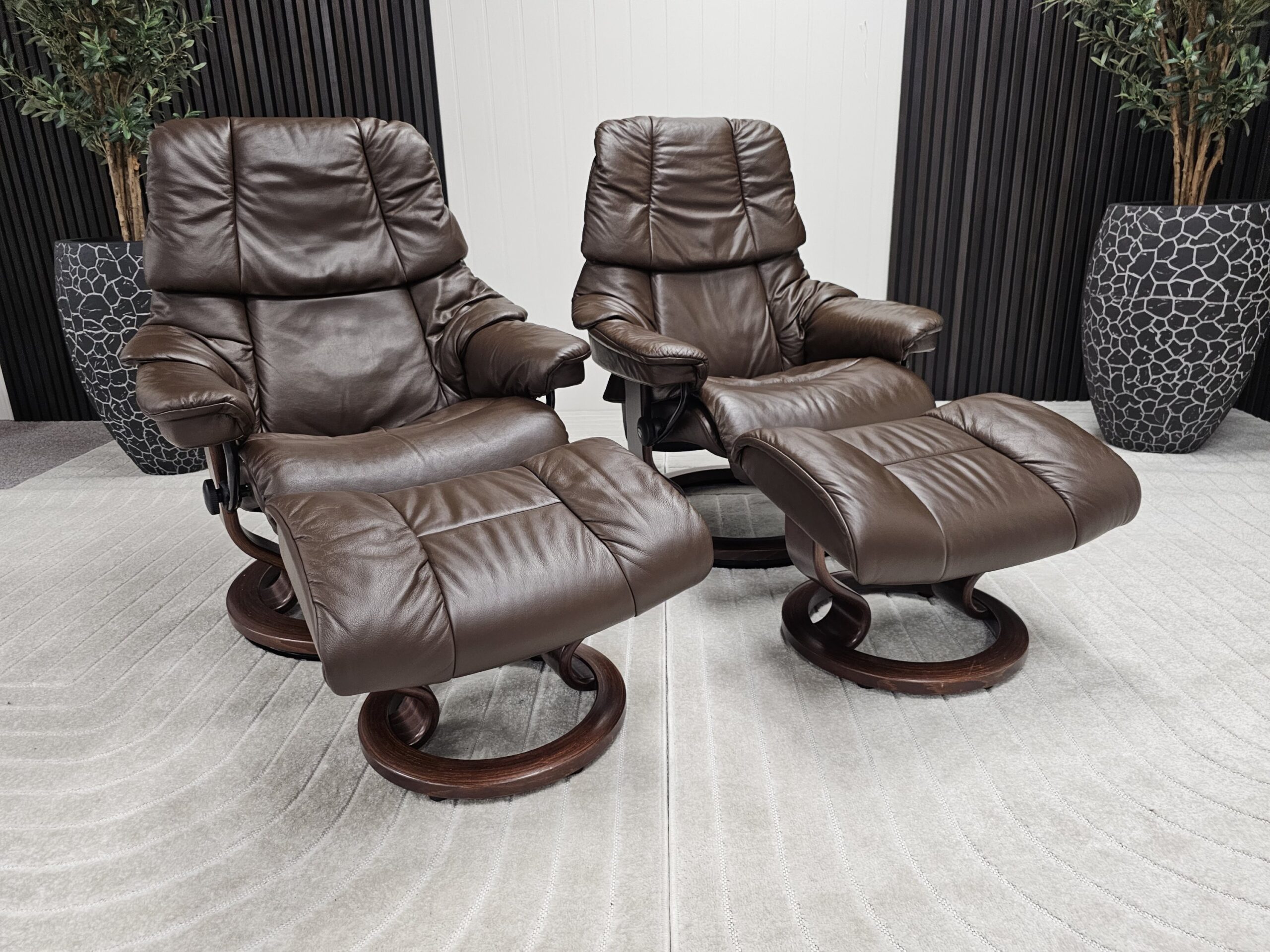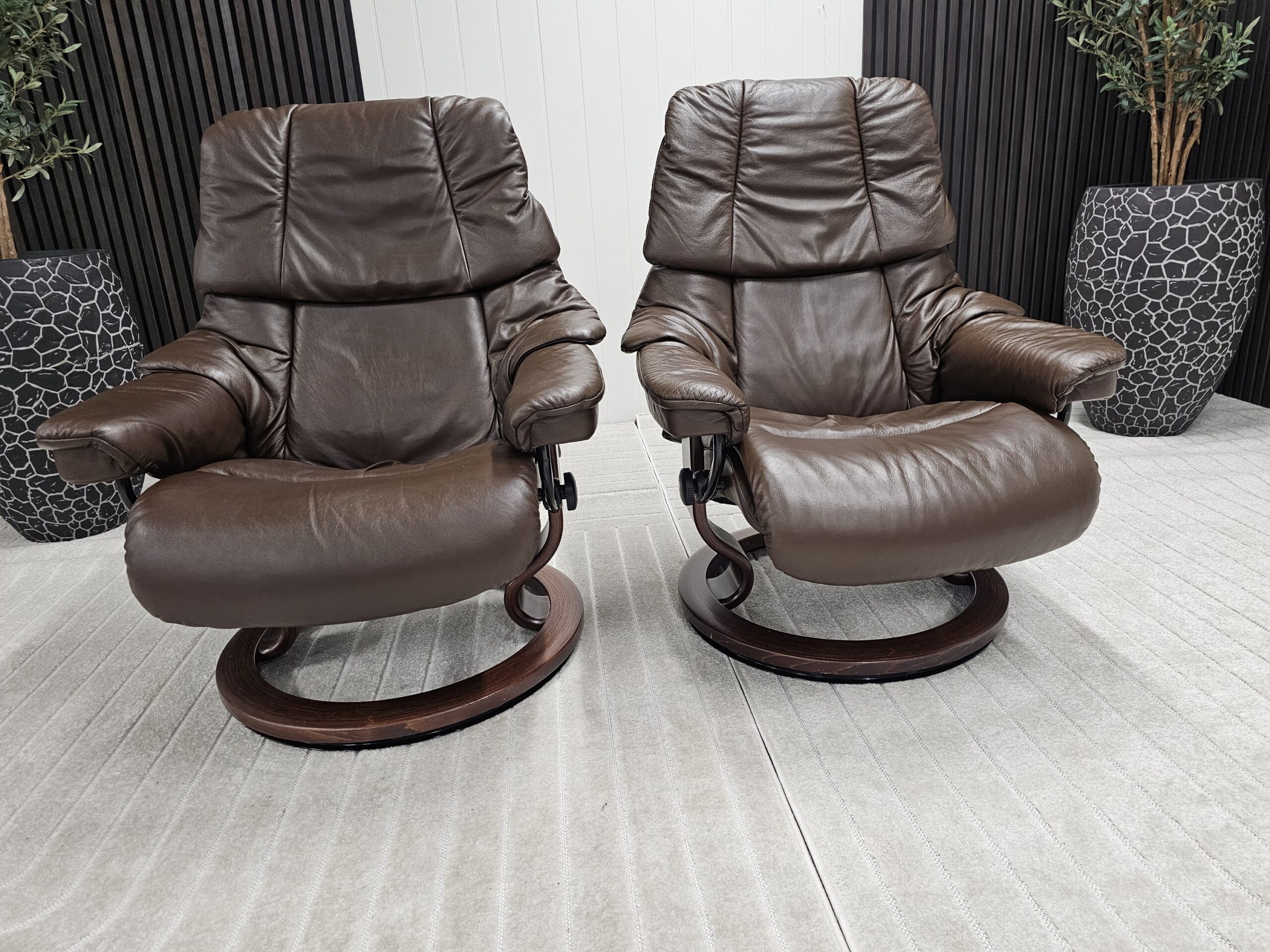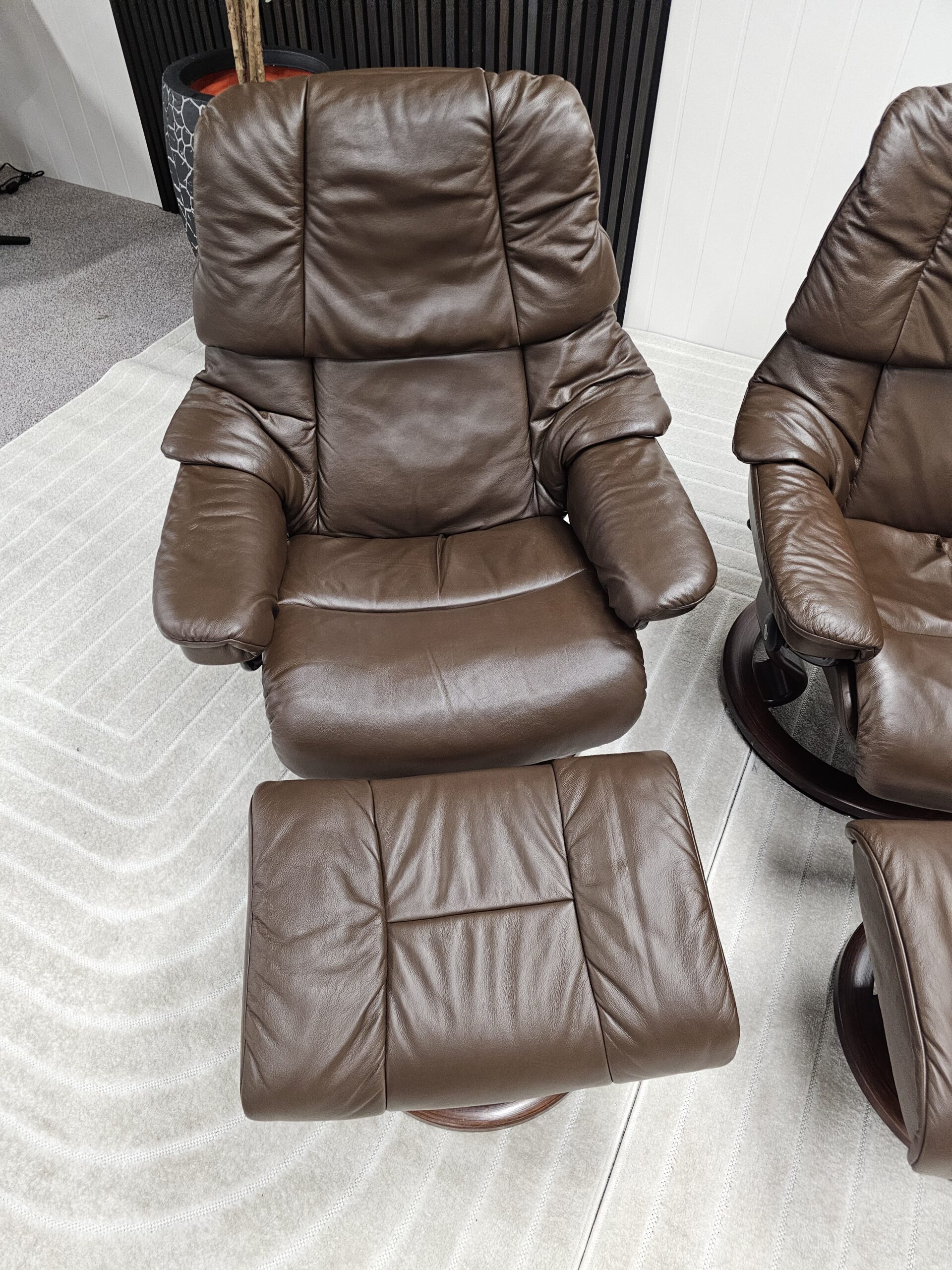 Selger 2 stk. Stressless Reno hvilestoler i størrelse Medium og Small.