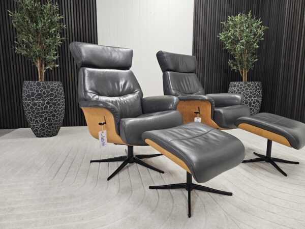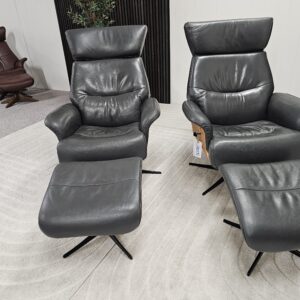 2 stk Top-Line Baron lenestoler med krakk – et eksklusivt norsk kvalitetsprodukt med moderne uttrykk, tidløst design og overlegent håndverk.