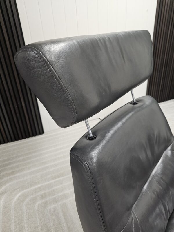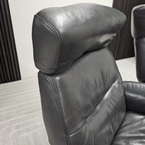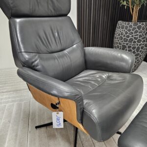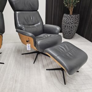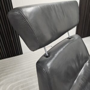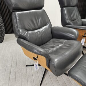Utført i mykt og slitesterkt grå/svart semianilin skinn, kombinert med eikfinerte sider og sort metallunderstell – en estetisk og solid kombinasjon som både ser og føles premium.