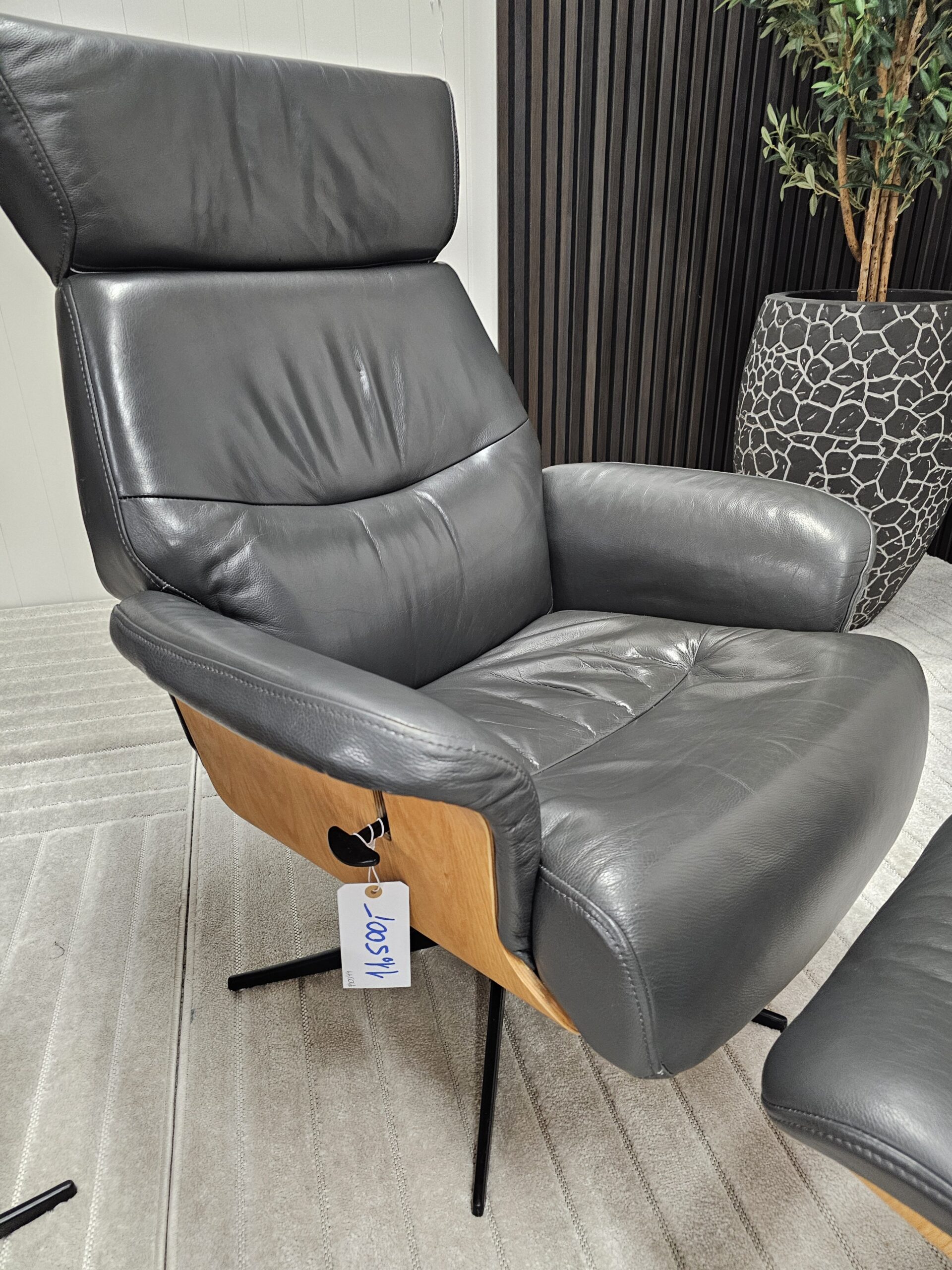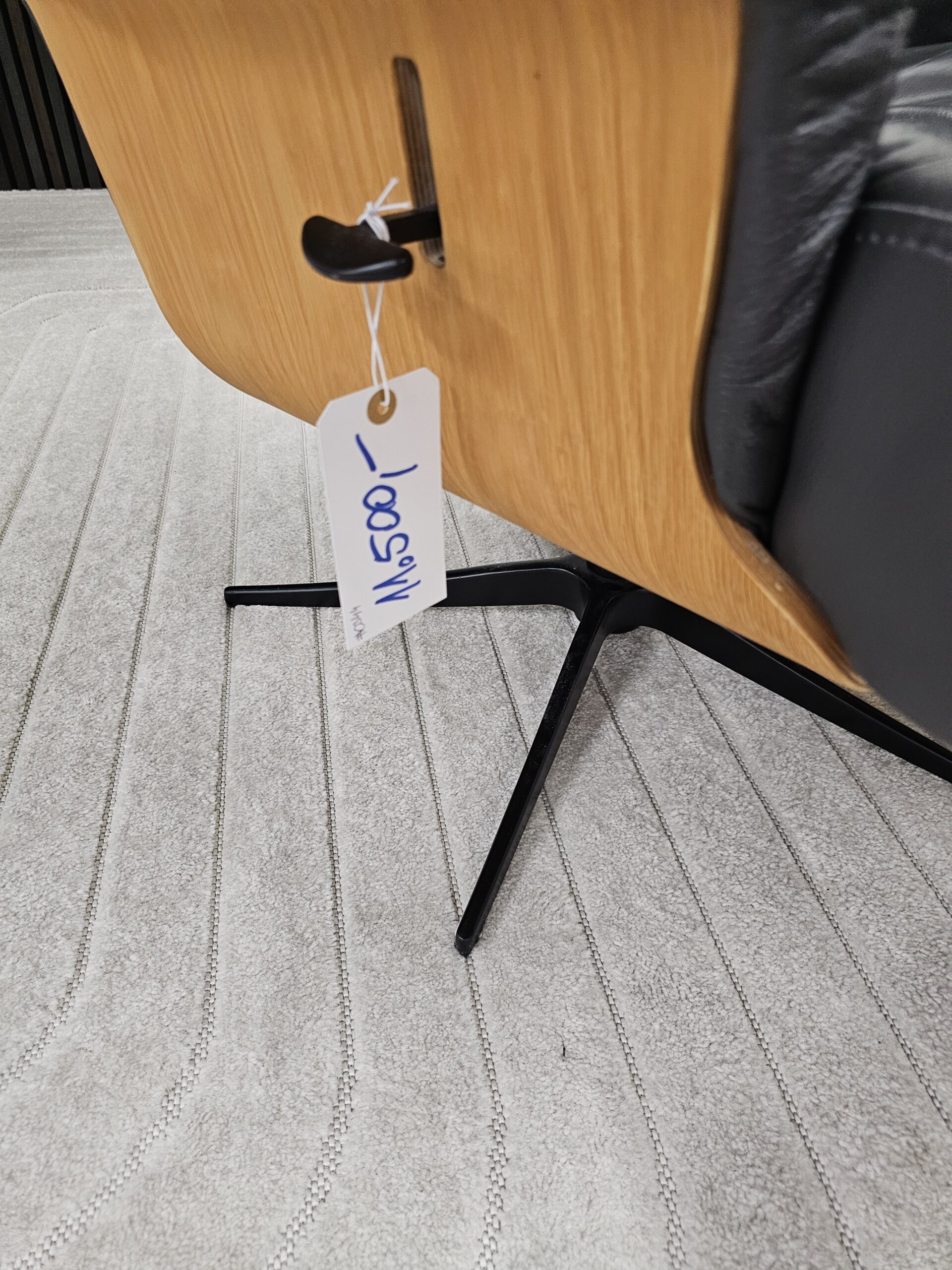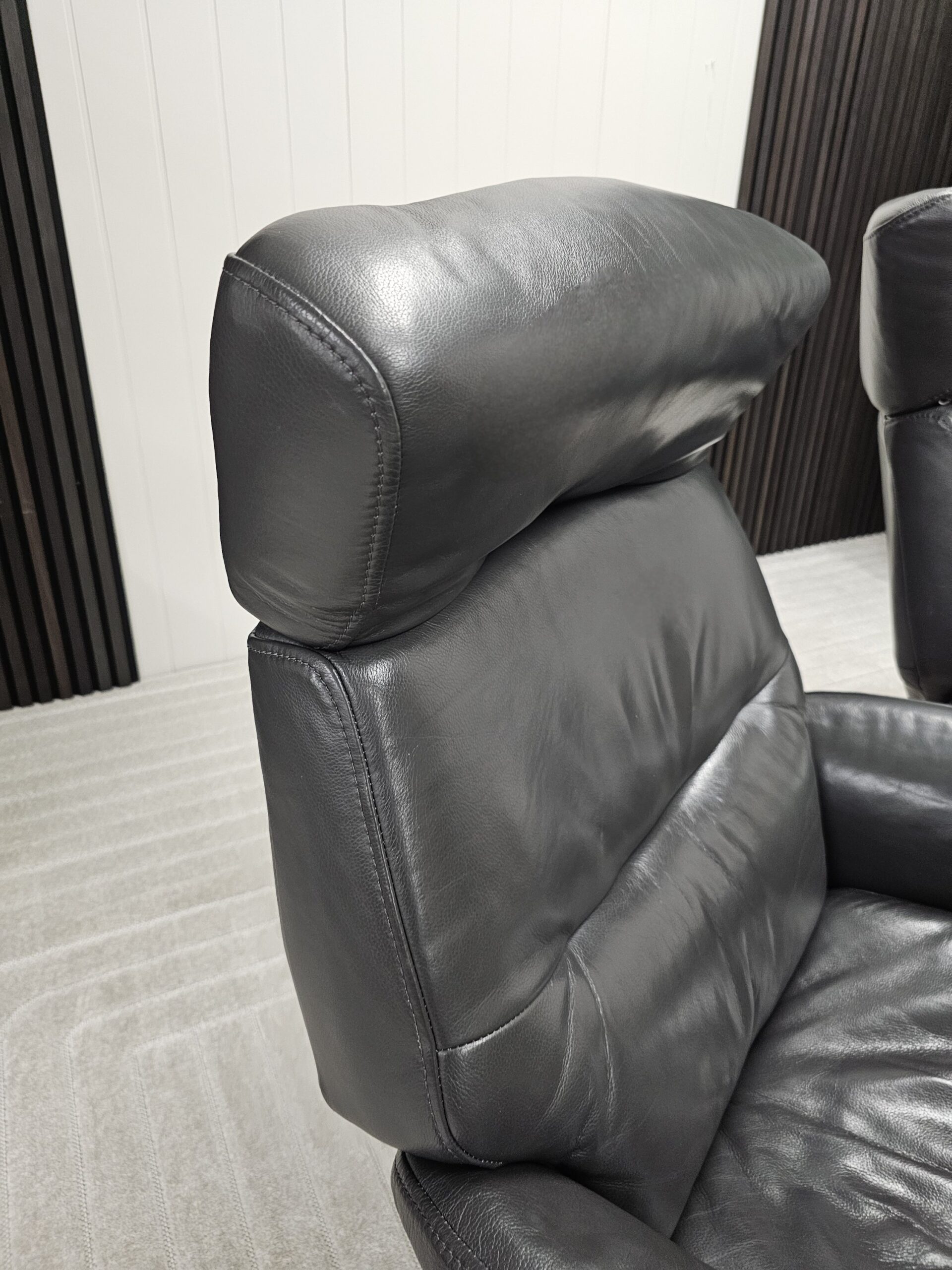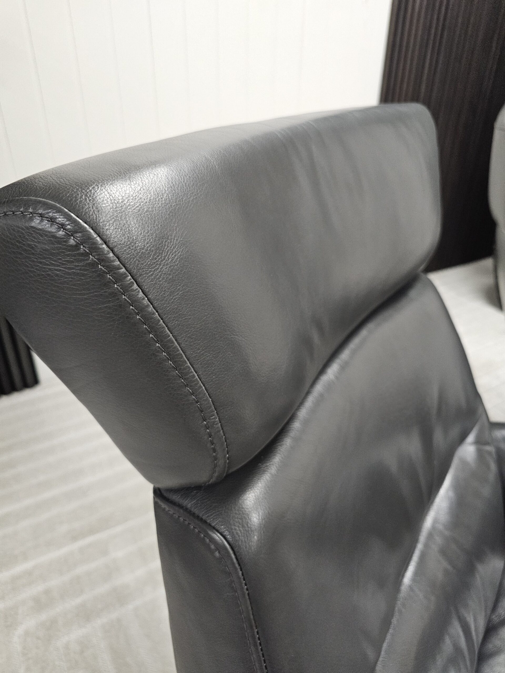 Utført i mykt og slitesterkt grå/svart semianilin skinn, kombinert med eikfinerte sider og sort metallunderstell – en estetisk og solid kombinasjon som både ser og føles premium.