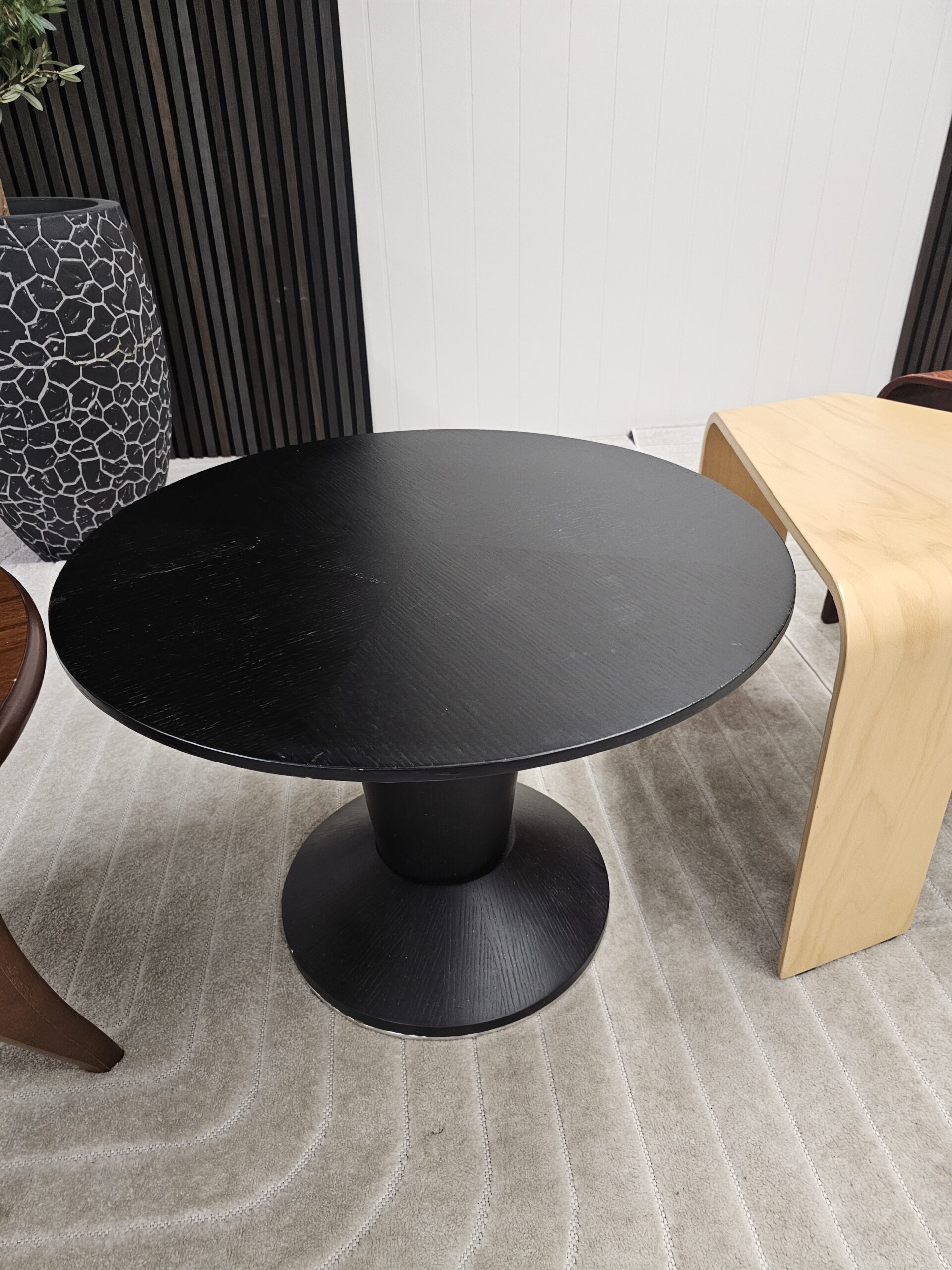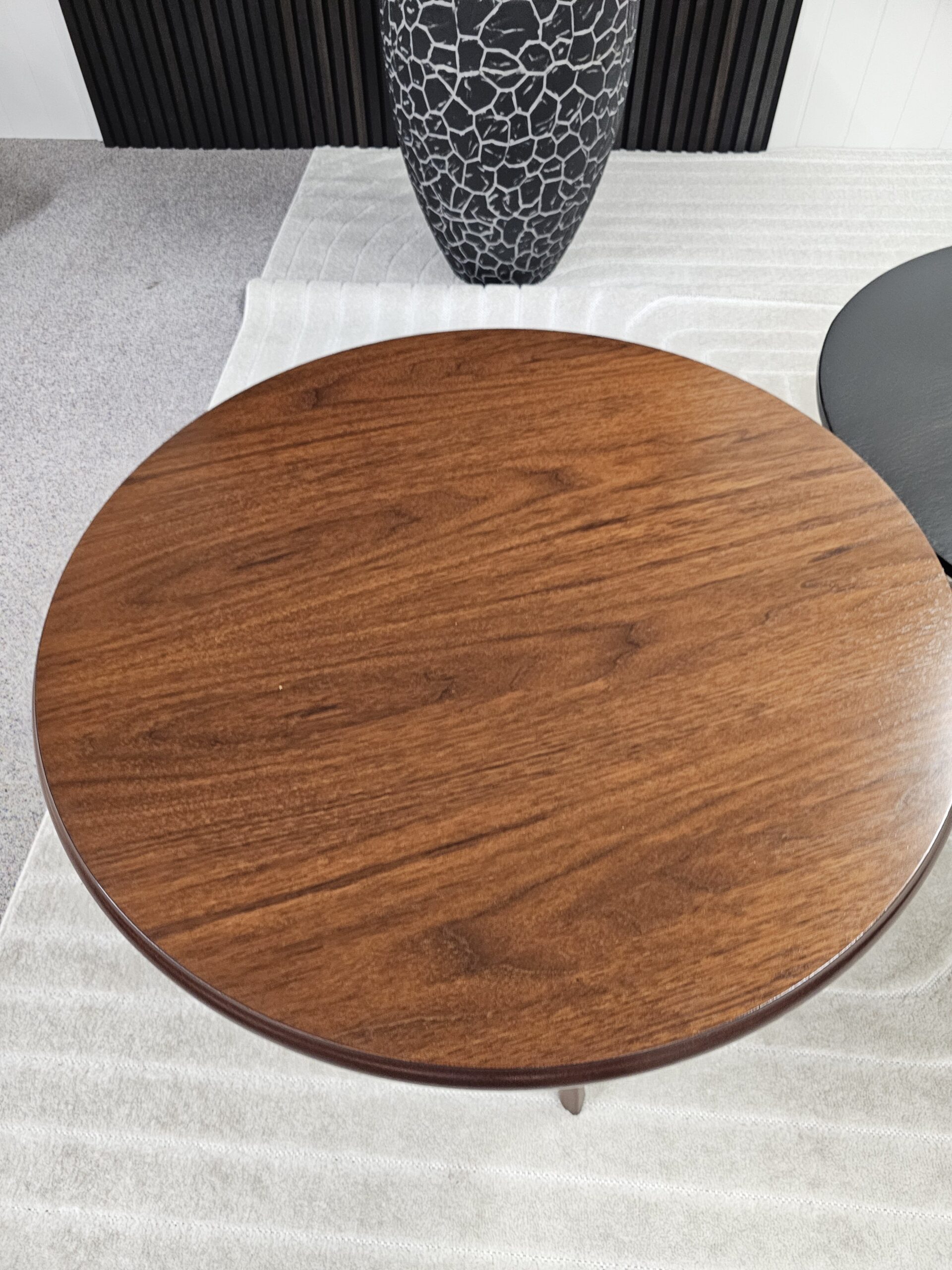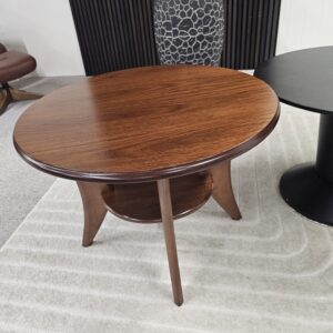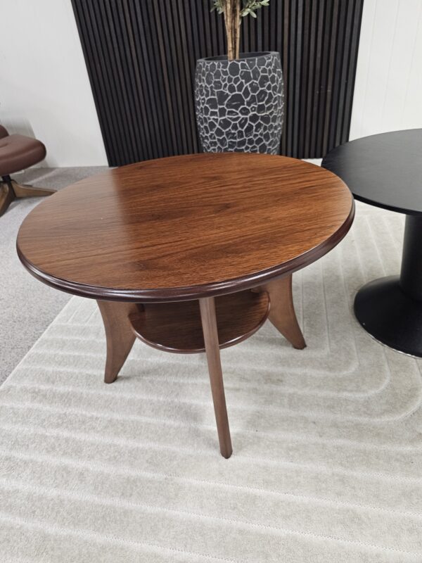 •Mørk valnøtt rundt bord med hylle (Brunstad)