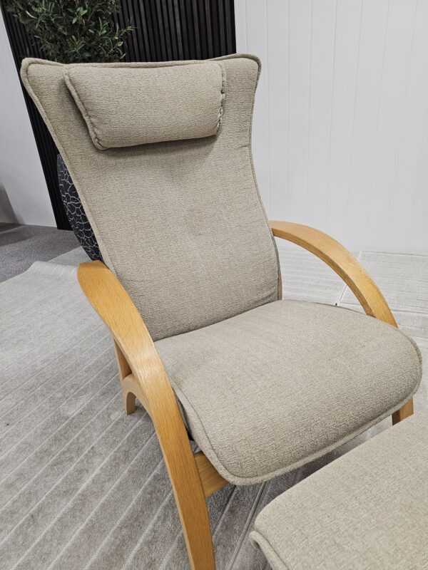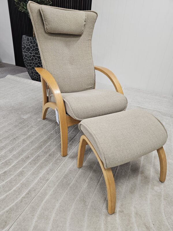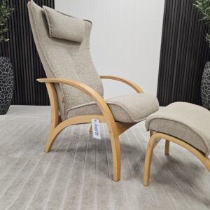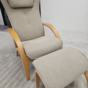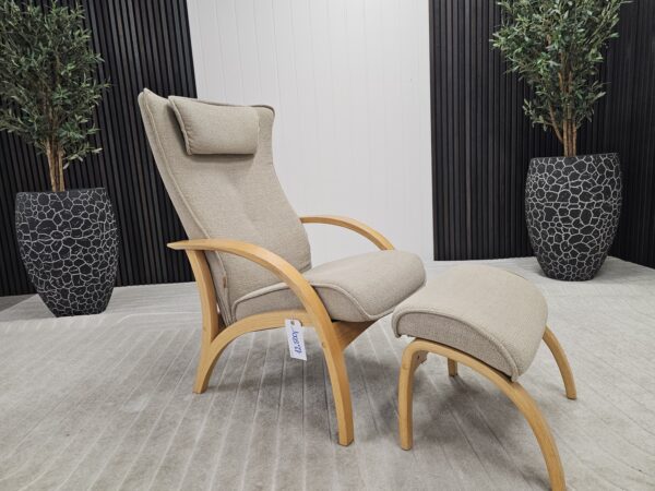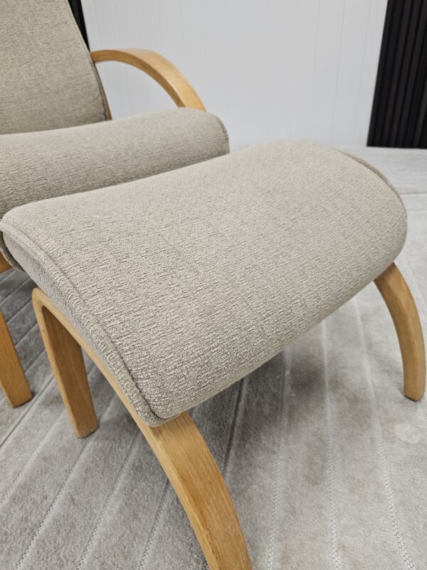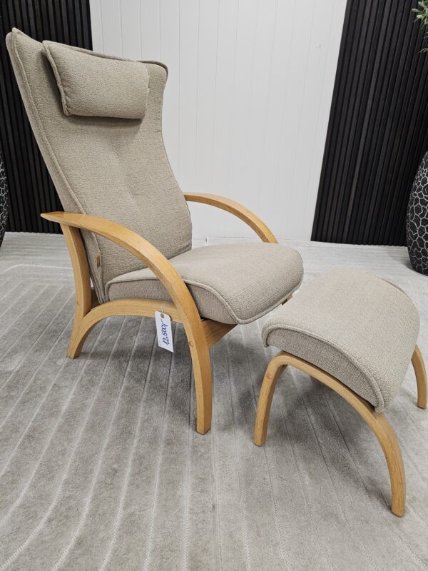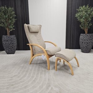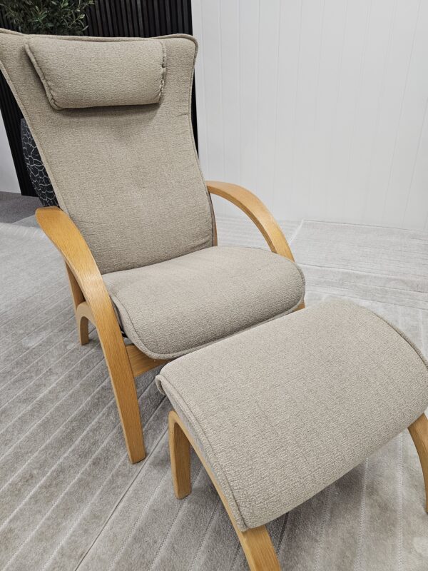 Selger en elegant Brunstad Delta Adventure lenestol med tilhørende krakk i flott og tidløs kombinasjon: