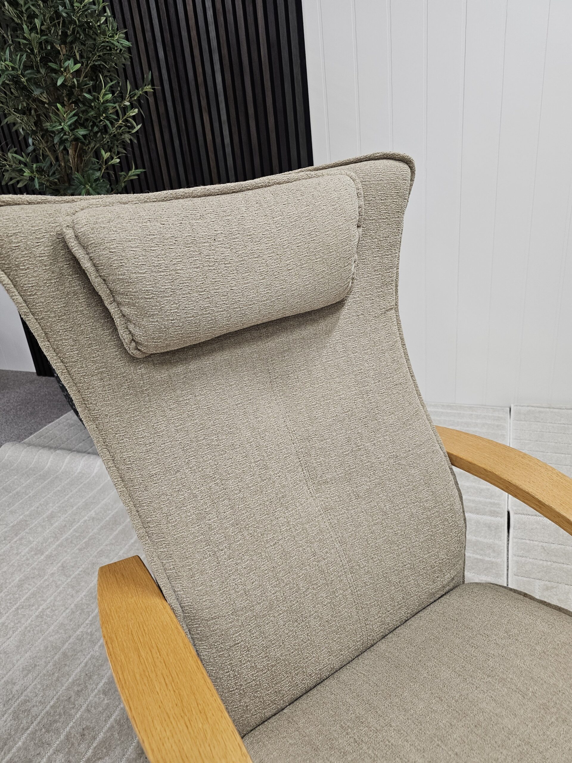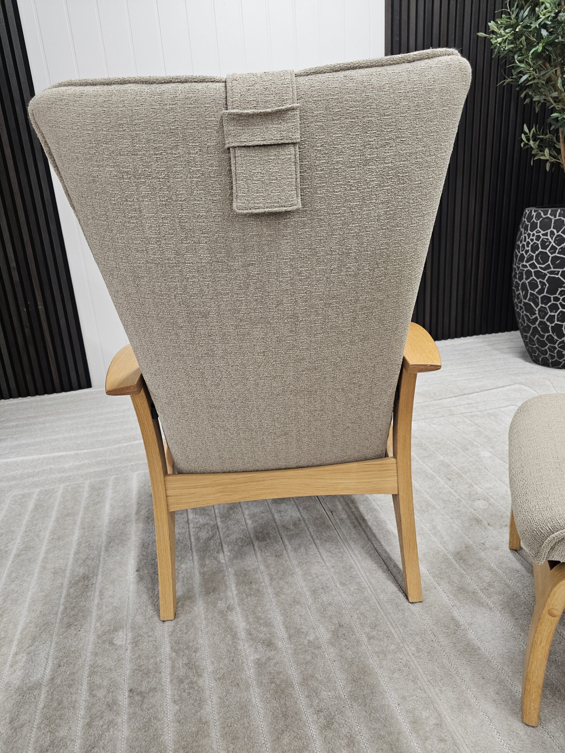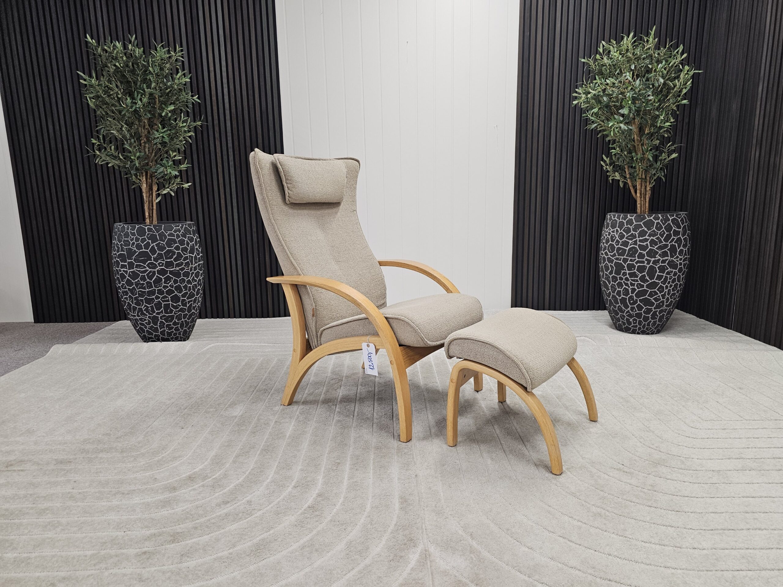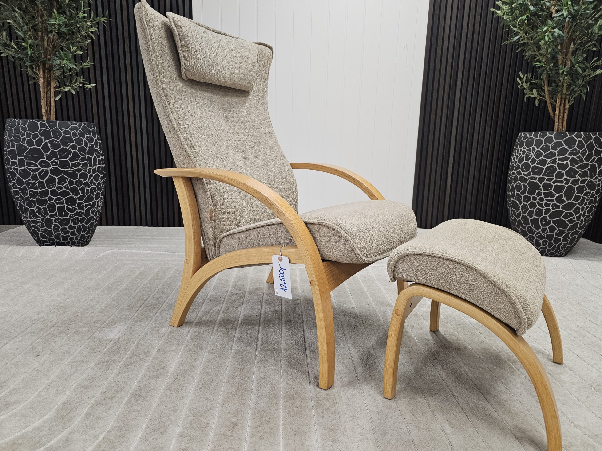 Selger en elegant Brunstad Delta Adventure lenestol med tilhørende krakk i flott og tidløs kombinasjon: