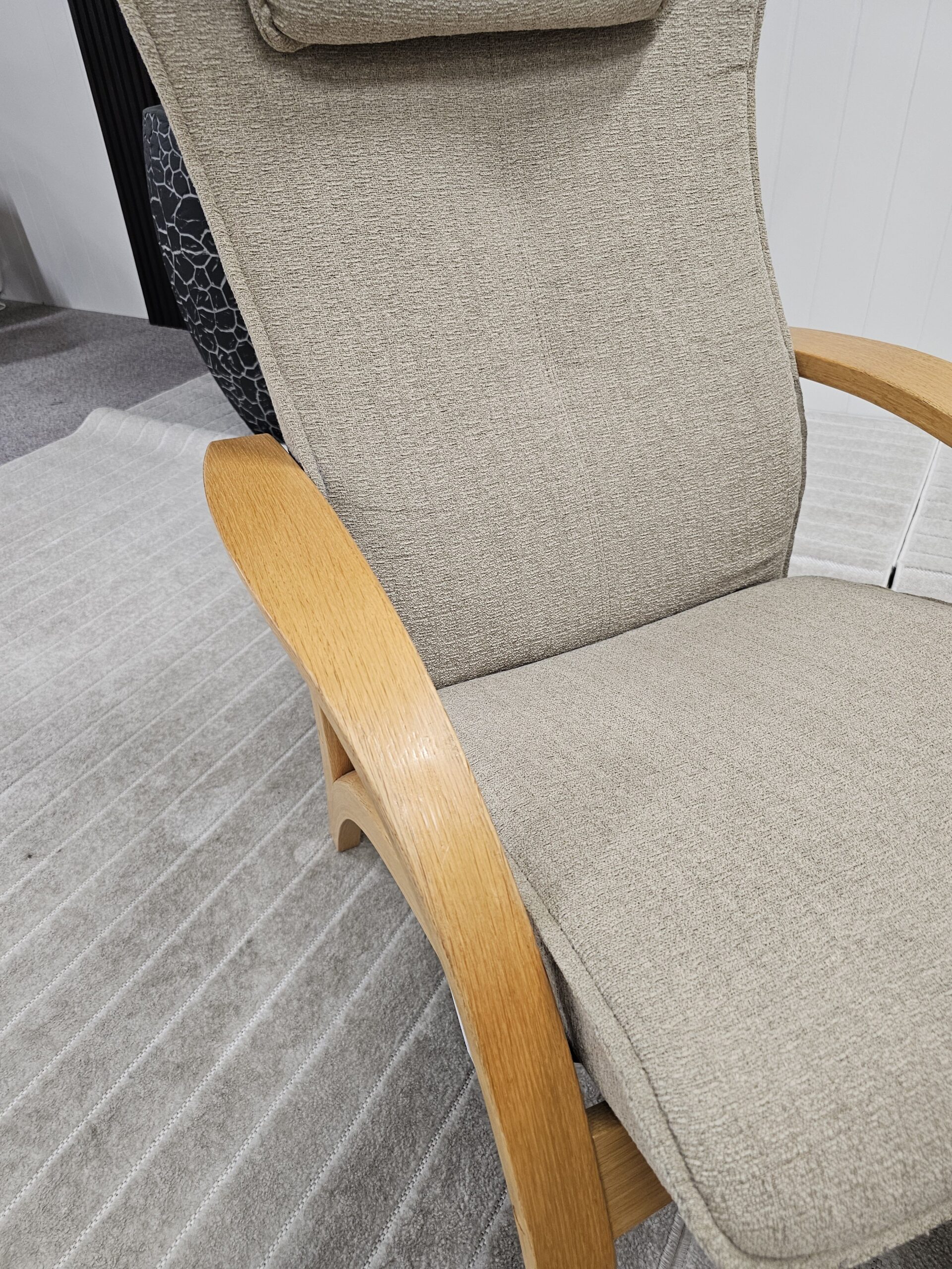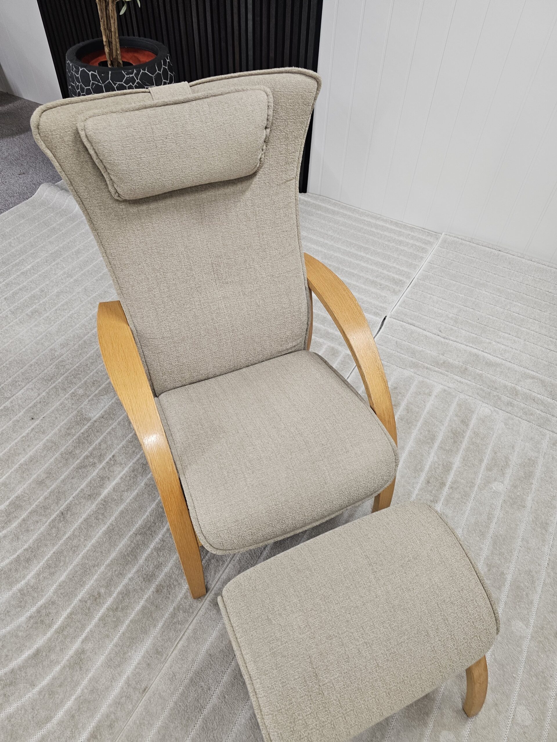 Stolen er lite brukt og fremstår i svært god stand – både stolen og krakken er godt vedlikeholdt og klare til bruk i mange år fremover.
