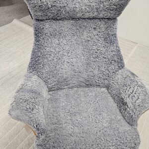 Trukket i mykt og slitesterkt grått fåreskinn. Understell i heltre eik med 360 svingfunksjon gir både stabilitet og fleksibilitet.