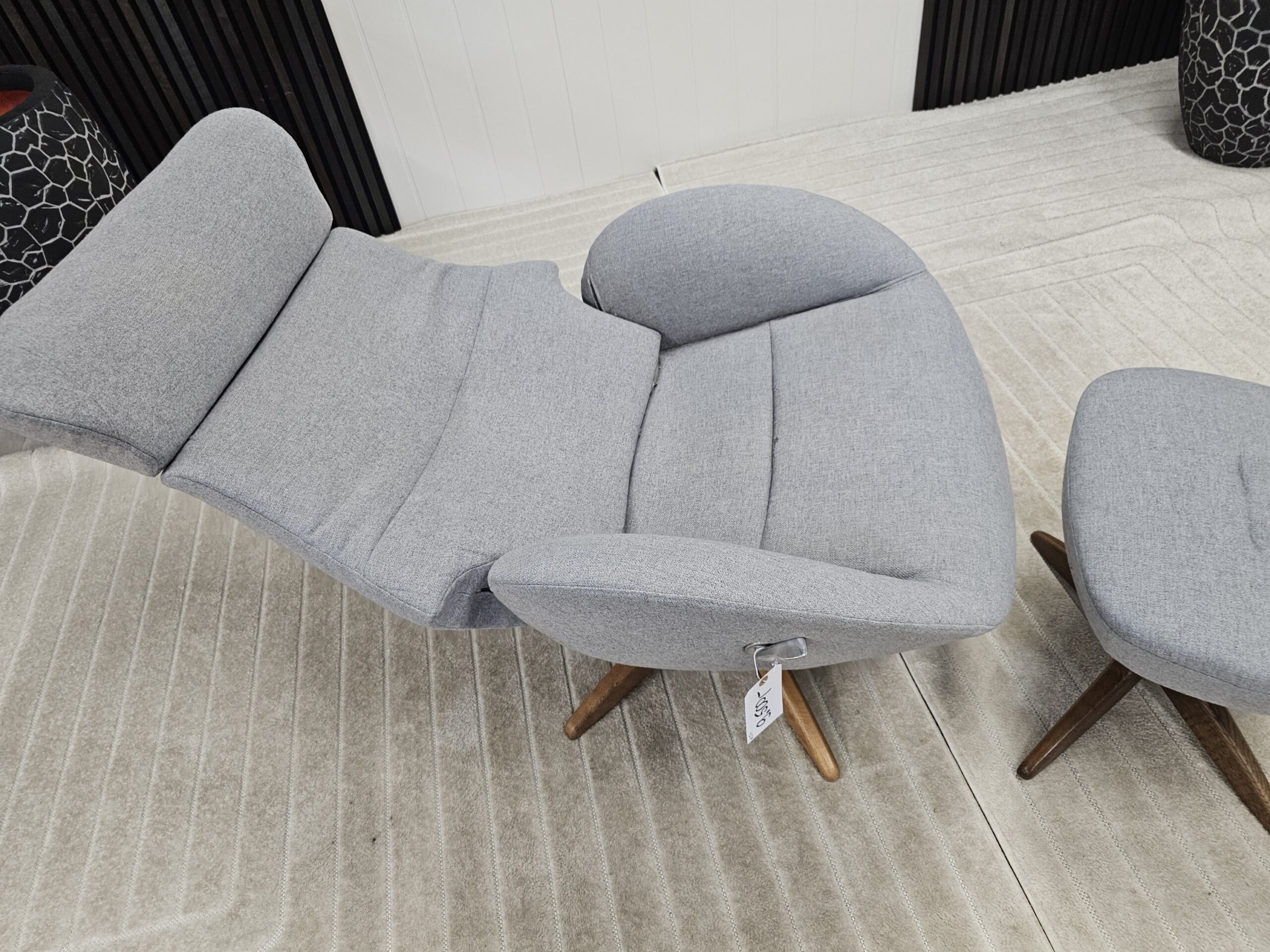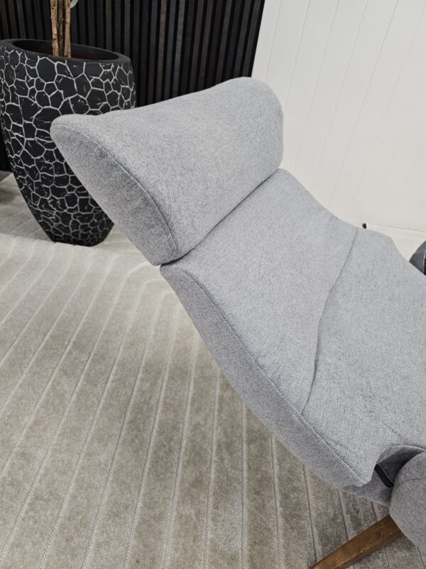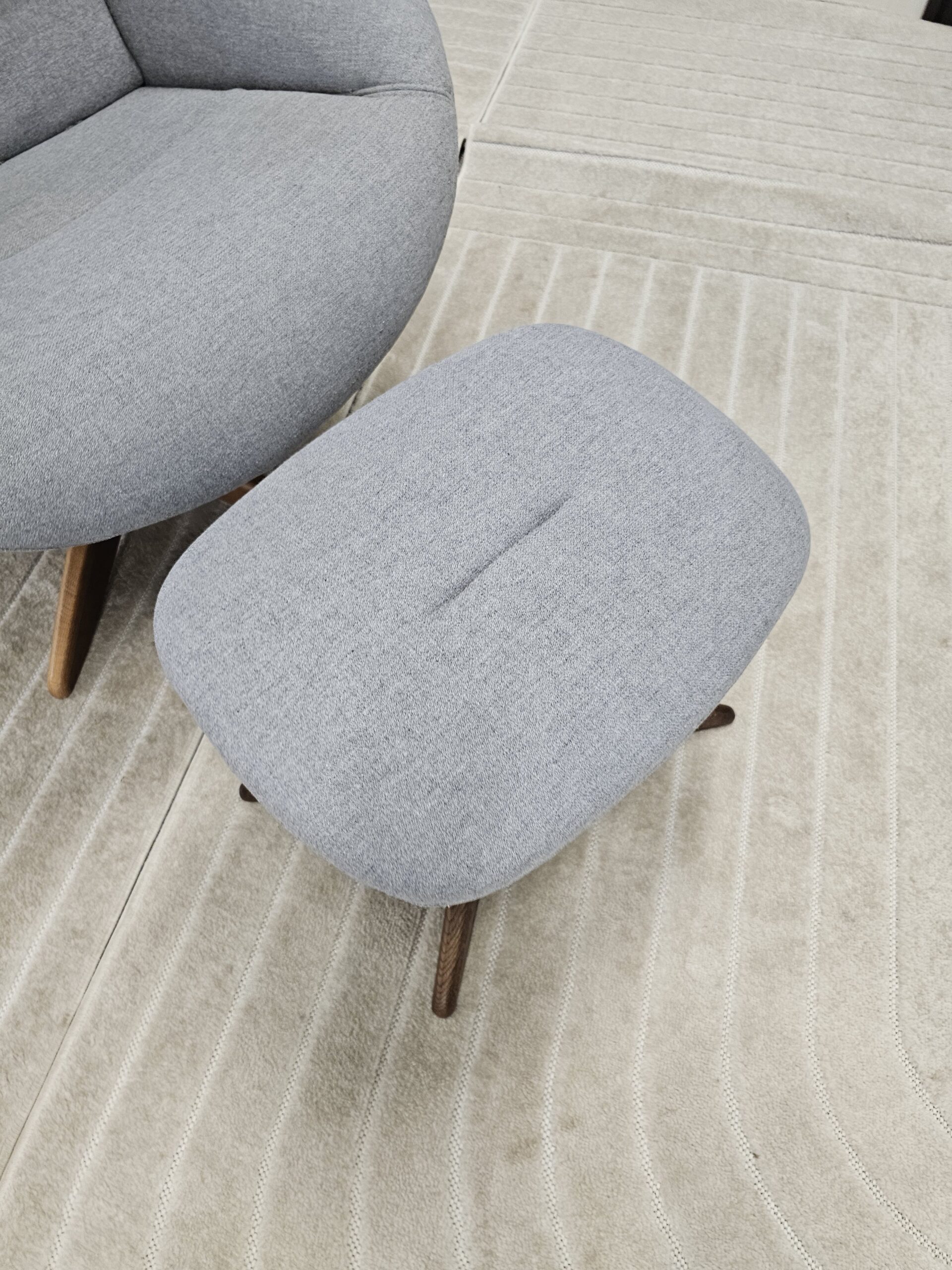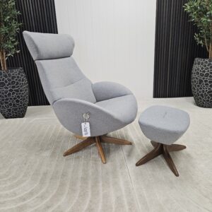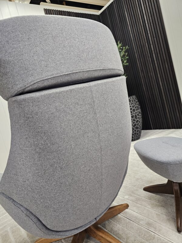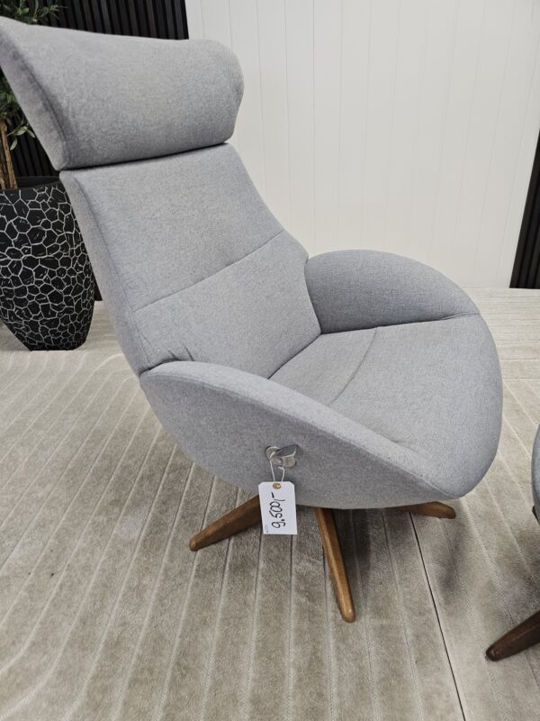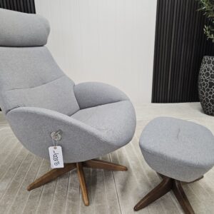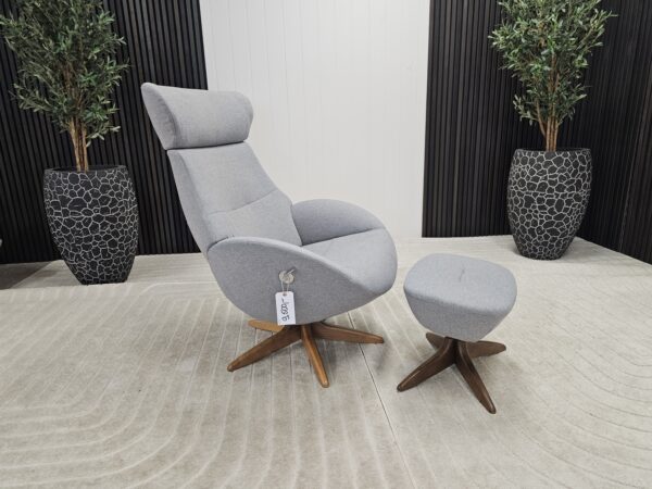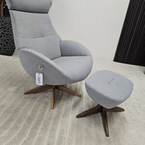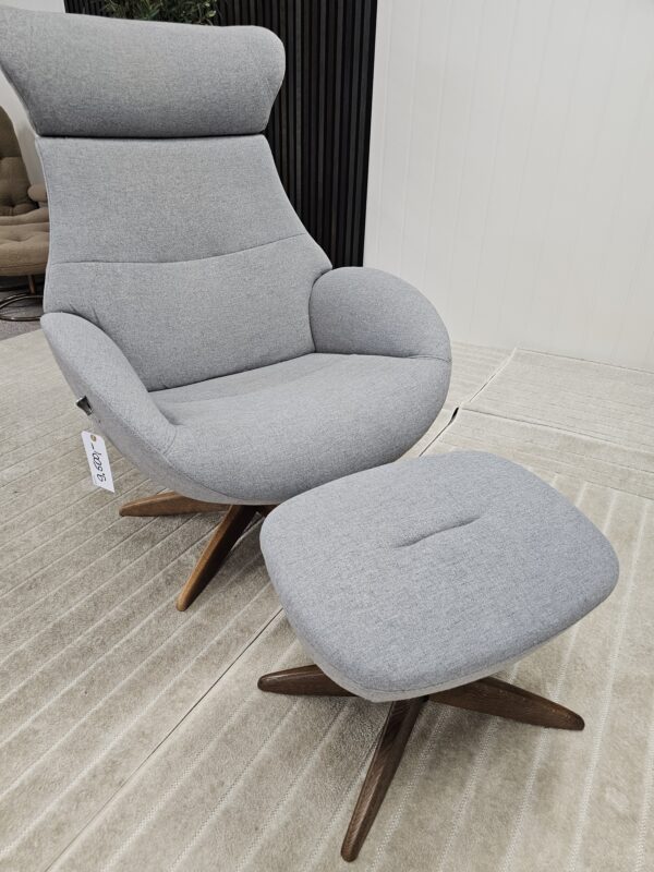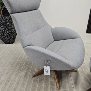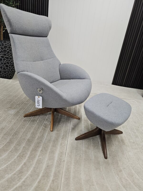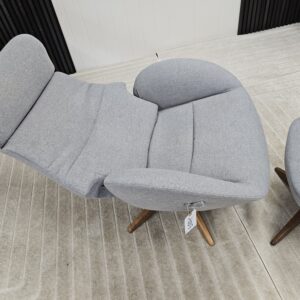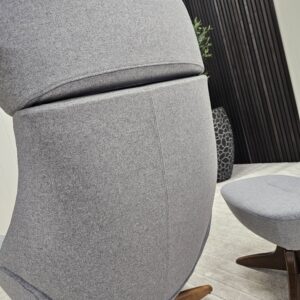 Conform Globe lenestol med krakk – Tekstil Evita grå. Valnøtt understell.