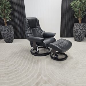 Møblerking presenterer: Stressless® Live (Medium) – Paloma Black skinn, svart beiset Classic understell.