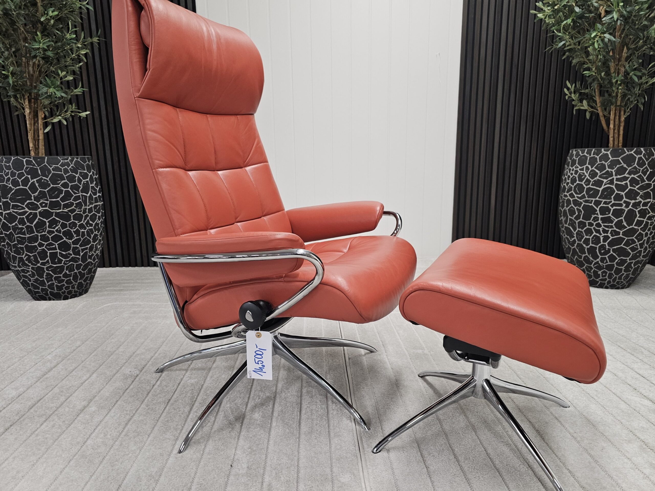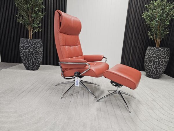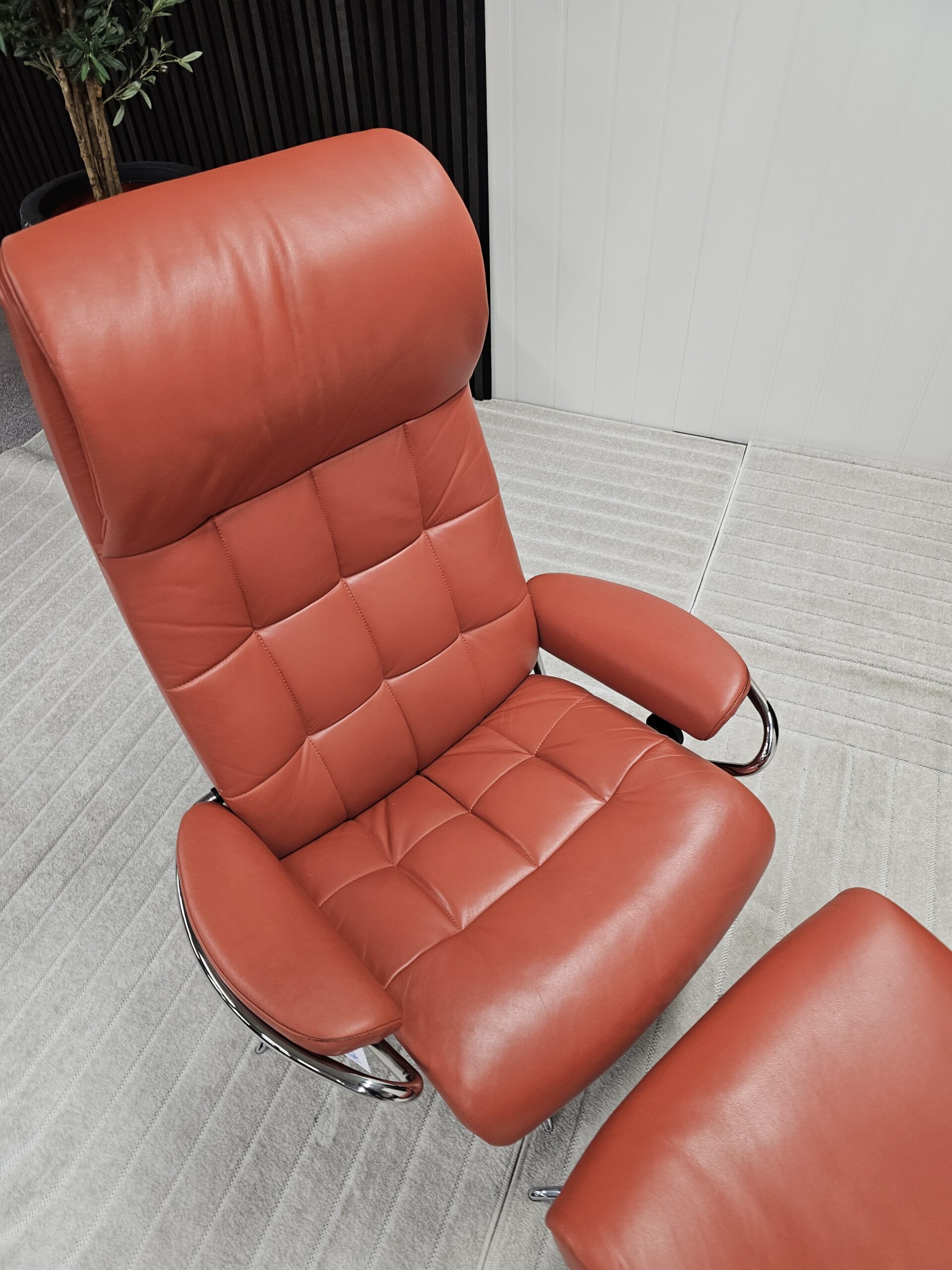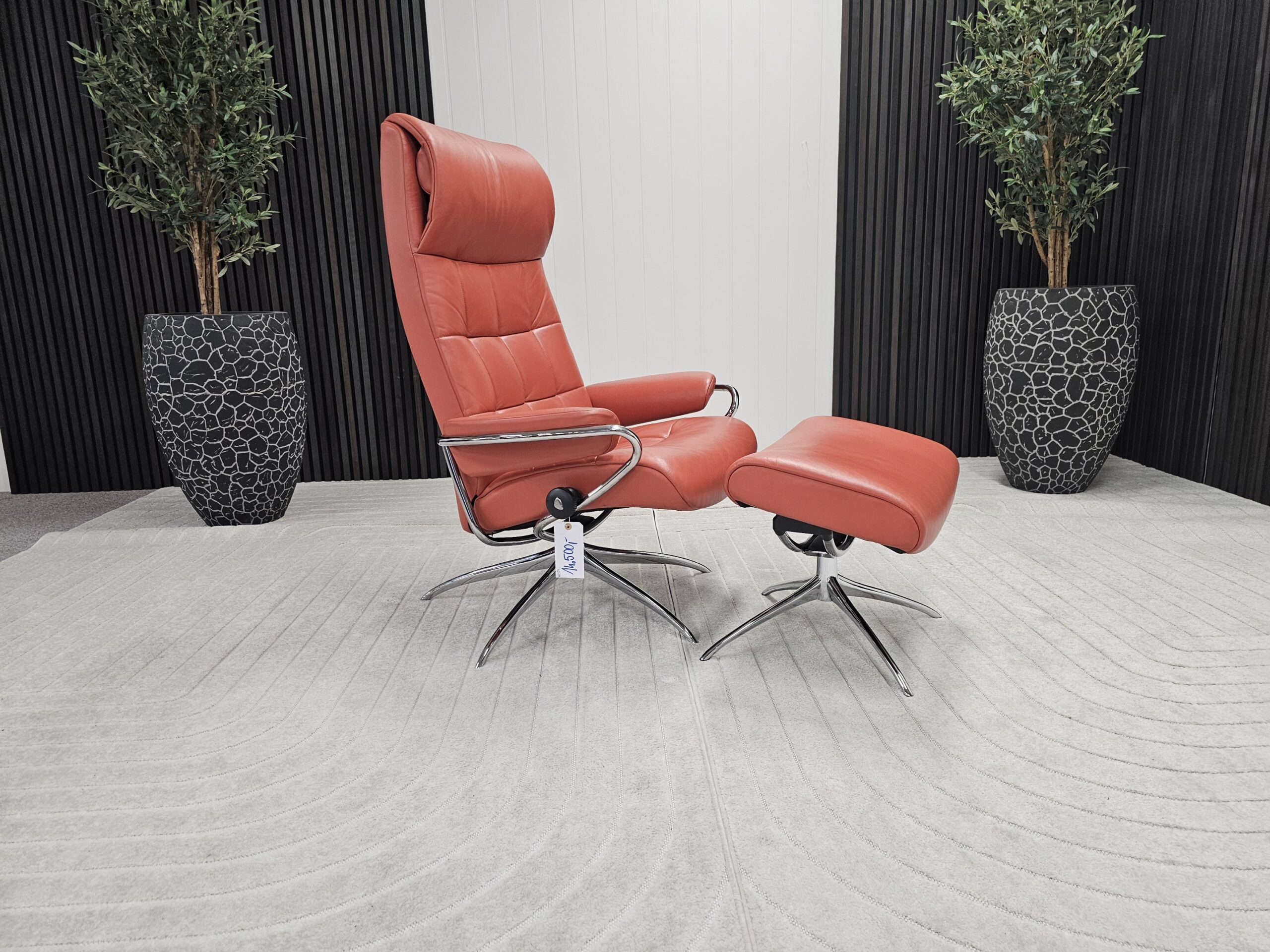 Stressless® London Høyrygg med krakk – Paloma Henna skinn, Chrome understell