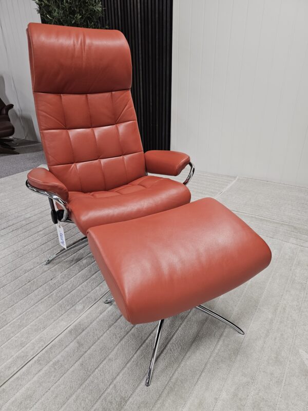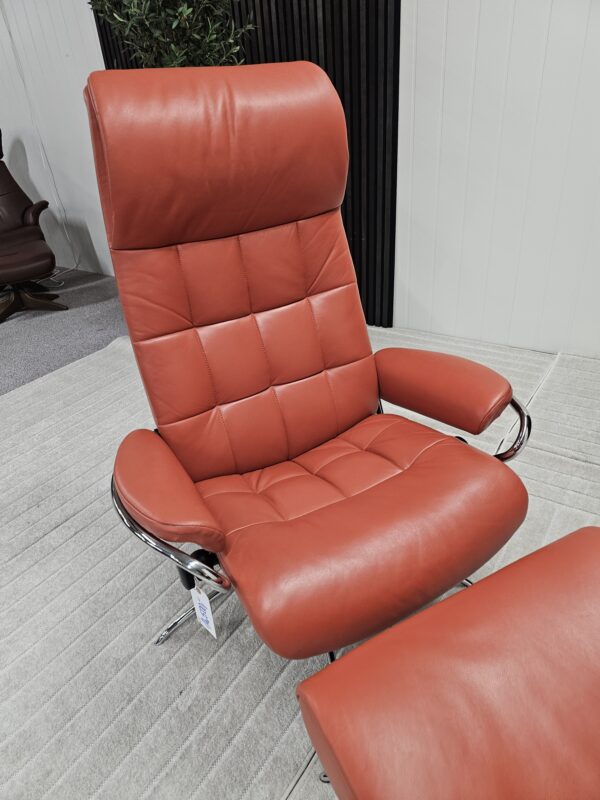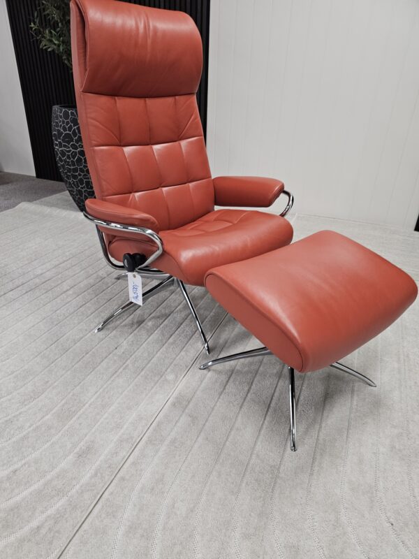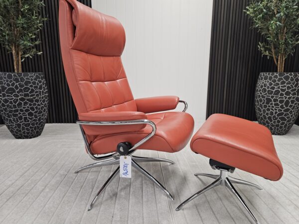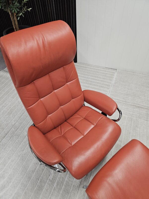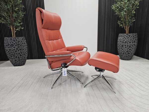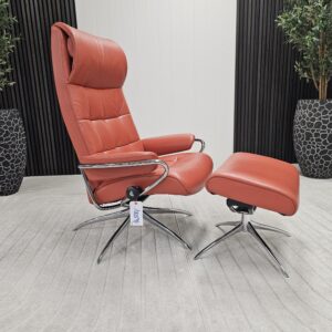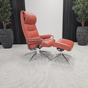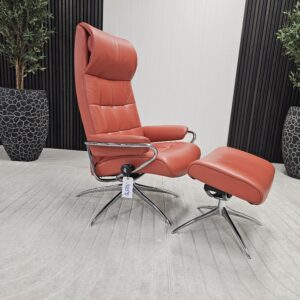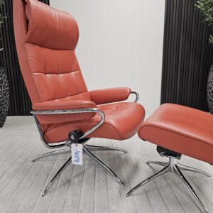 Stressless® London Høyrygg med krakk – Paloma Henna skinn, Chrome understell