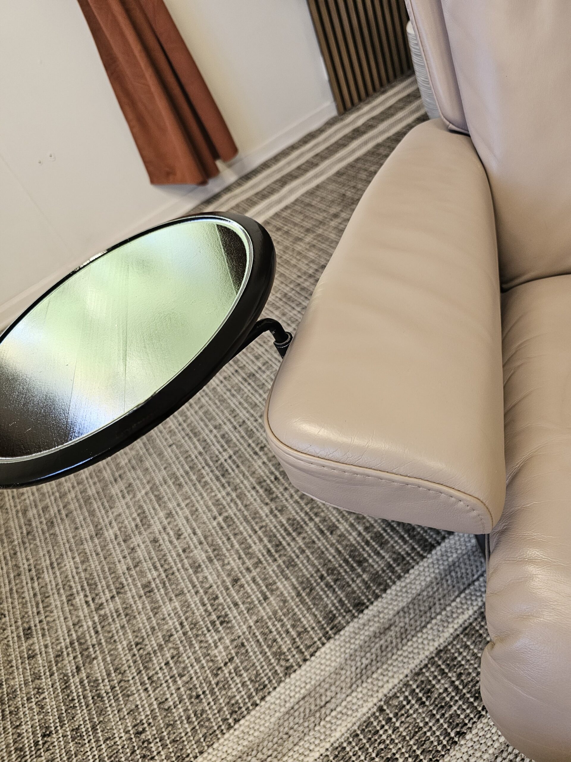 -Tilstand: God stand, mekanisme og understell fungerer perfekt. Skinn har normalt preg av bruk, men fremstår helhetlig pent.