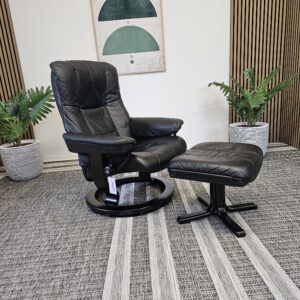 Møblerking presenterer: Stressless® Mayfair Medium – Paloma Black skinn, understell svart beis.
