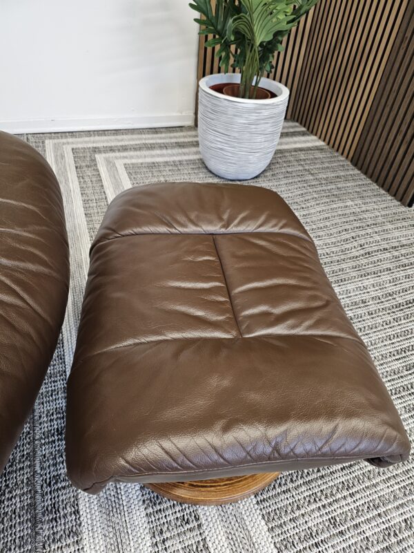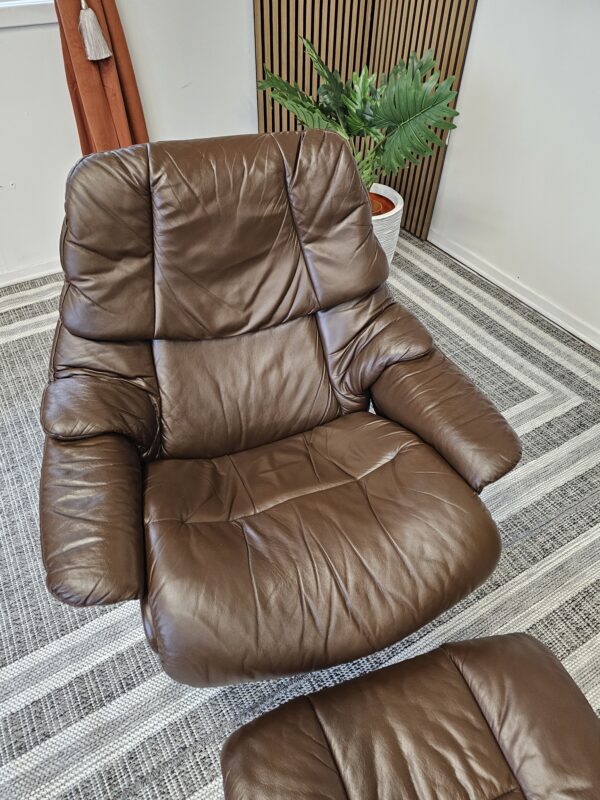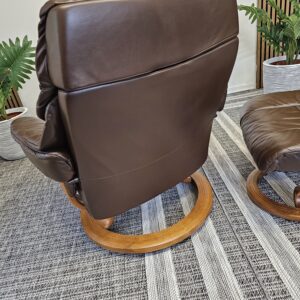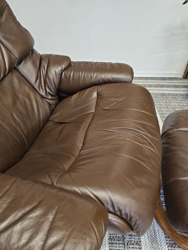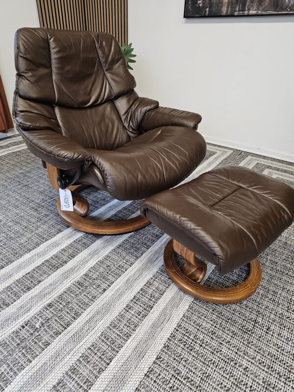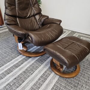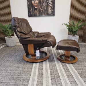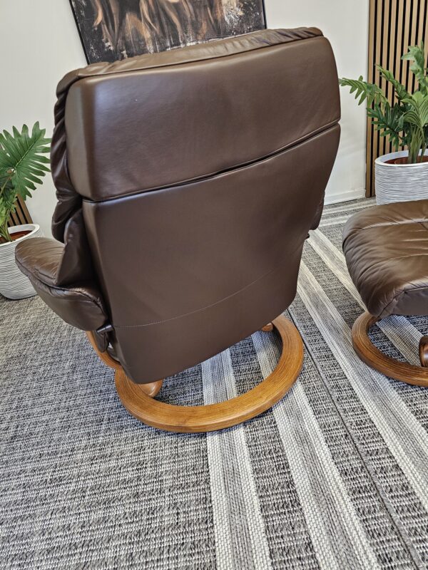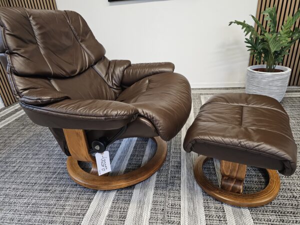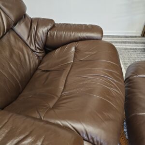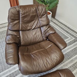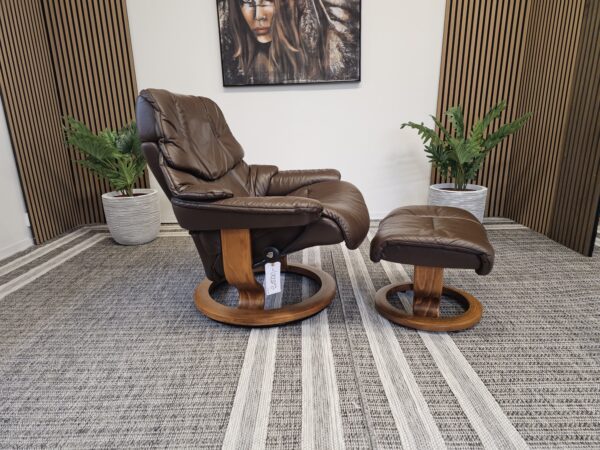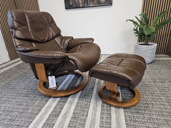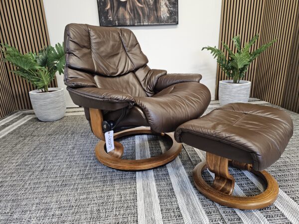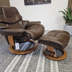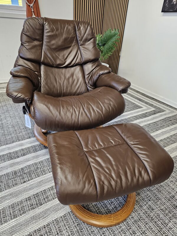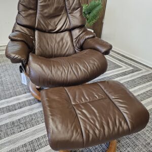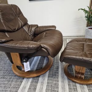 Stressless® Reno (L) m/krakk – Paloma Chocolate skinn – Classic understell (Teak beiset)