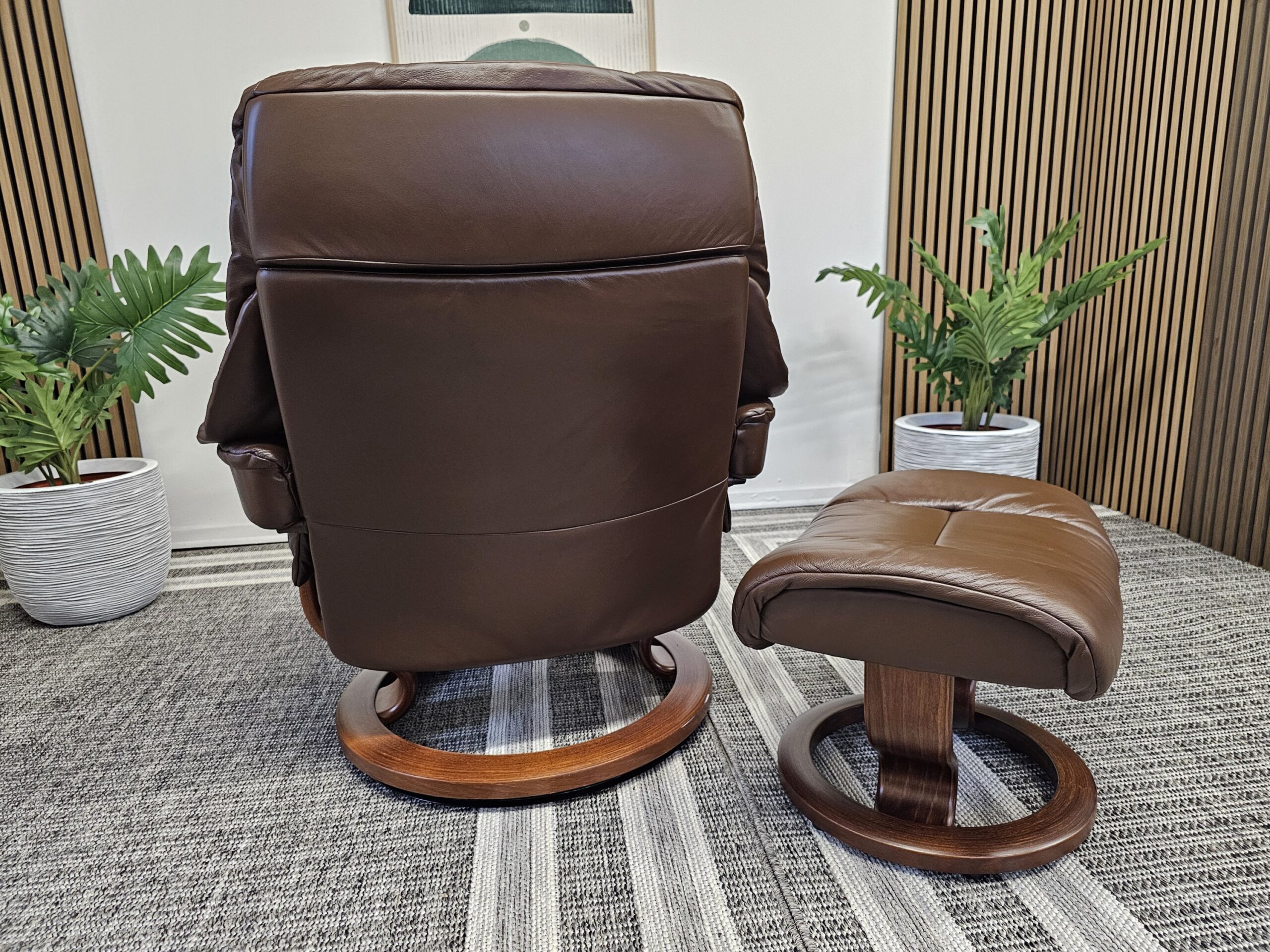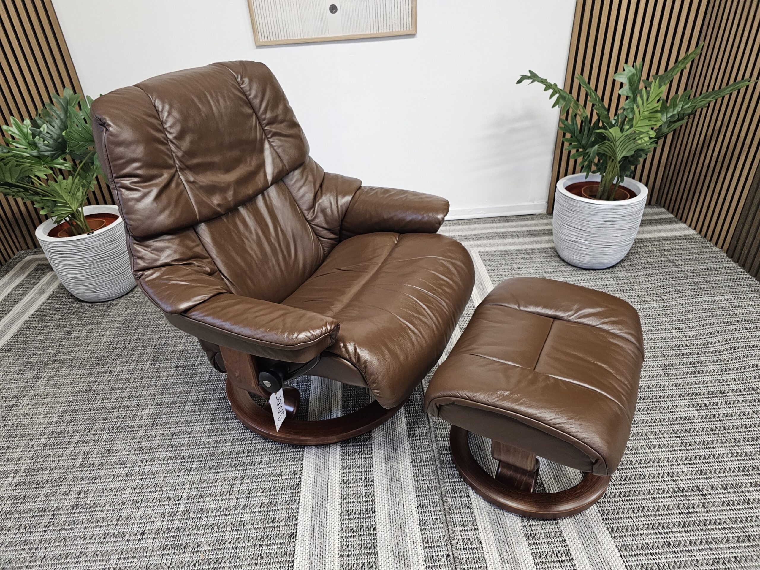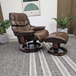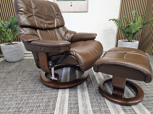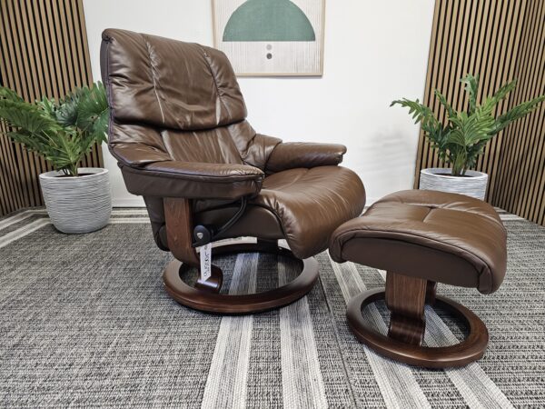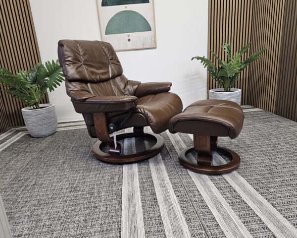 Stressless® Reno (L) m/krakk – Paloma Chocolate skinn – Classic understell (brun beiset)