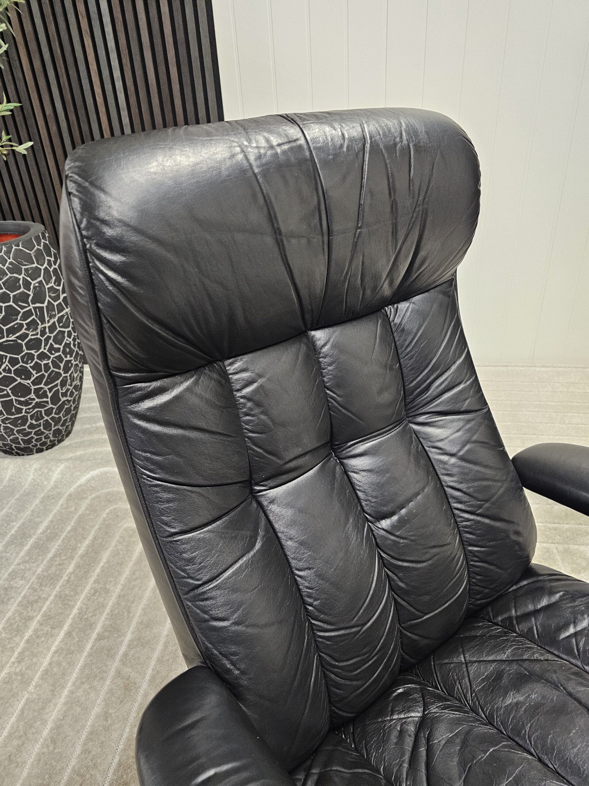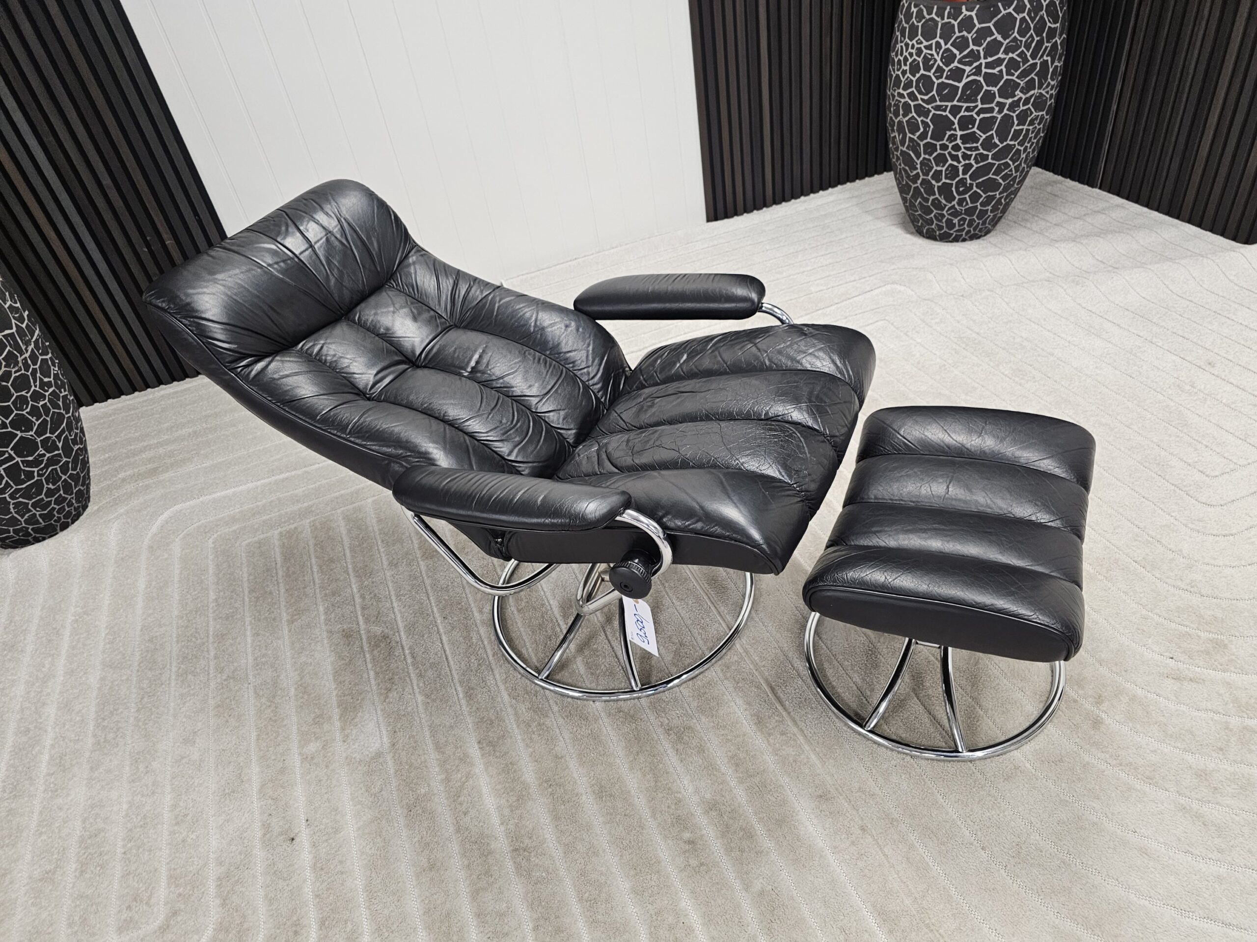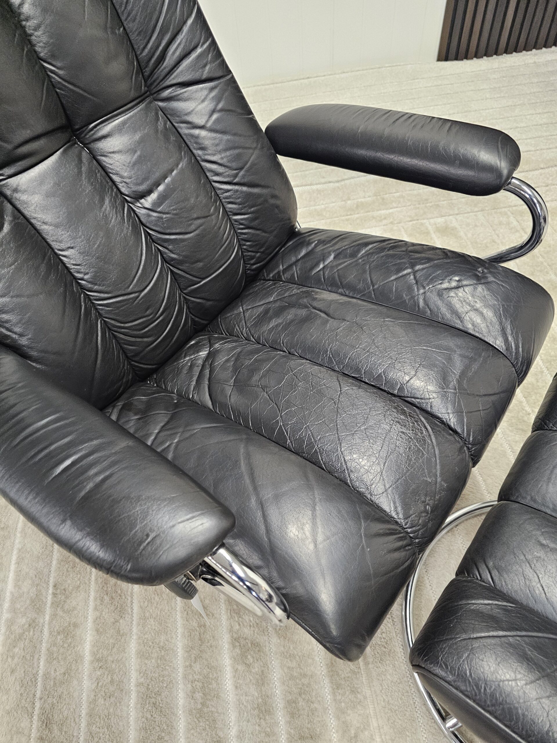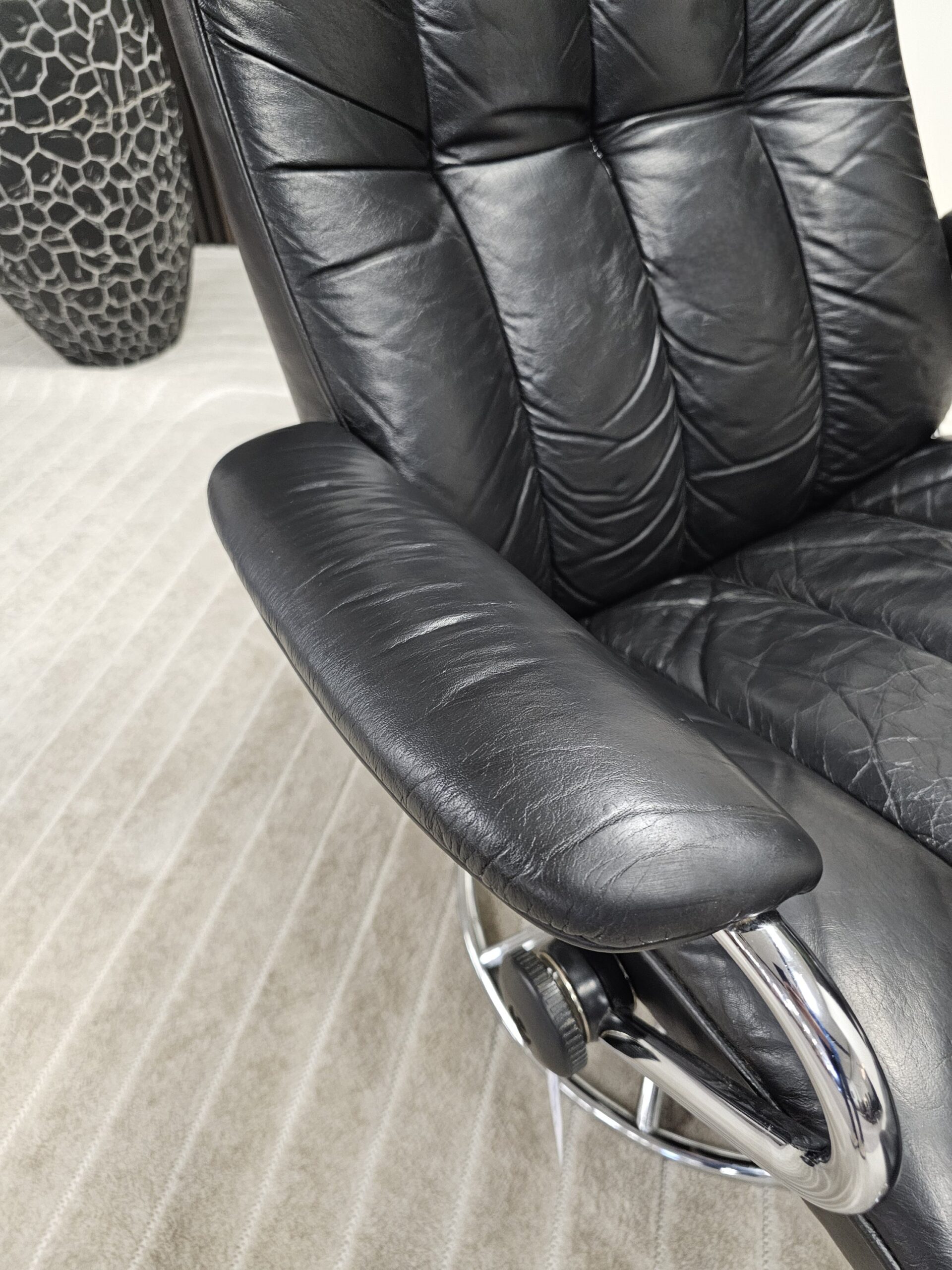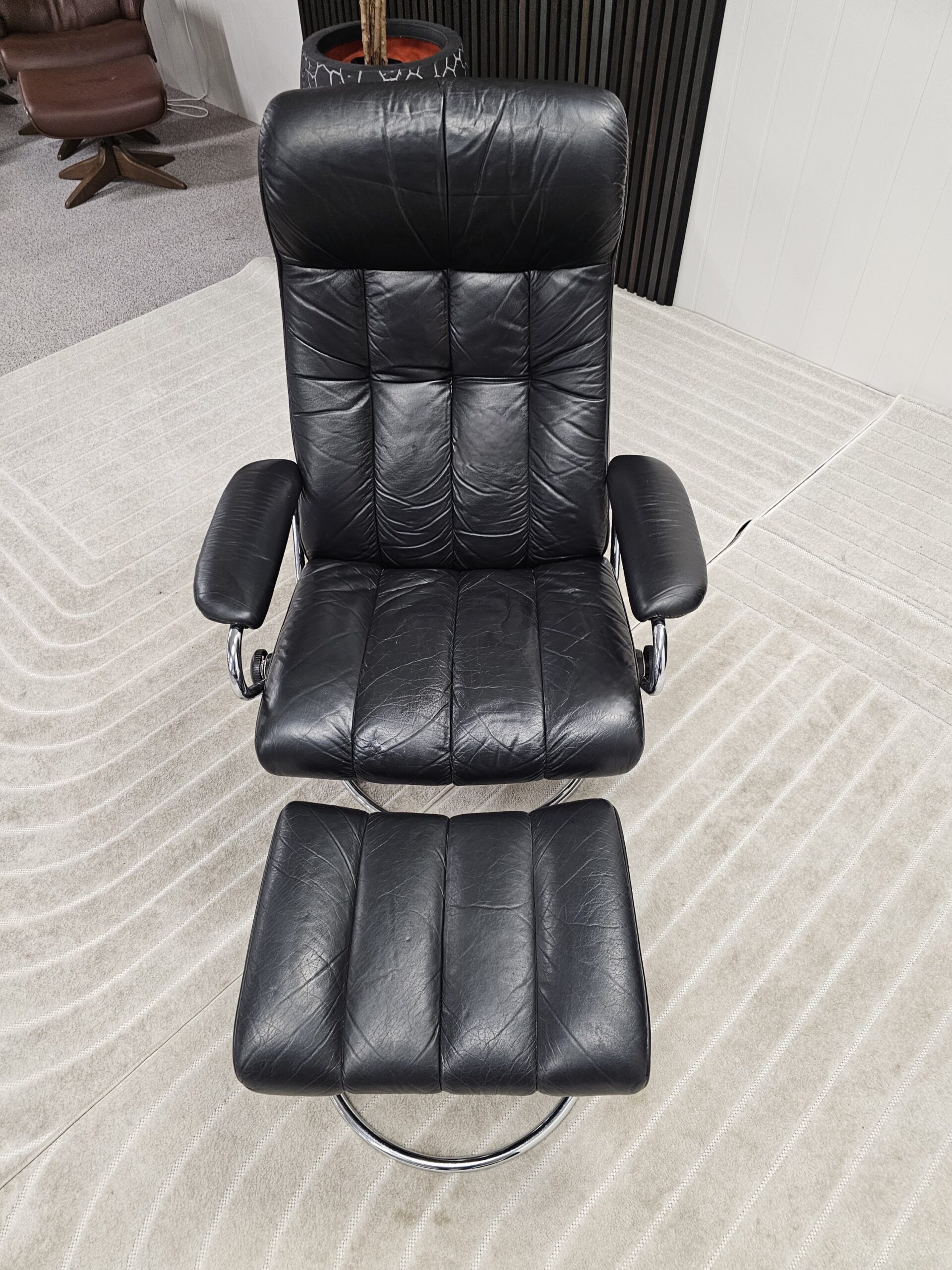 Original Ekornes Stressless Golf lenestol – ekte svart skinn, kromm understell