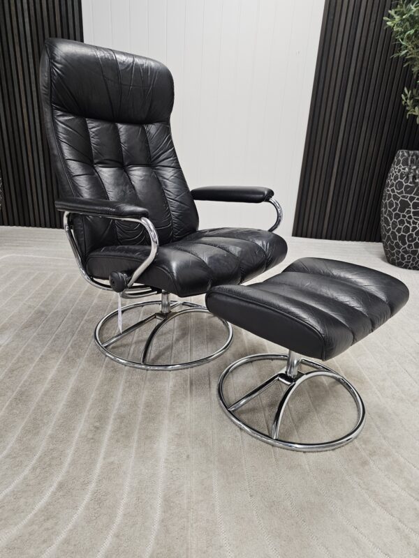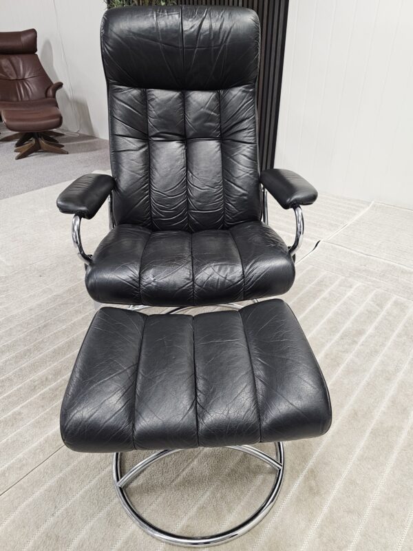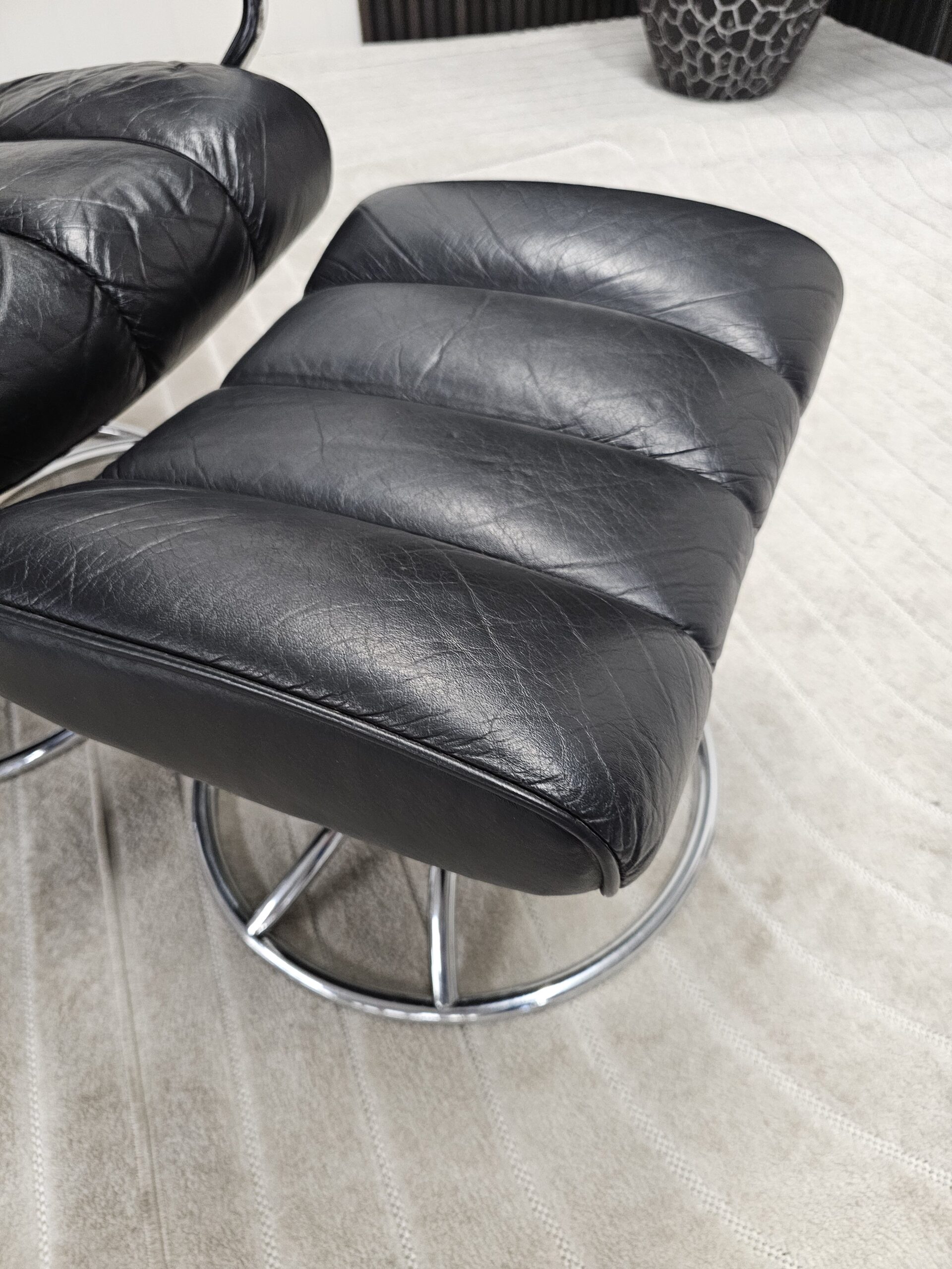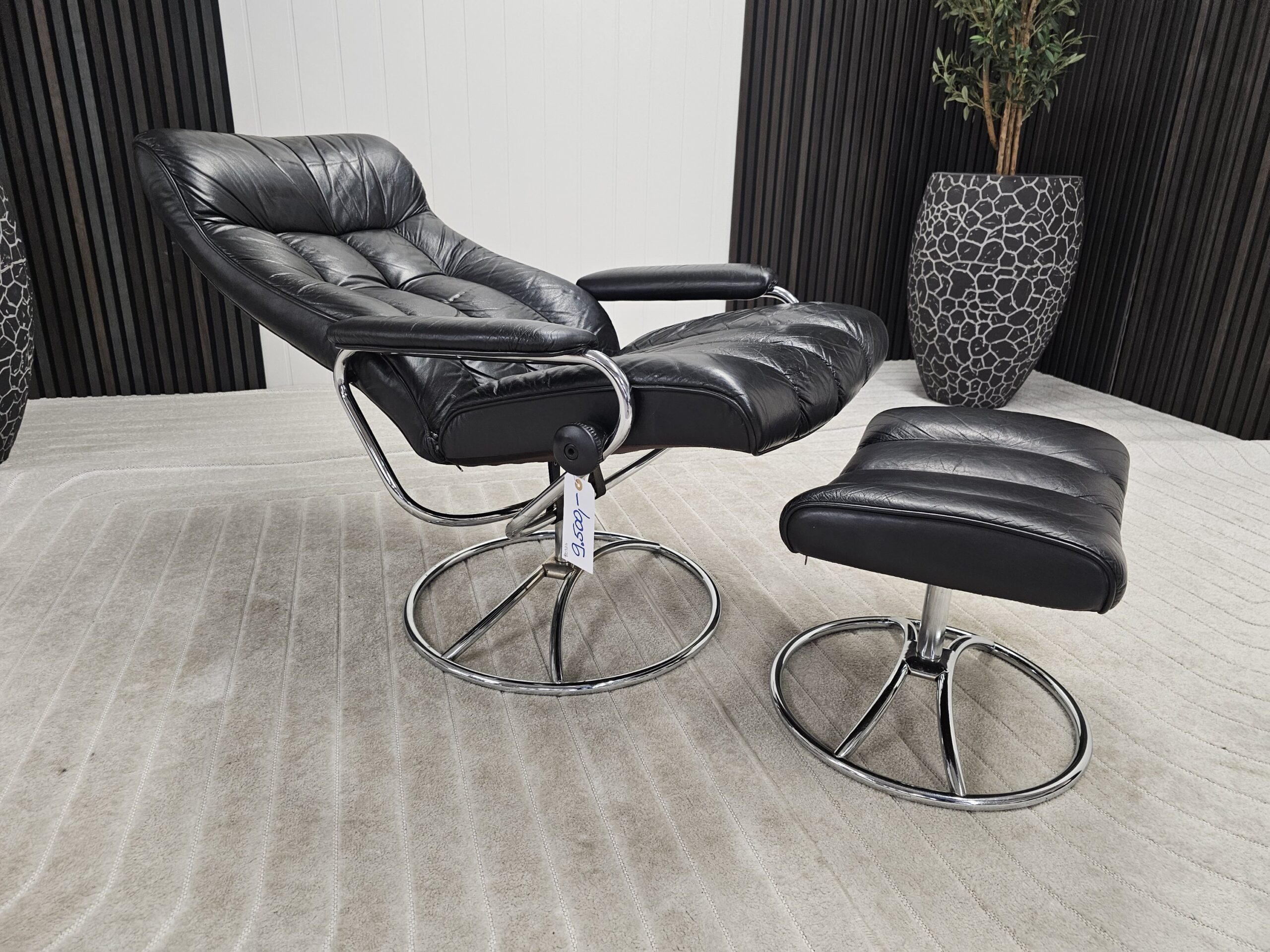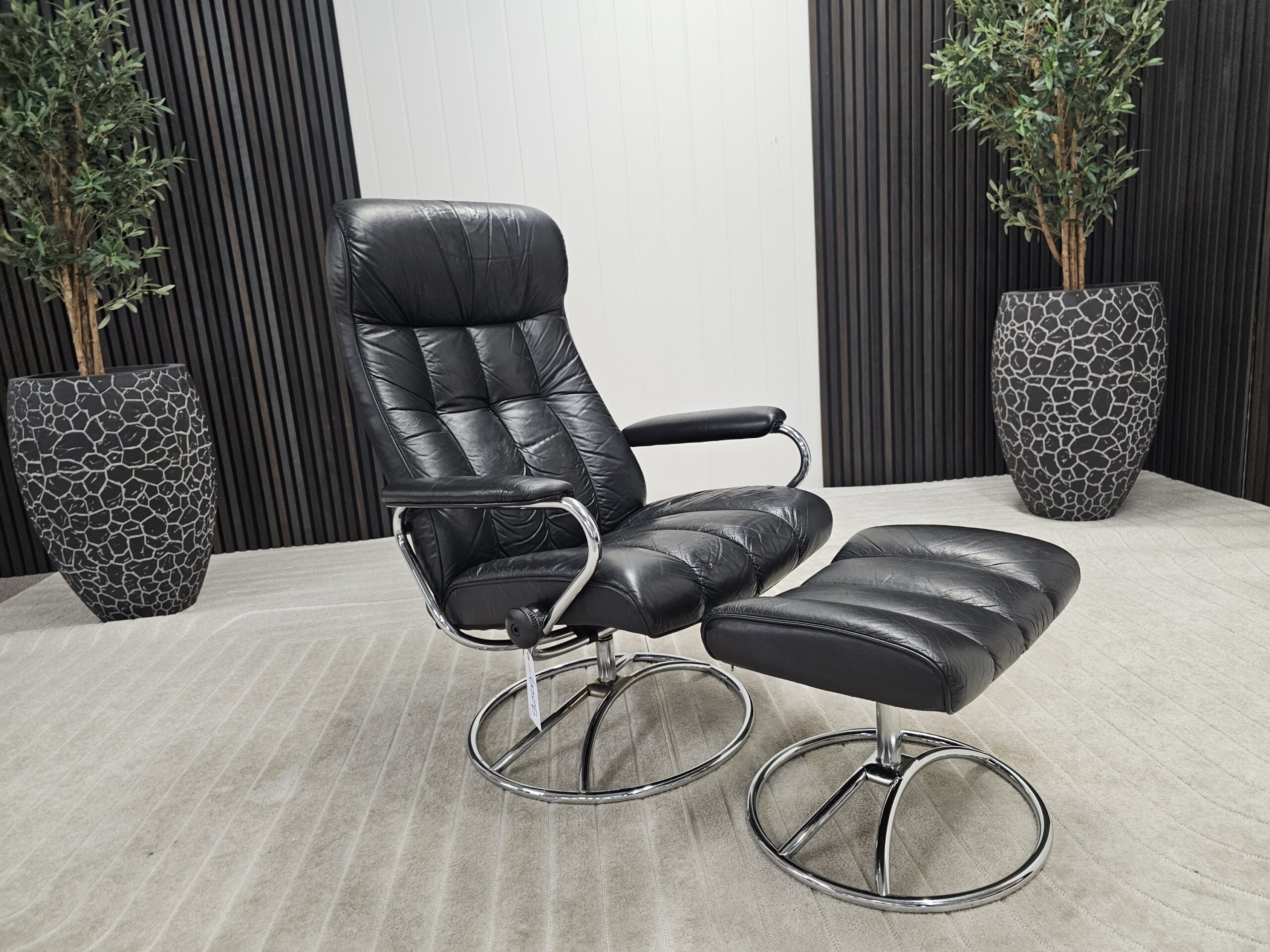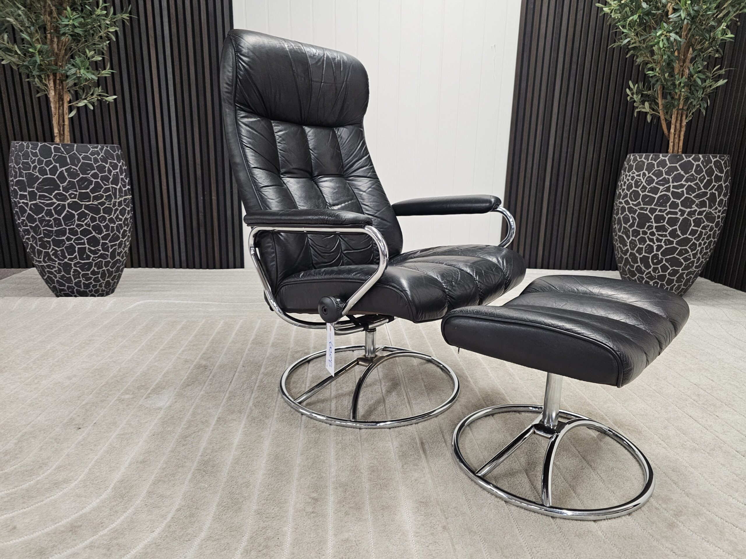 Original Ekornes Stressless Golf lenestol – ekte svart skinn, kromm understell
