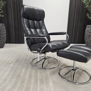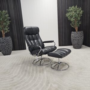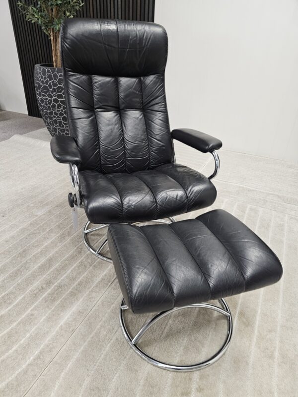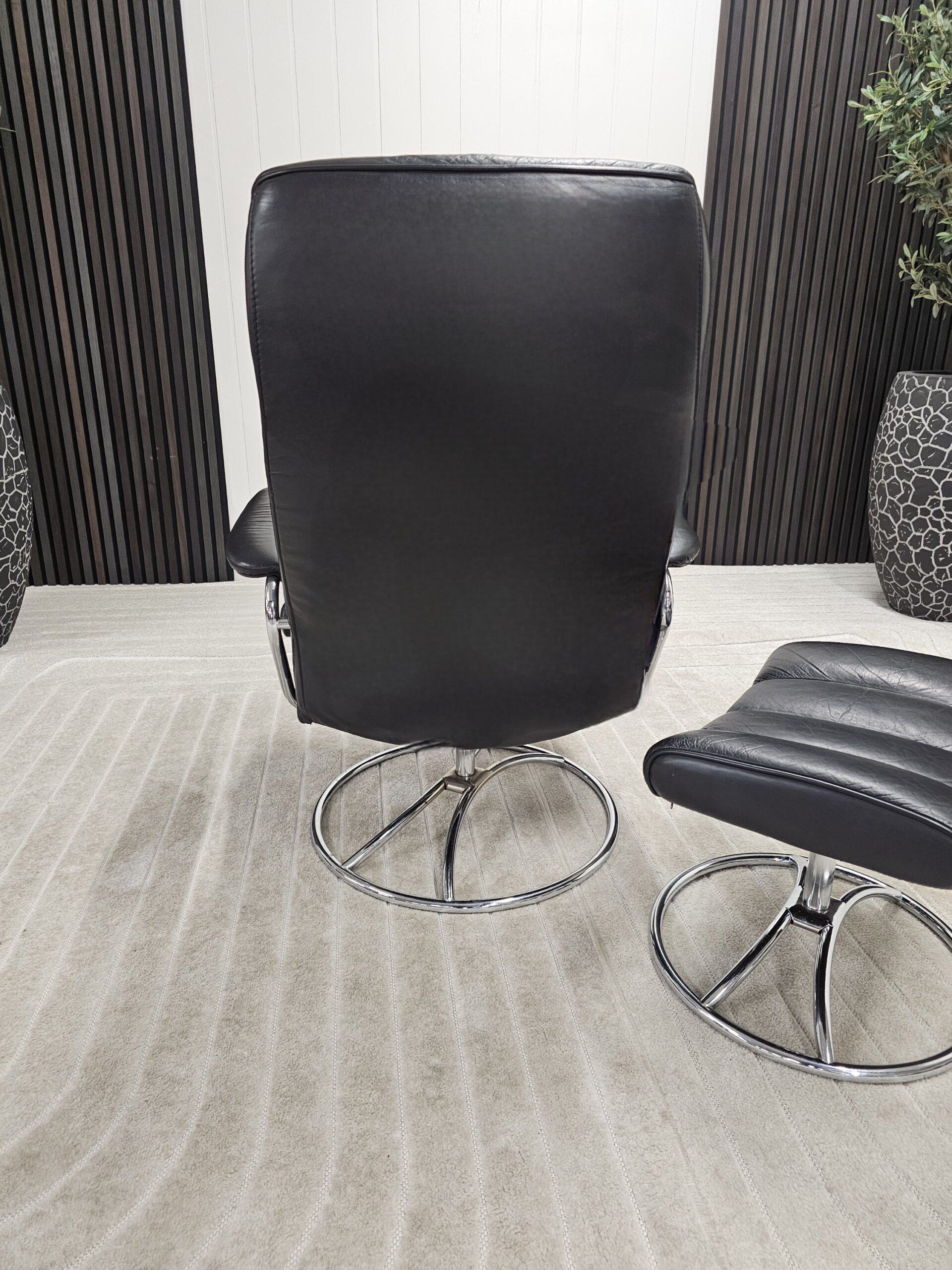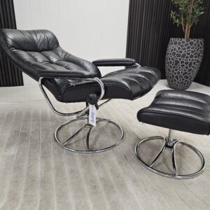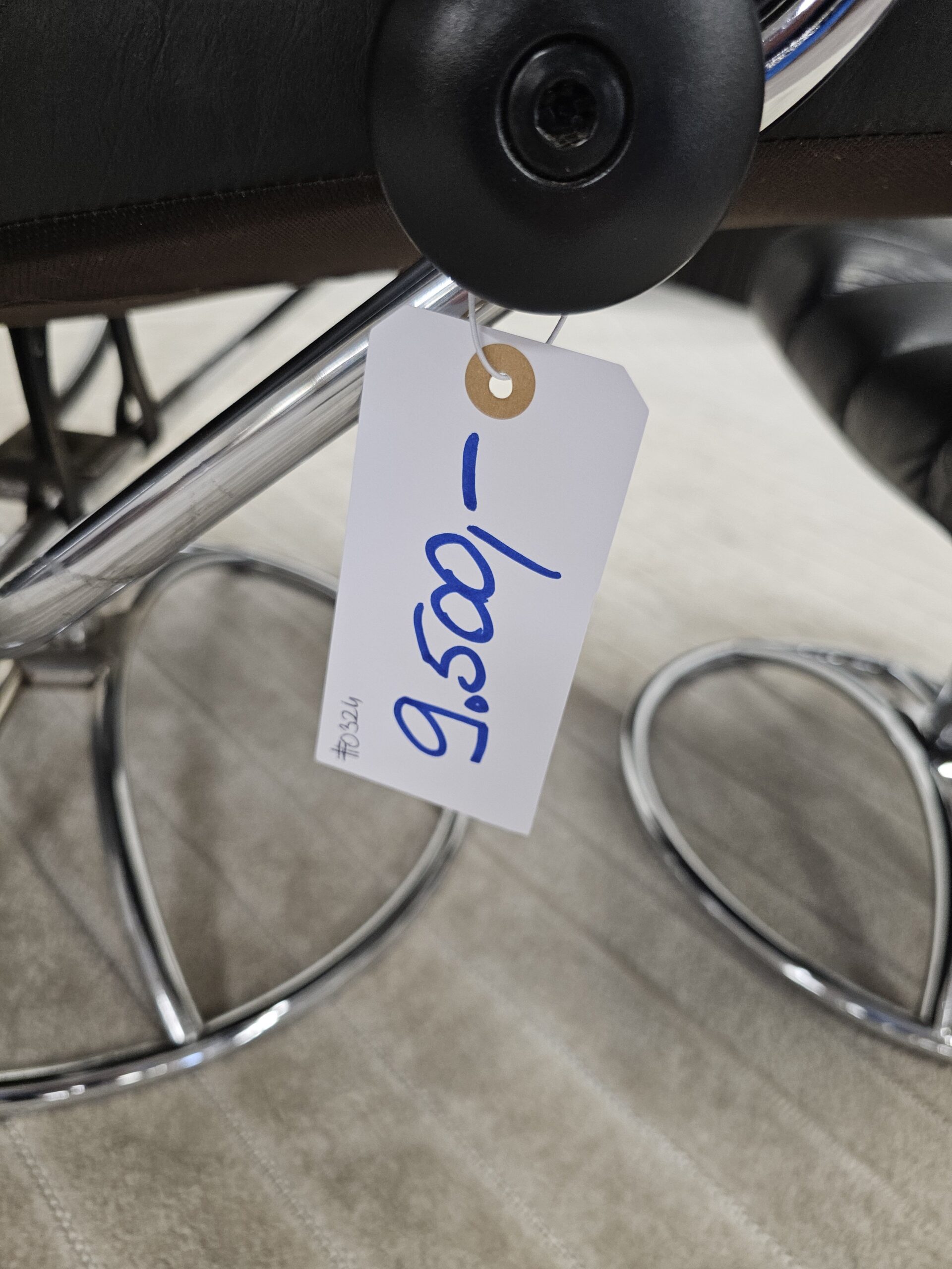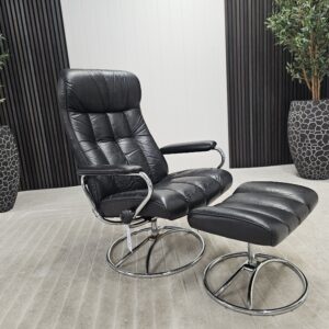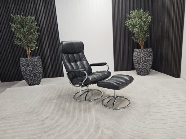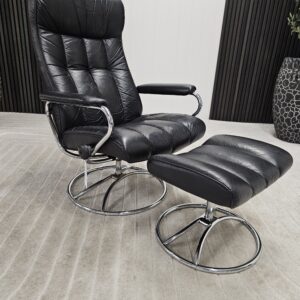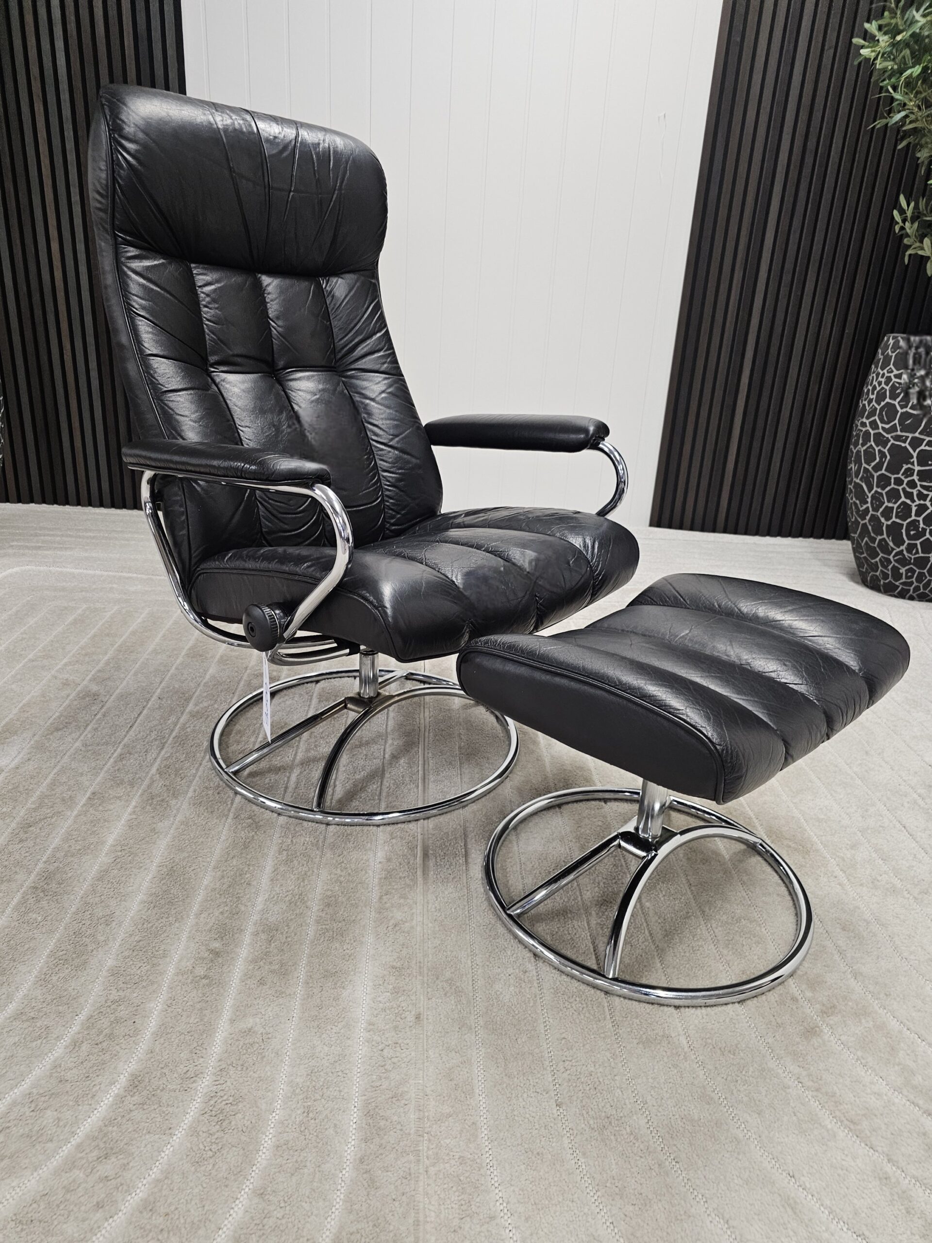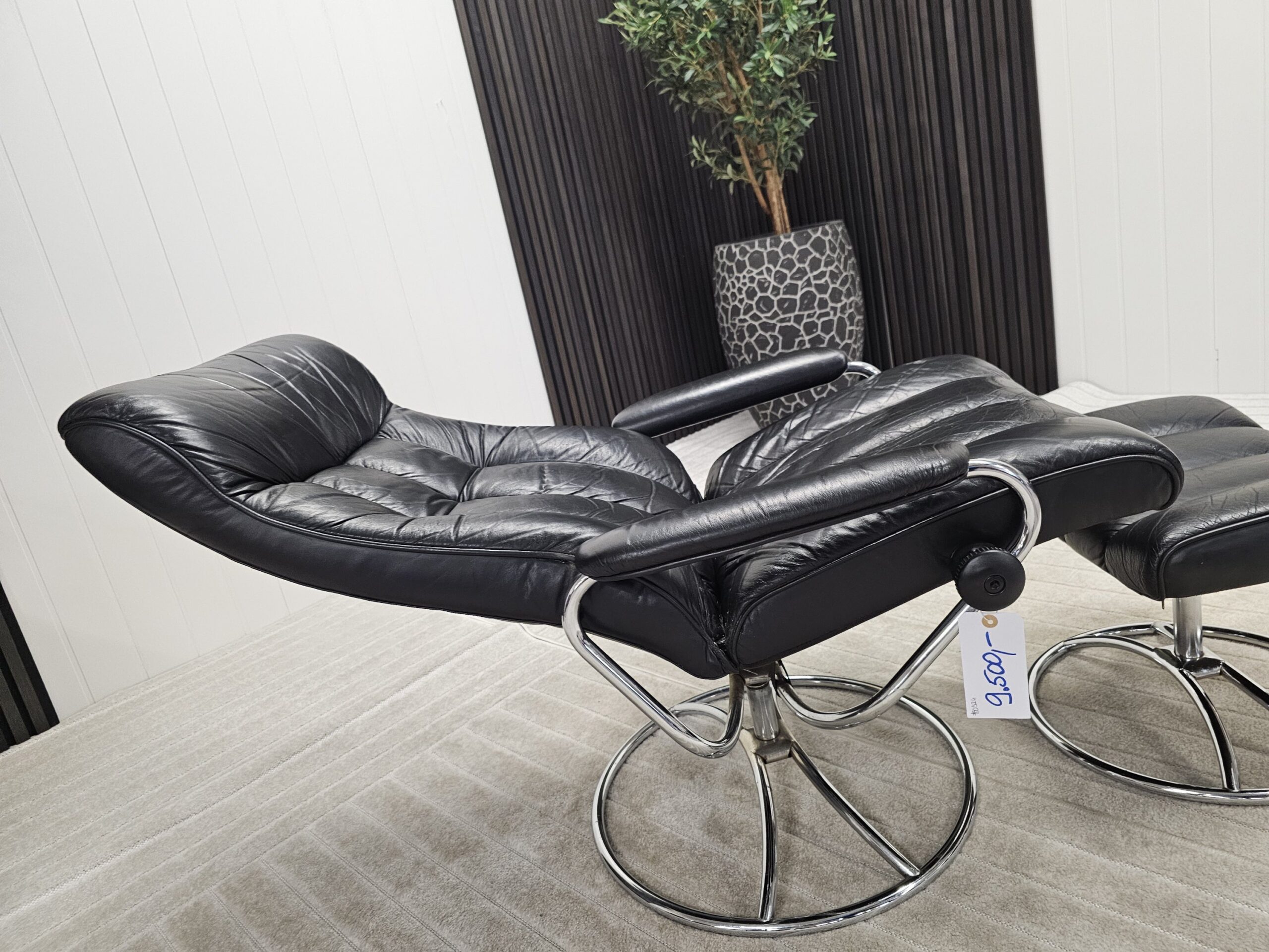 Original Ekornes Stressless Golf lenestol – ekte svart skinn, kromm understell