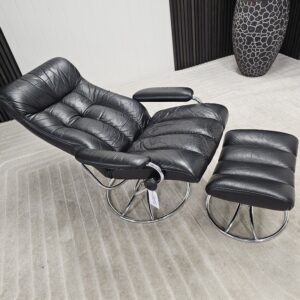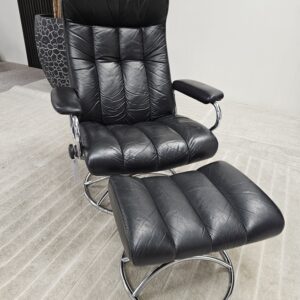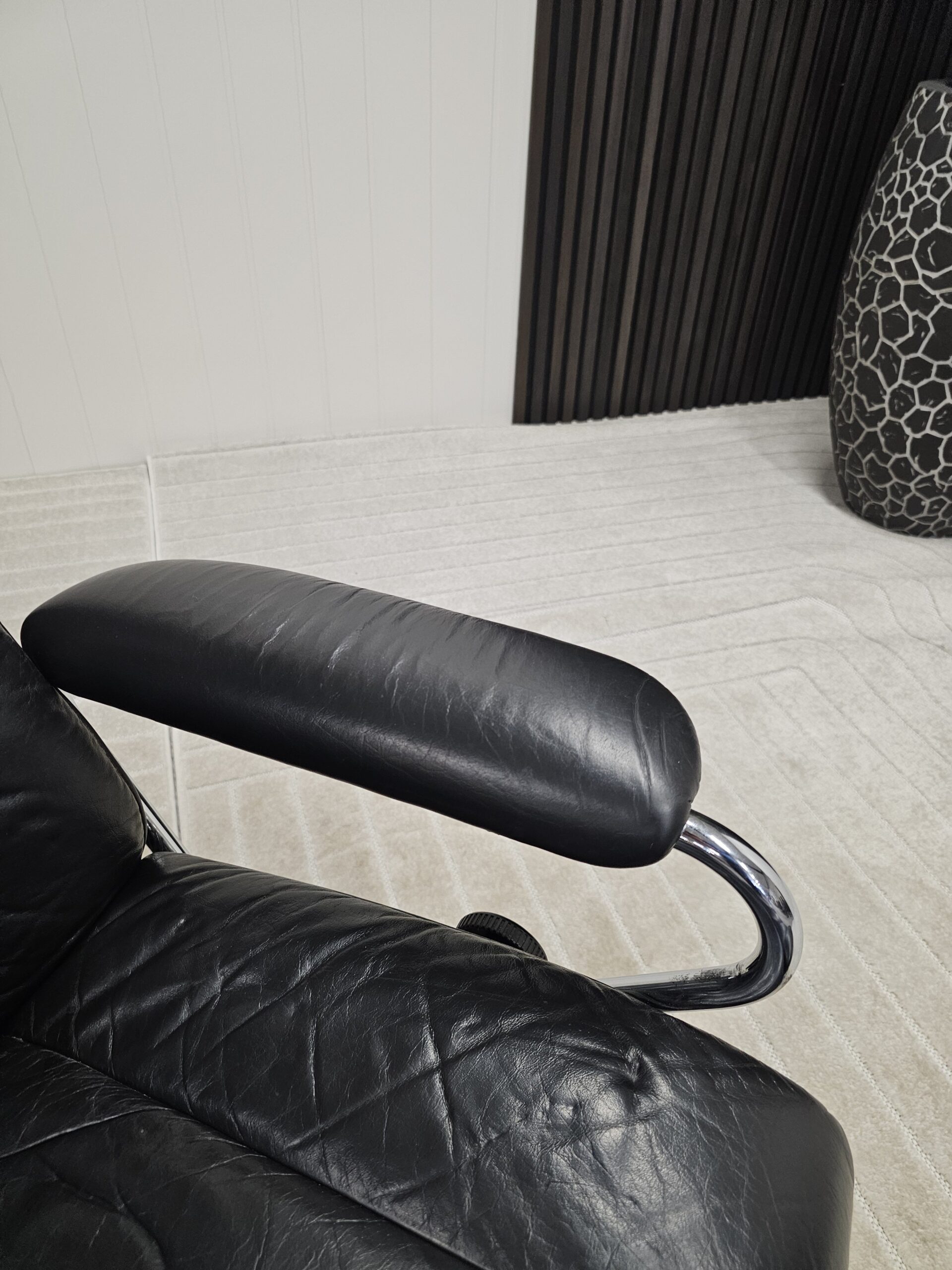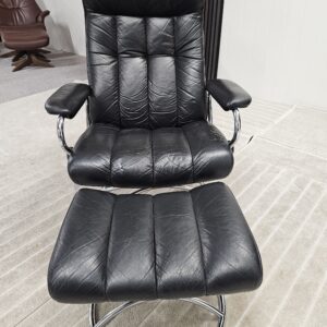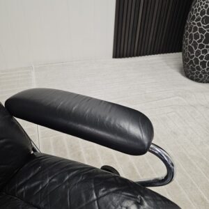 En av de største ikonene på møbelfronten gjennom tidene – solgt i millioner av eksemplarer verden over – og blitt en ekte retro klassiker. Denne stolen byr på fantastisk komfort, og er i god stand med normal patina. Skinnet har noe tegn til bruk og litt slitasje som kan sees på bildene. Mekanismen fungerer utmerket, og understellet er uten skader.