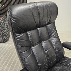Dette er ikke bare en stol – det er et samleobjekt. Stressless Golf i ekte brunt skinn med svart understell er en klassiker som blir stadig mer ettertraktet. Disse eldre originalmodellene blir sjeldnere å finne, og prisen har vist en tendens til å øke med årene.